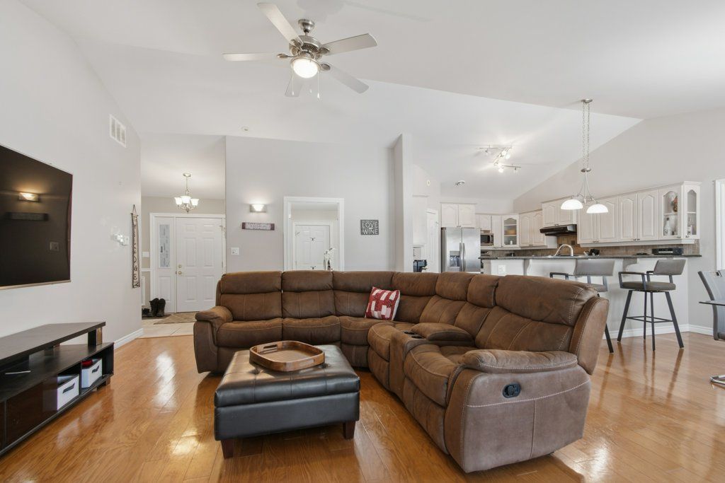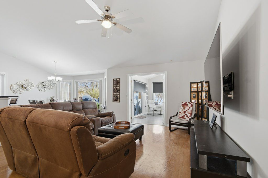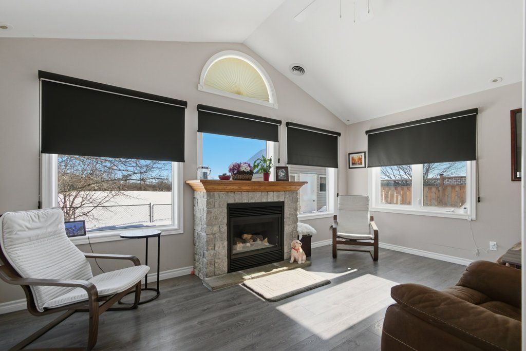 Enjoy beautiful main-floor living in this well appointed 2 bedroom, 2 bath home featuring open concept kitchen, huge breakfast bar, dining area and spacious living room. The bright four season sunroom with fireplace offers the perfect space to relax or entertain year round. The primary bedroom includes a private 4 piece ensuite and main floor laundry adds to everyday convenience. Step outside to a fenced backyard, ideal for quite mornings or hosting guests.