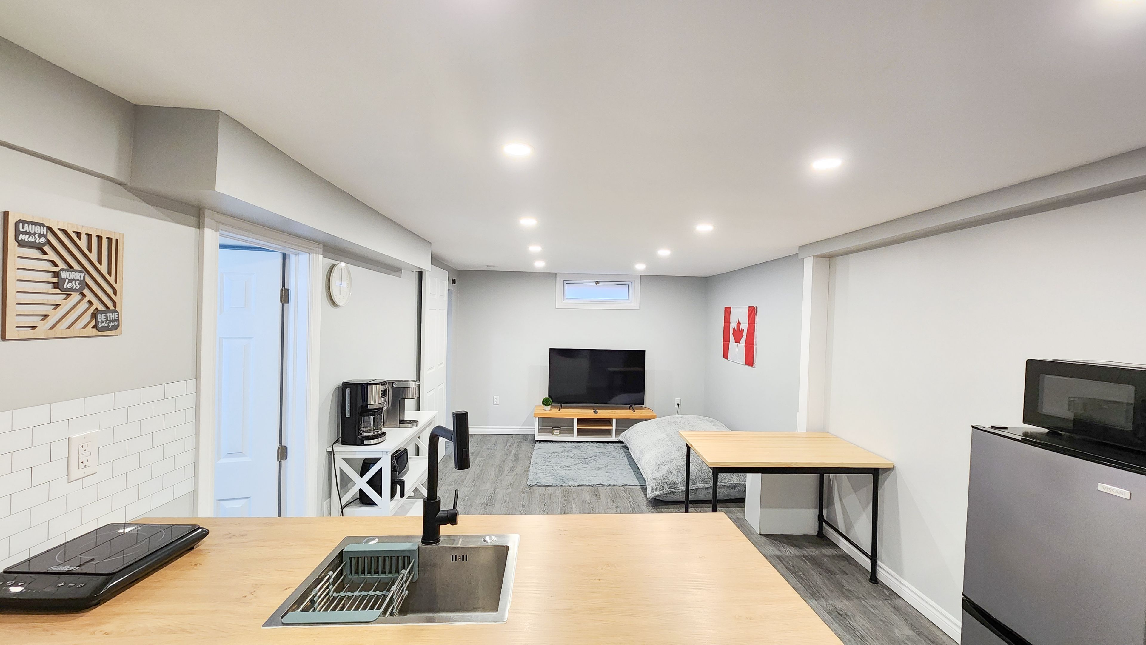 • Bright open-concept main floor with a modern kitchen and quartz countertops.