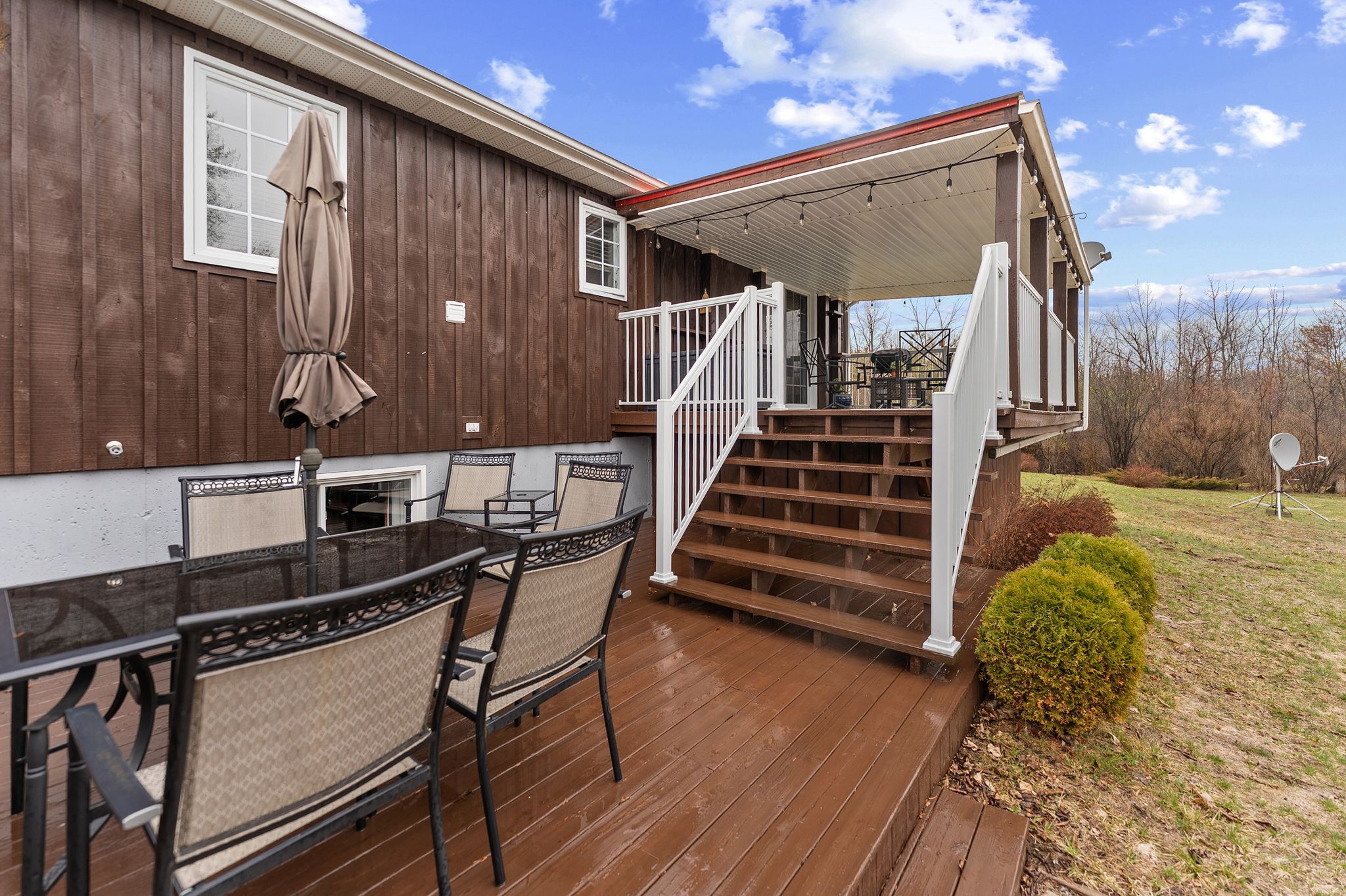 • Expansive tiered deck and cozy fire pit area for outdoor enjoyment.