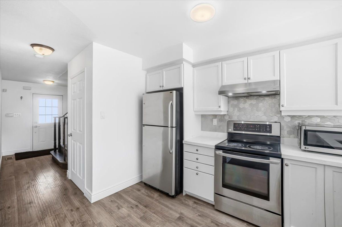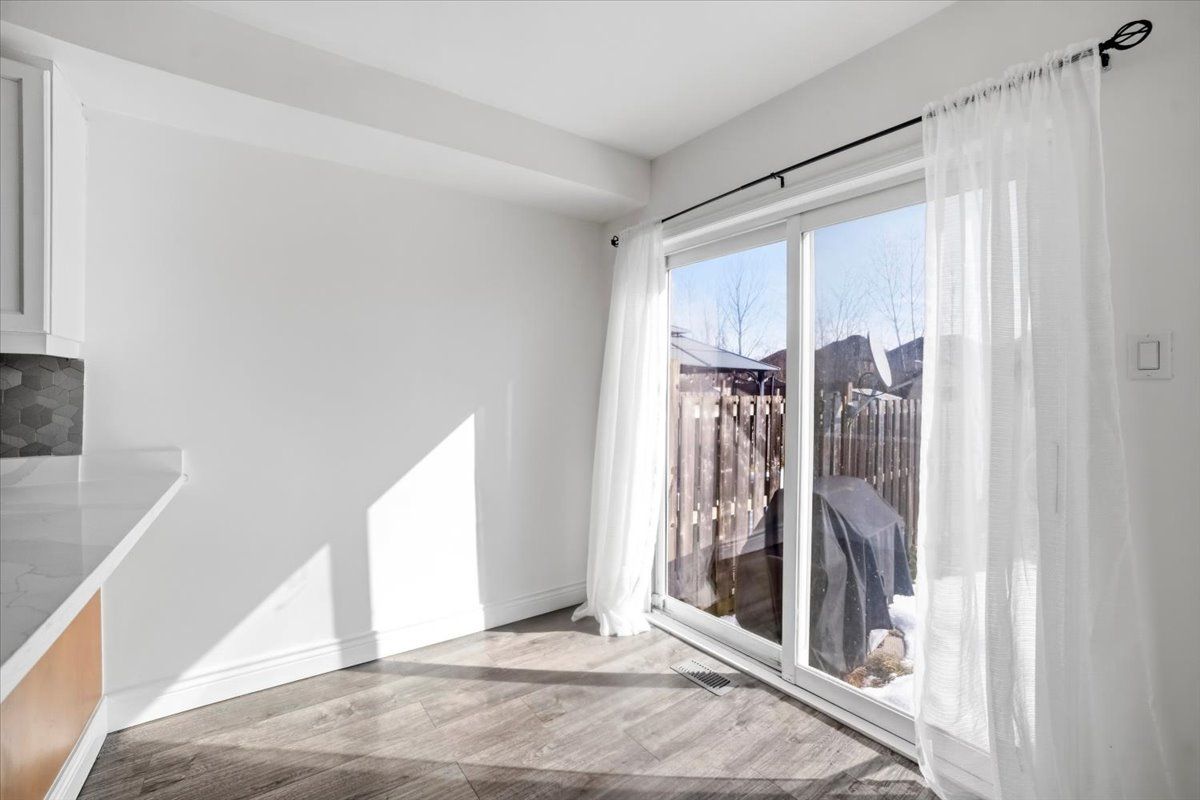Don't miss this beautiful freehold townhome, backing onto peaceful greenspace! Featuring 3 spacious bedrooms and 4 bathrooms, this home offers the perfect blend of comfort and functionality. The renovated basement showcases pot lights, a generous rec room, and an additional 3-piece bathroom - ideal for entertaining, a home office, or extended family living. Enjoy trendy laminate flooring throughout and a stylish eat-in kitchen complete with stainless steel appliances and a walkout to a deep backyard with no rear neighbors. The second floor offers the convenience of an upgraded washer and dryer in the laundry room, along with three well-sized bedrooms, including a primary suite with a private 4-piece ensuite. Inside garage access and an extra-long driveway provide added practicality and parking space.