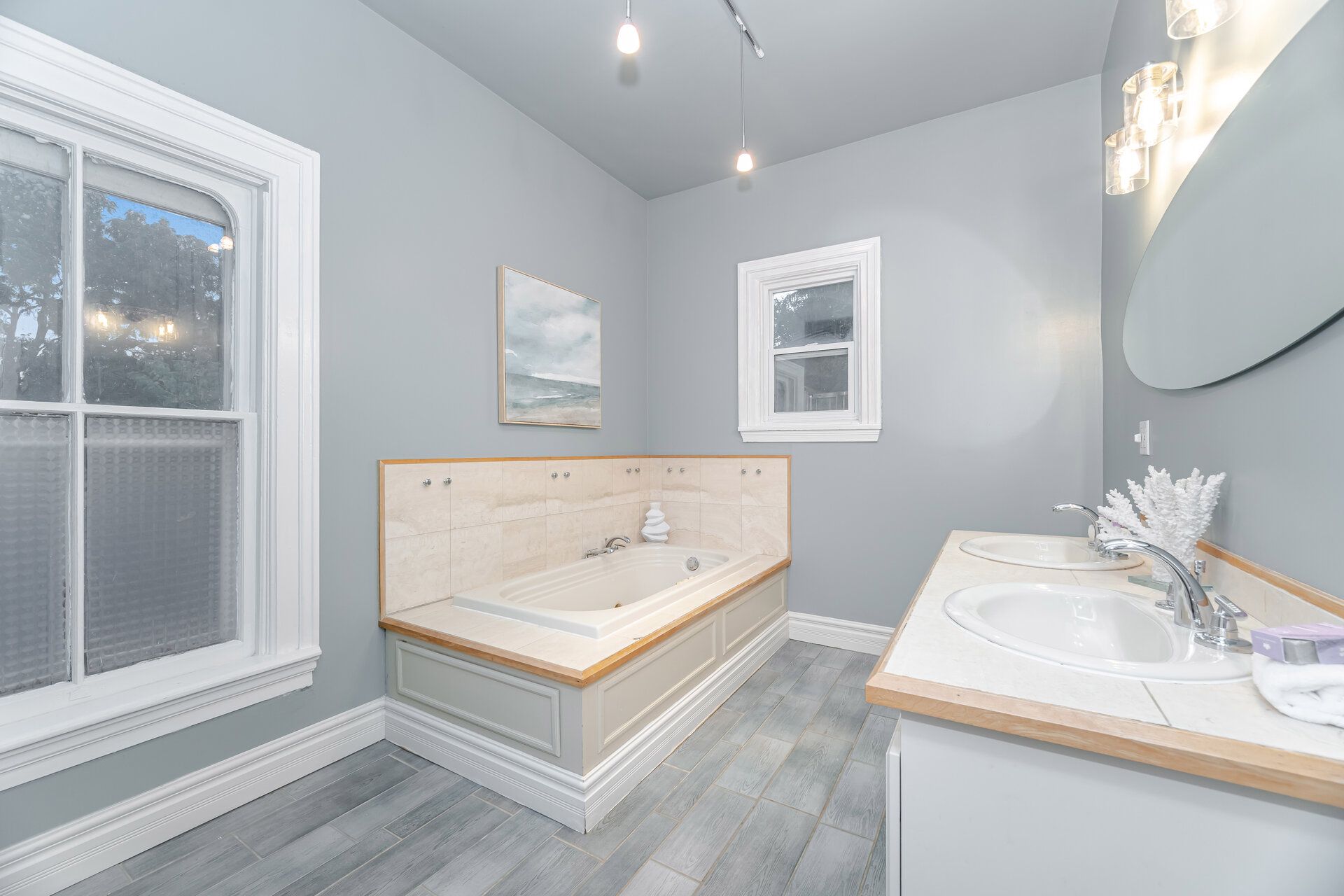 • Private backyard with a large deck for gatherings.