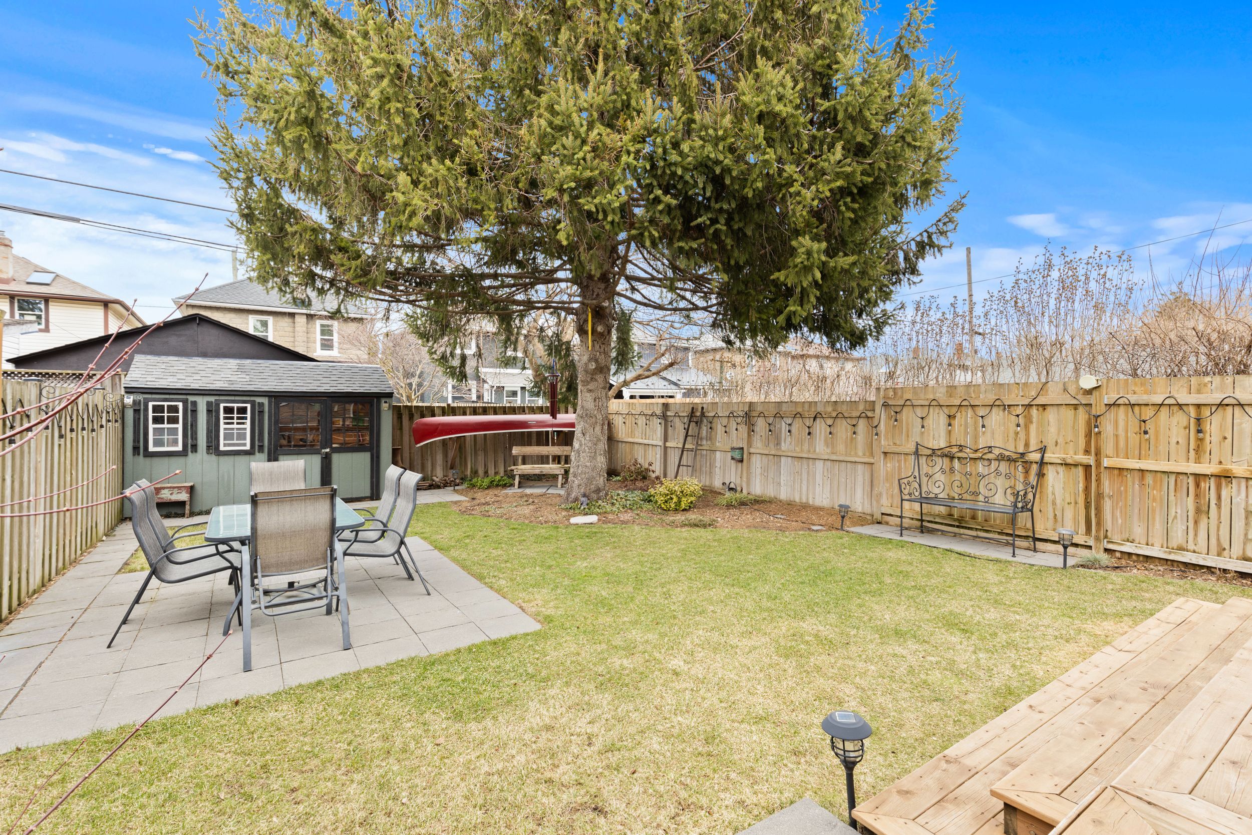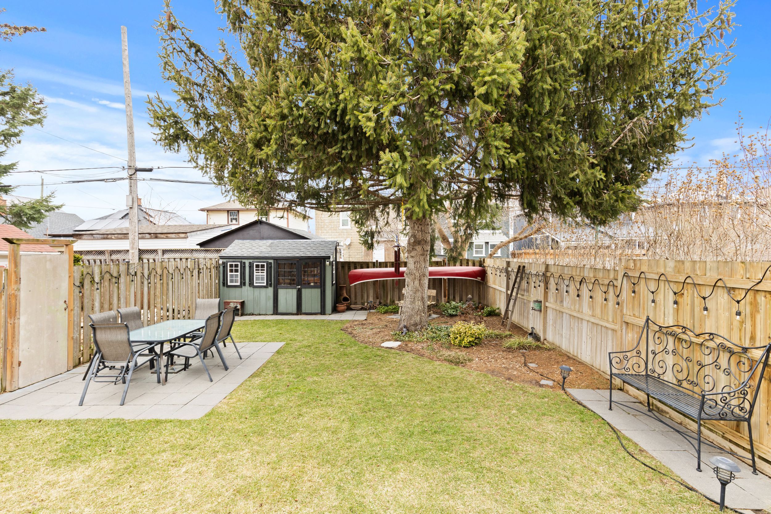 • Private backyard with a hot tub, shed, and space for entertaining.