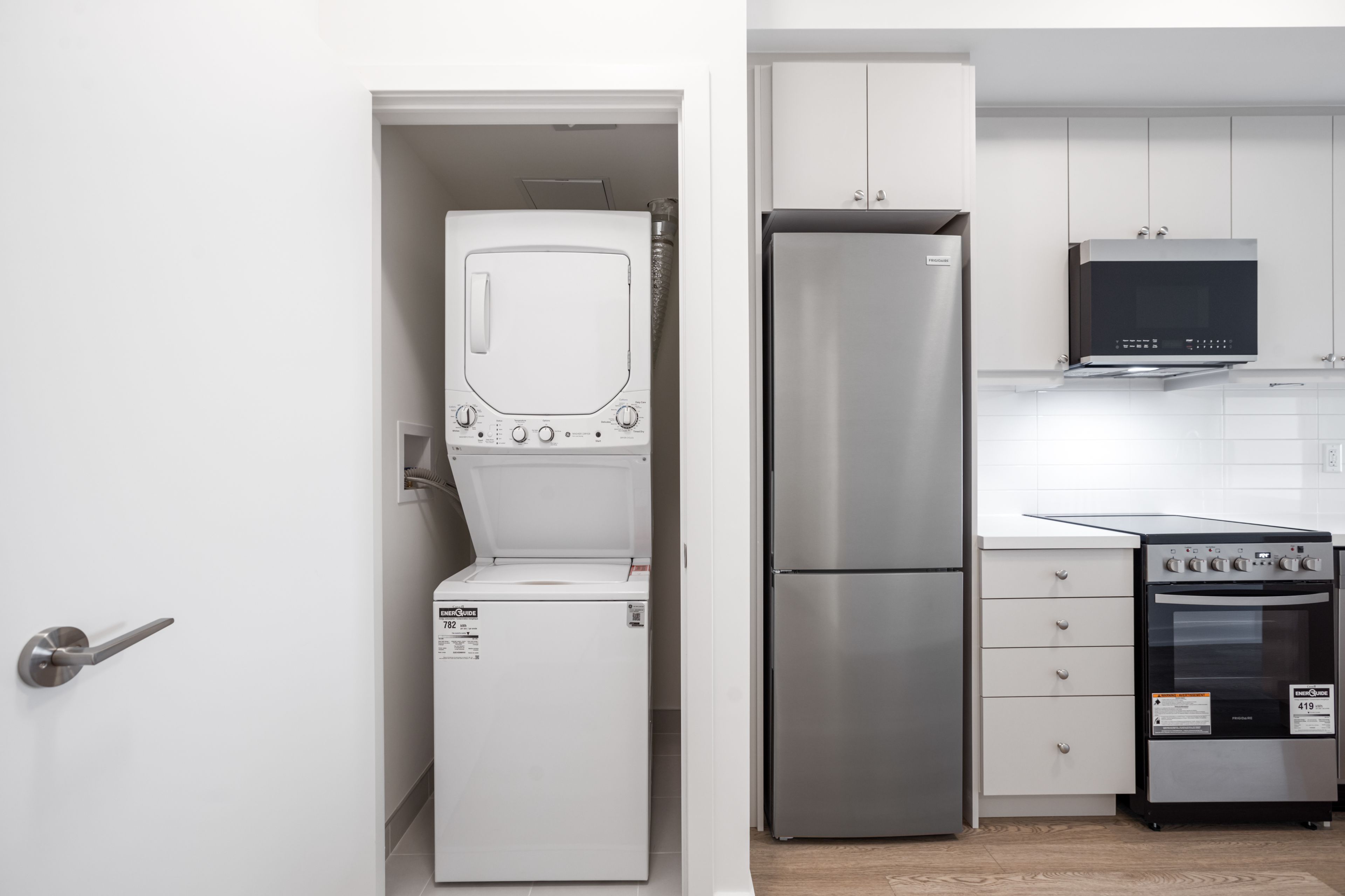 • Modern 1 Bedroom + Den suite with two full bathrooms for extra comfort.