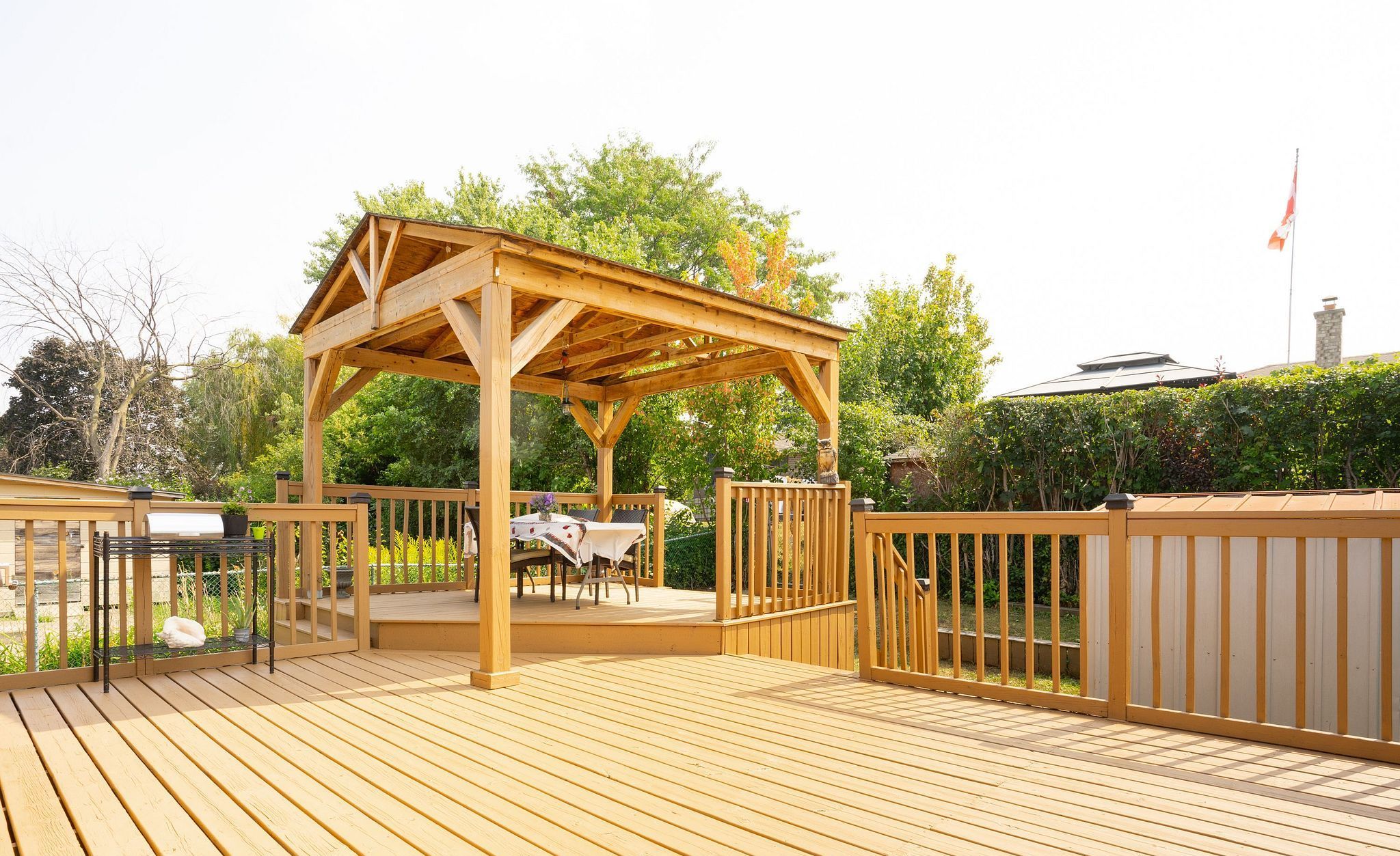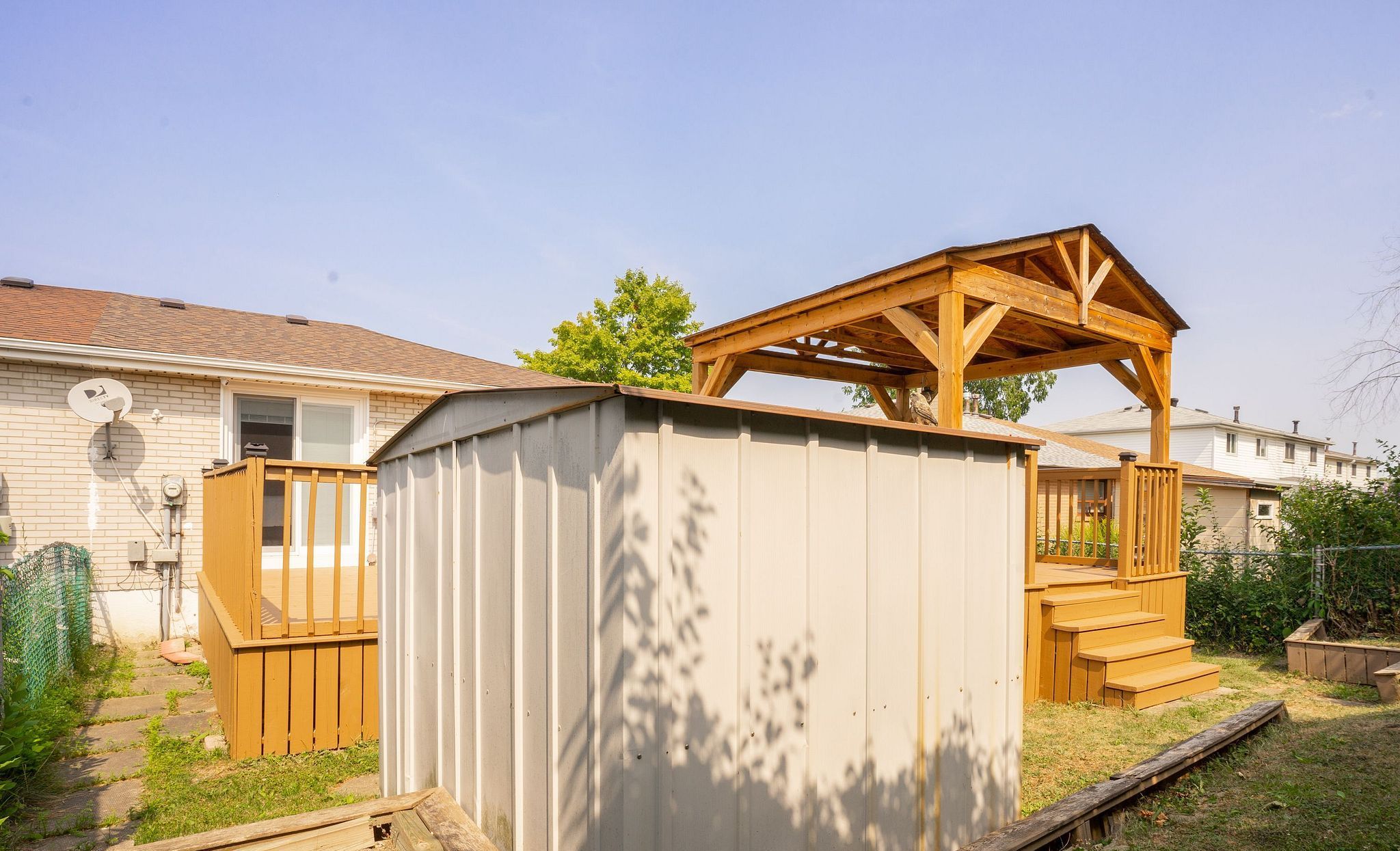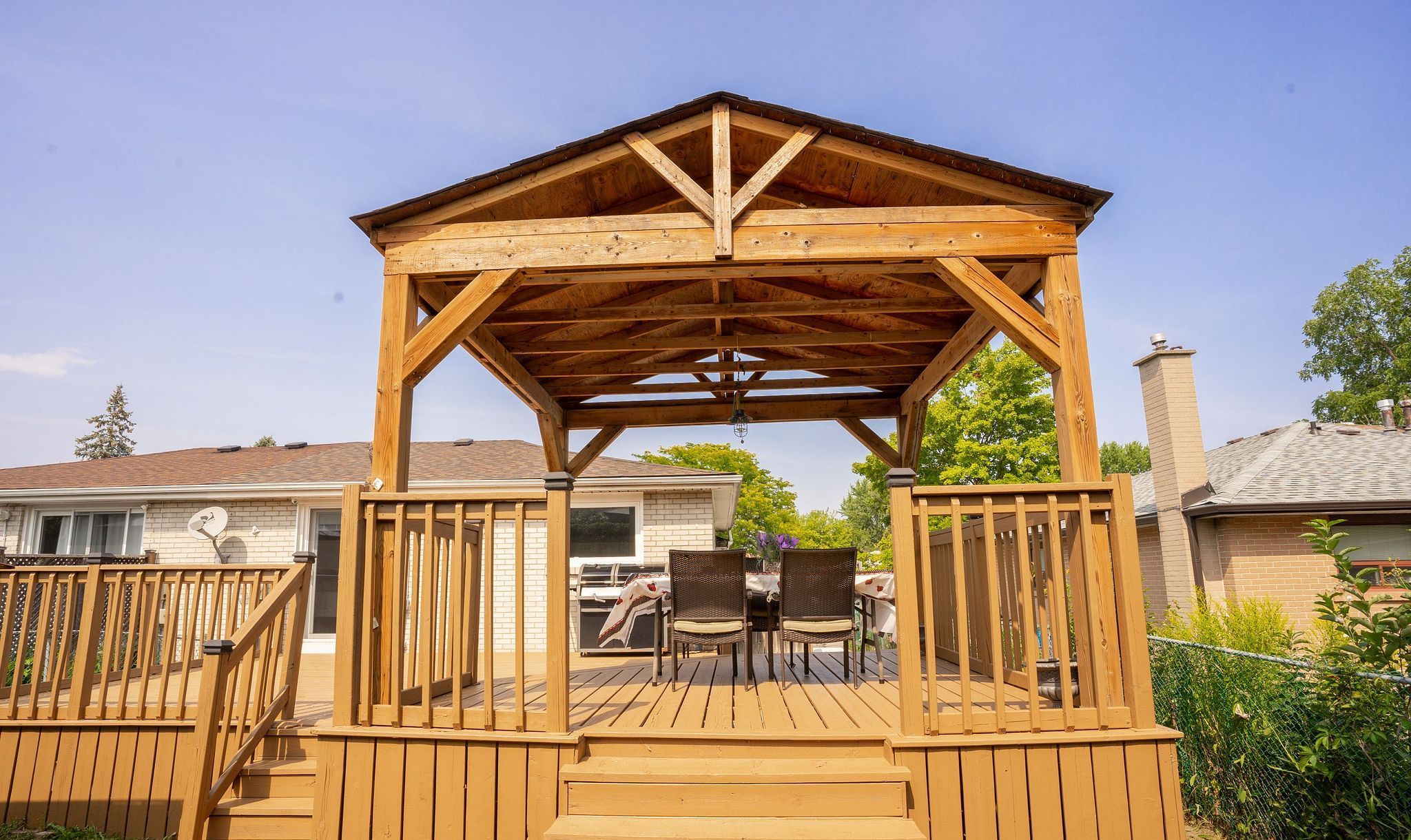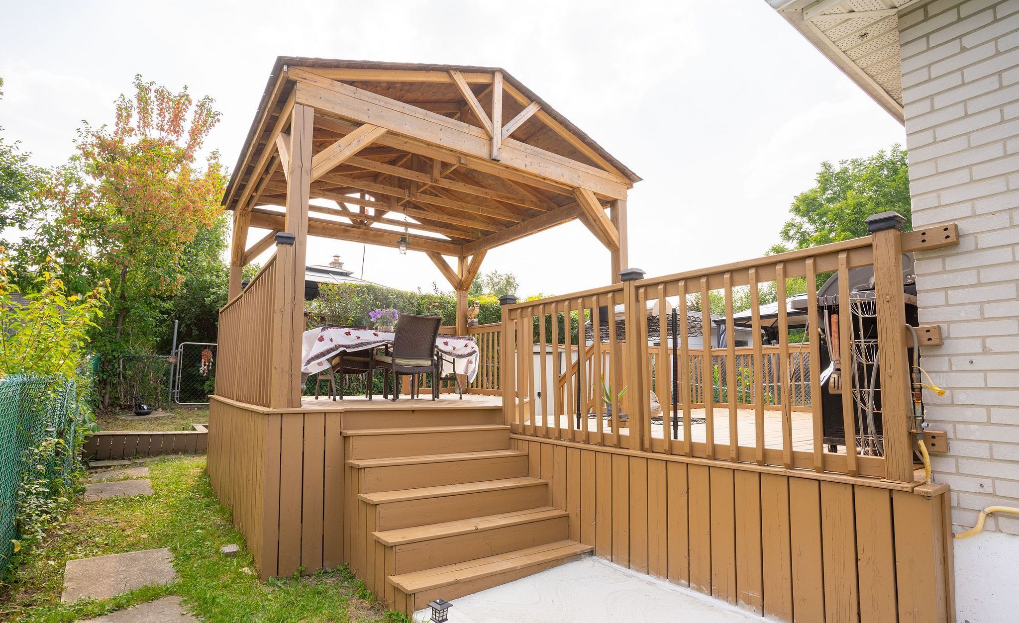 • Spacious backyard features a two-tier deck and gazebo for entertaining.