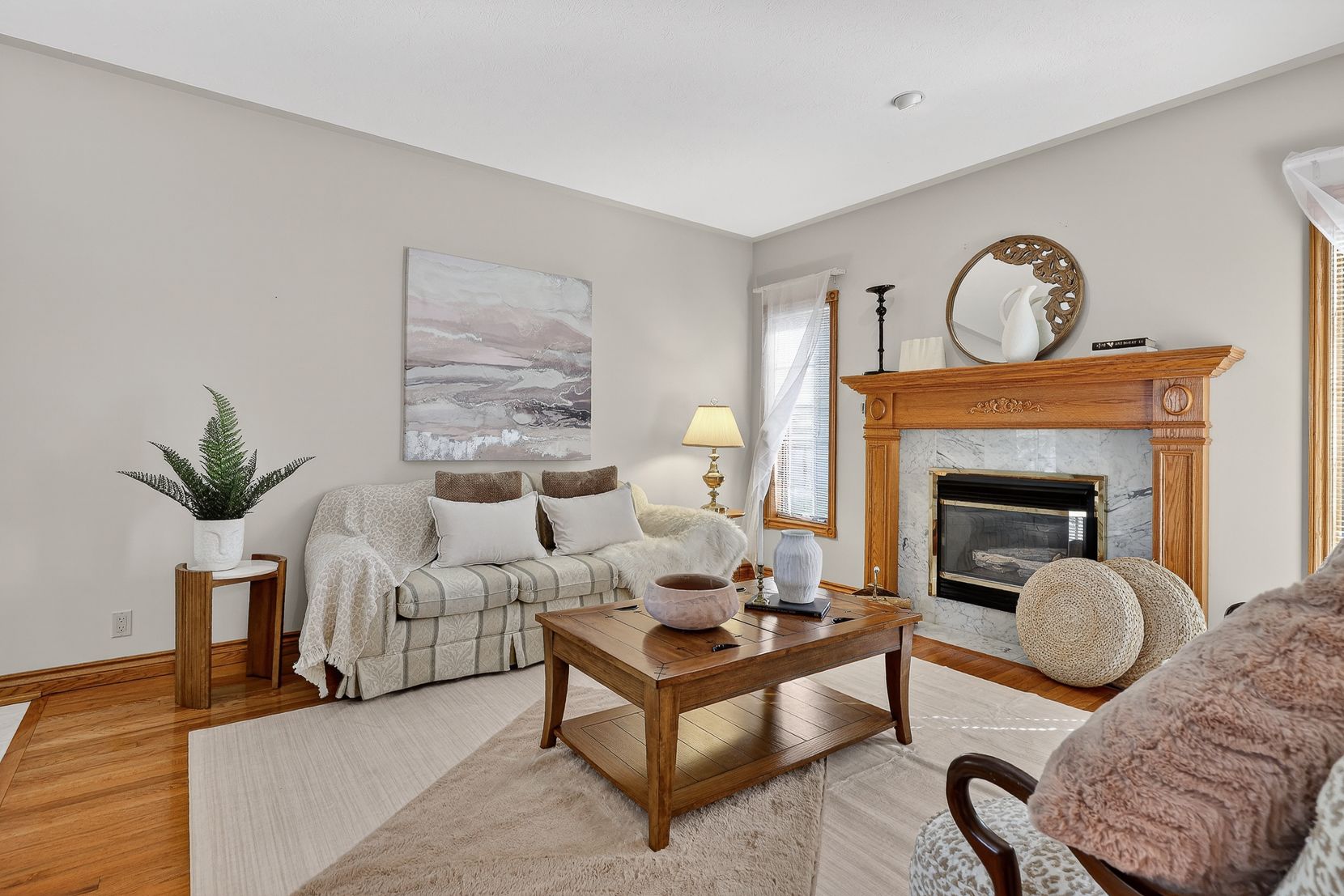 • Relaxed family room featuring a cozy gas fireplace, ideal for gatherings.