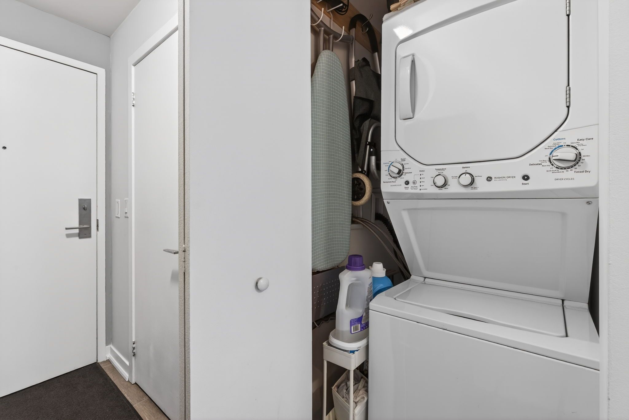 • 1 bed, 2 bath layout with lake views from the balcony.