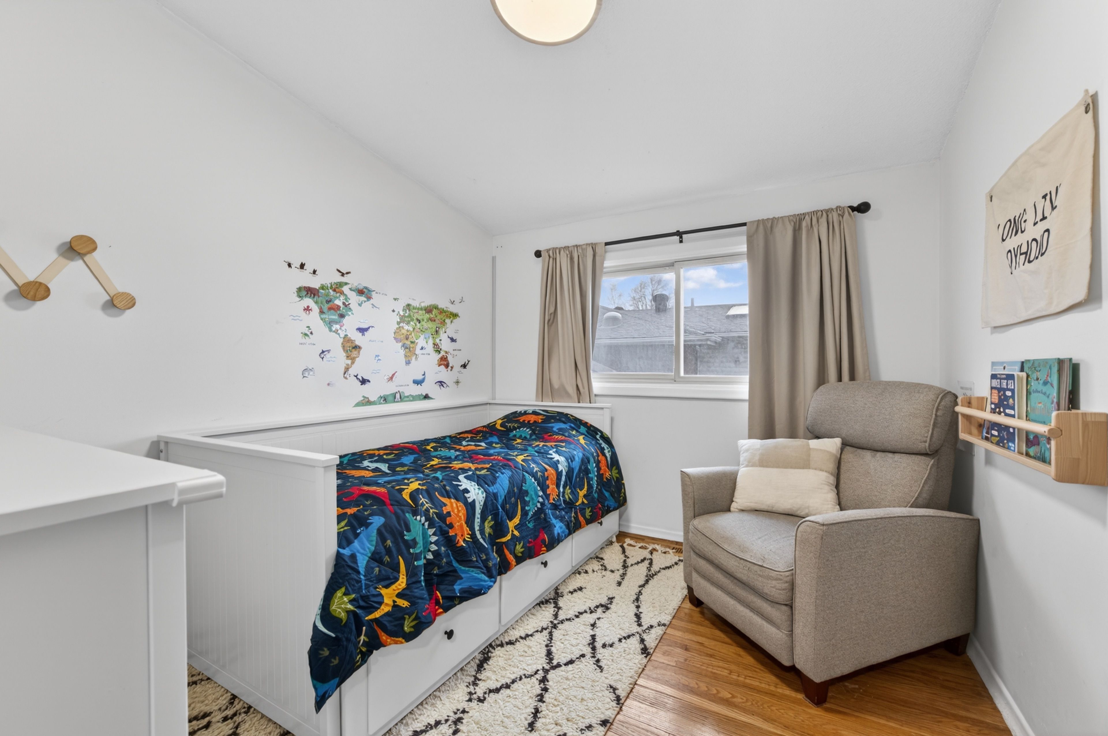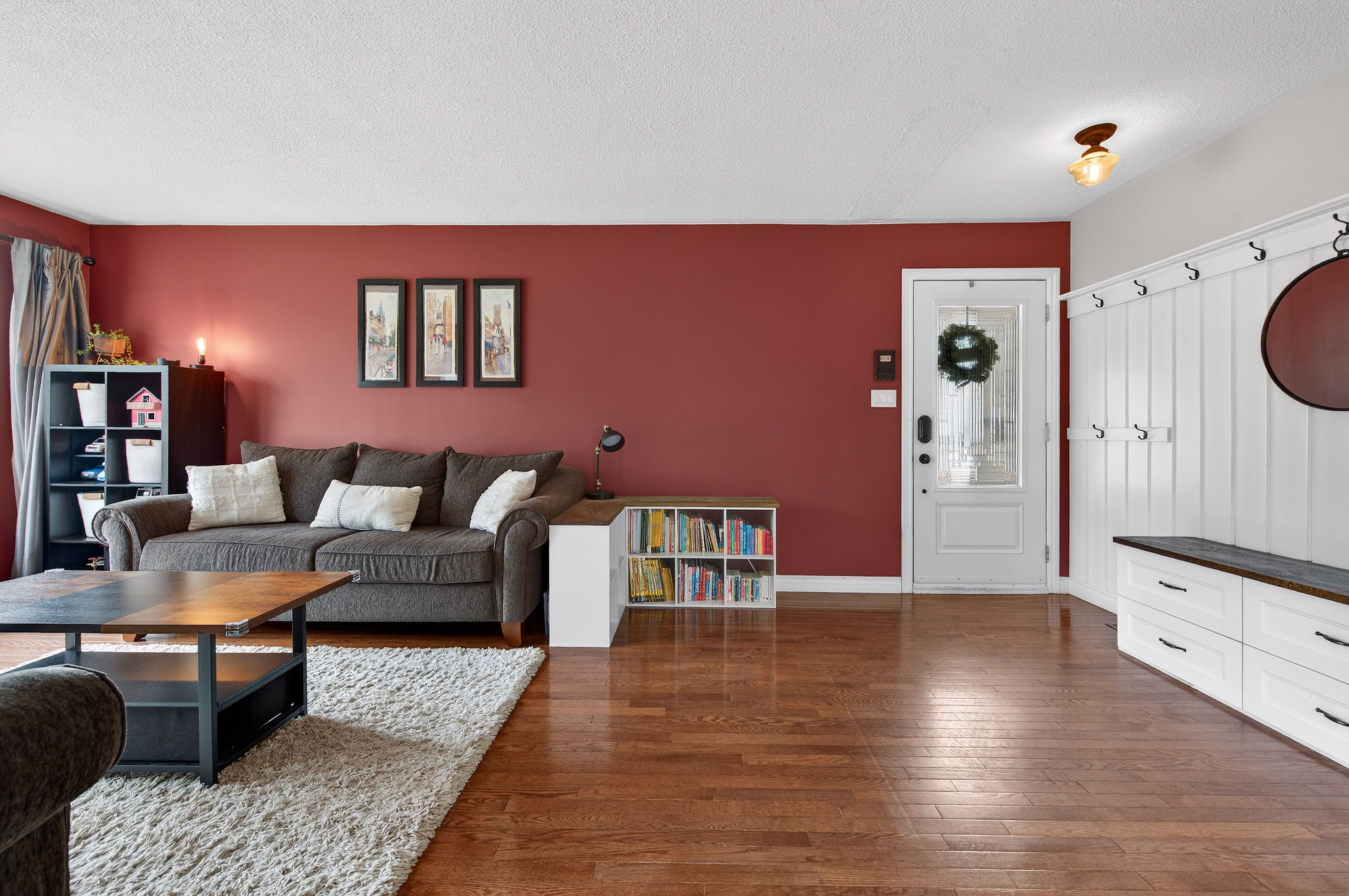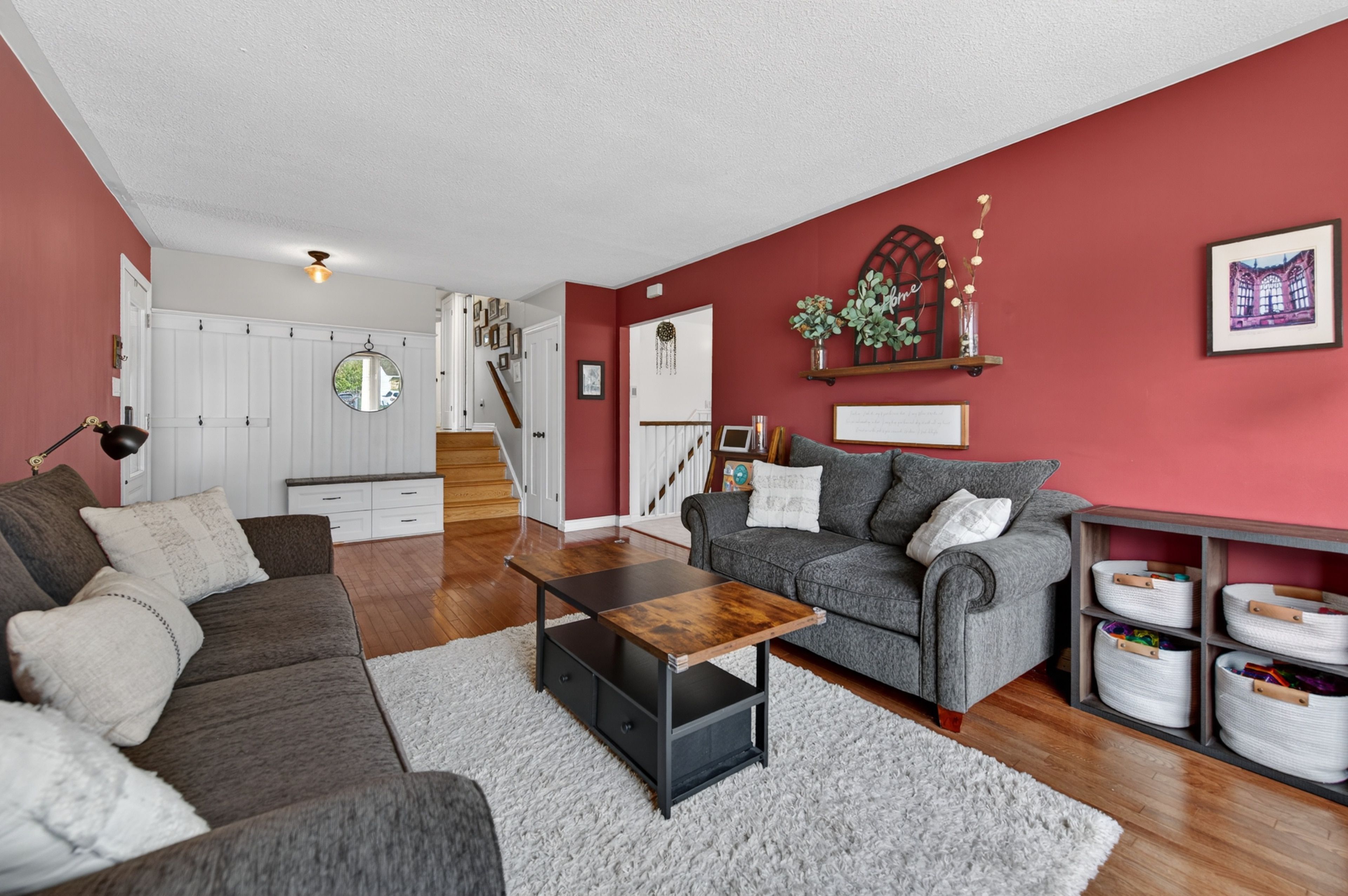 • Bright living room features hardwood floors and a bay window.