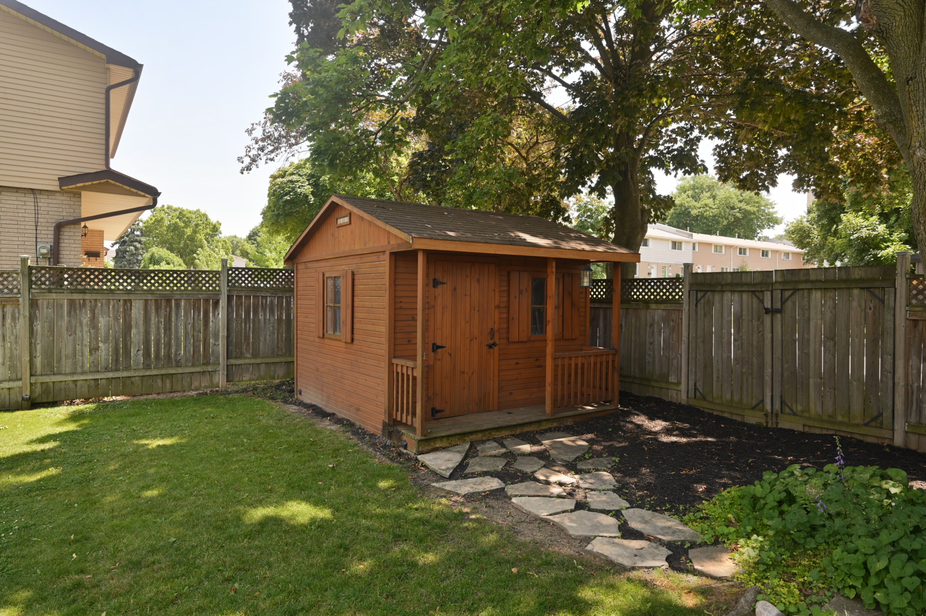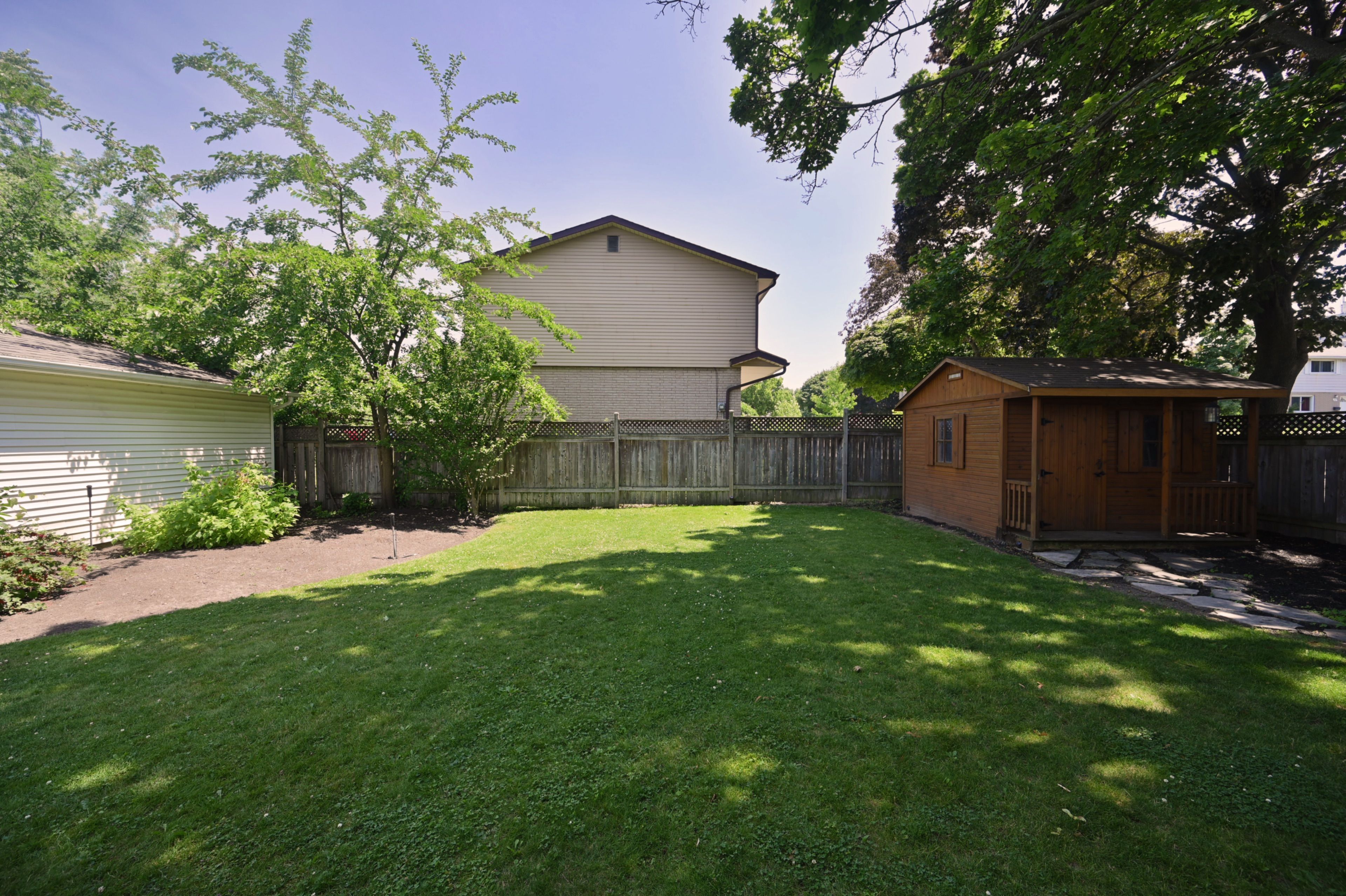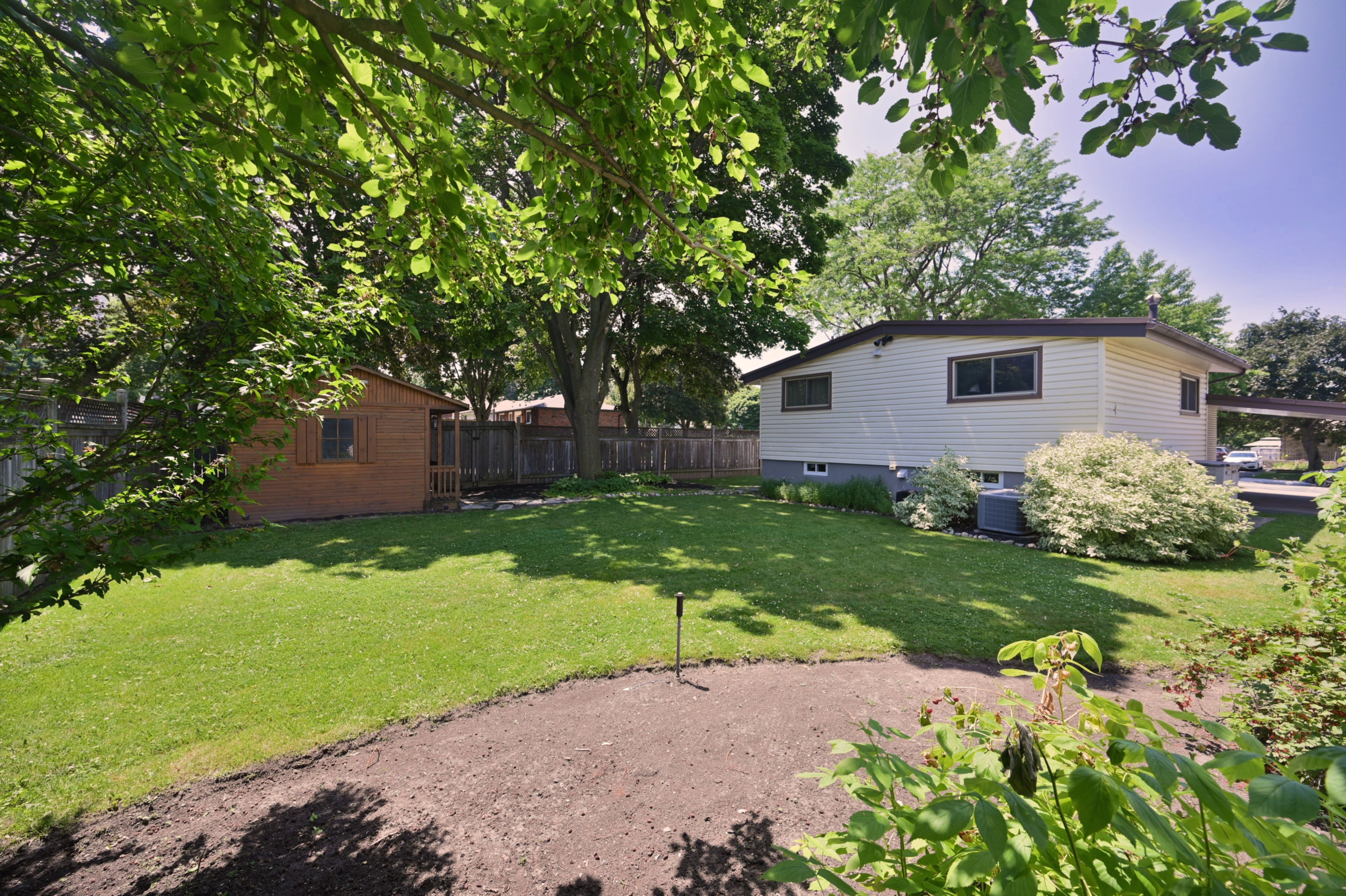 • Large yard with mature trees, gardens, and a useful shed.