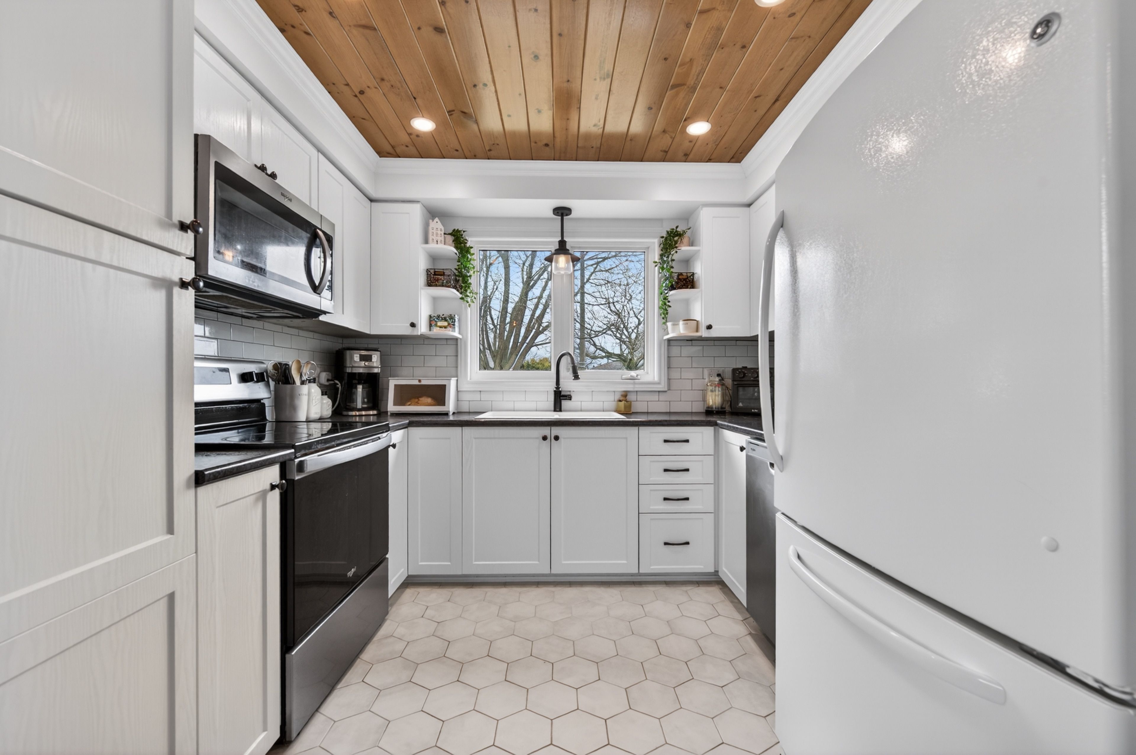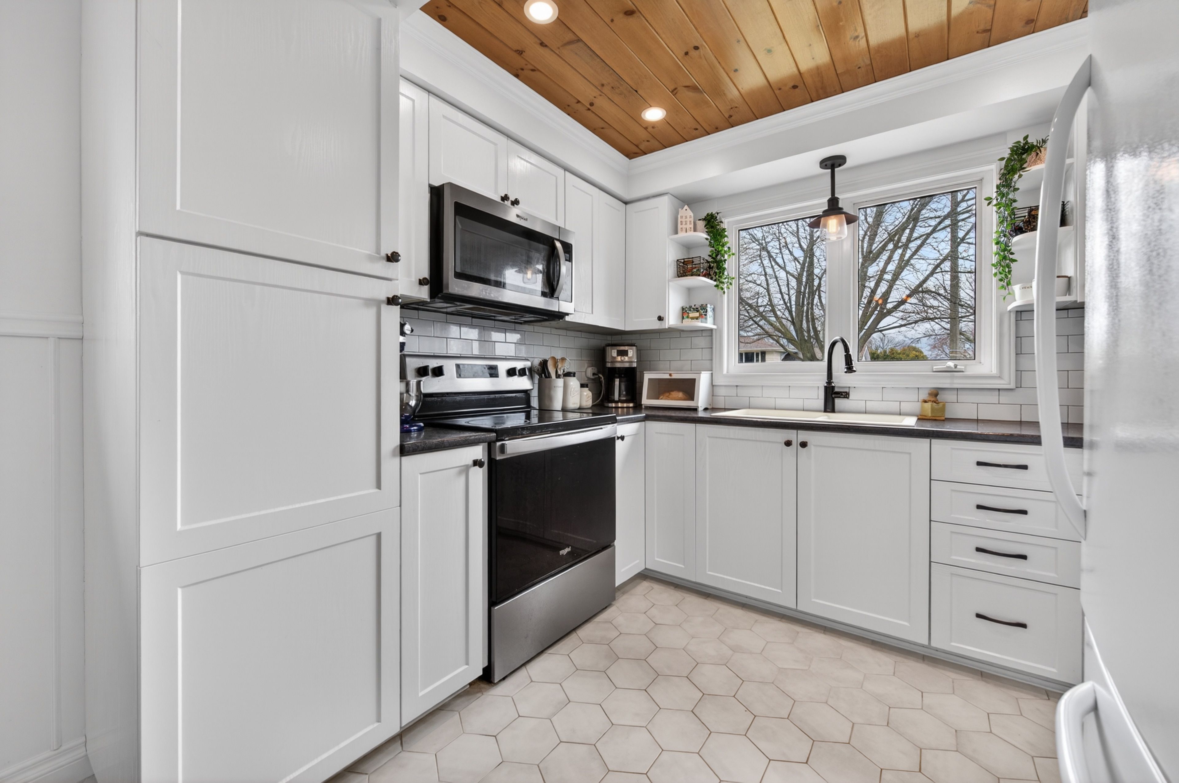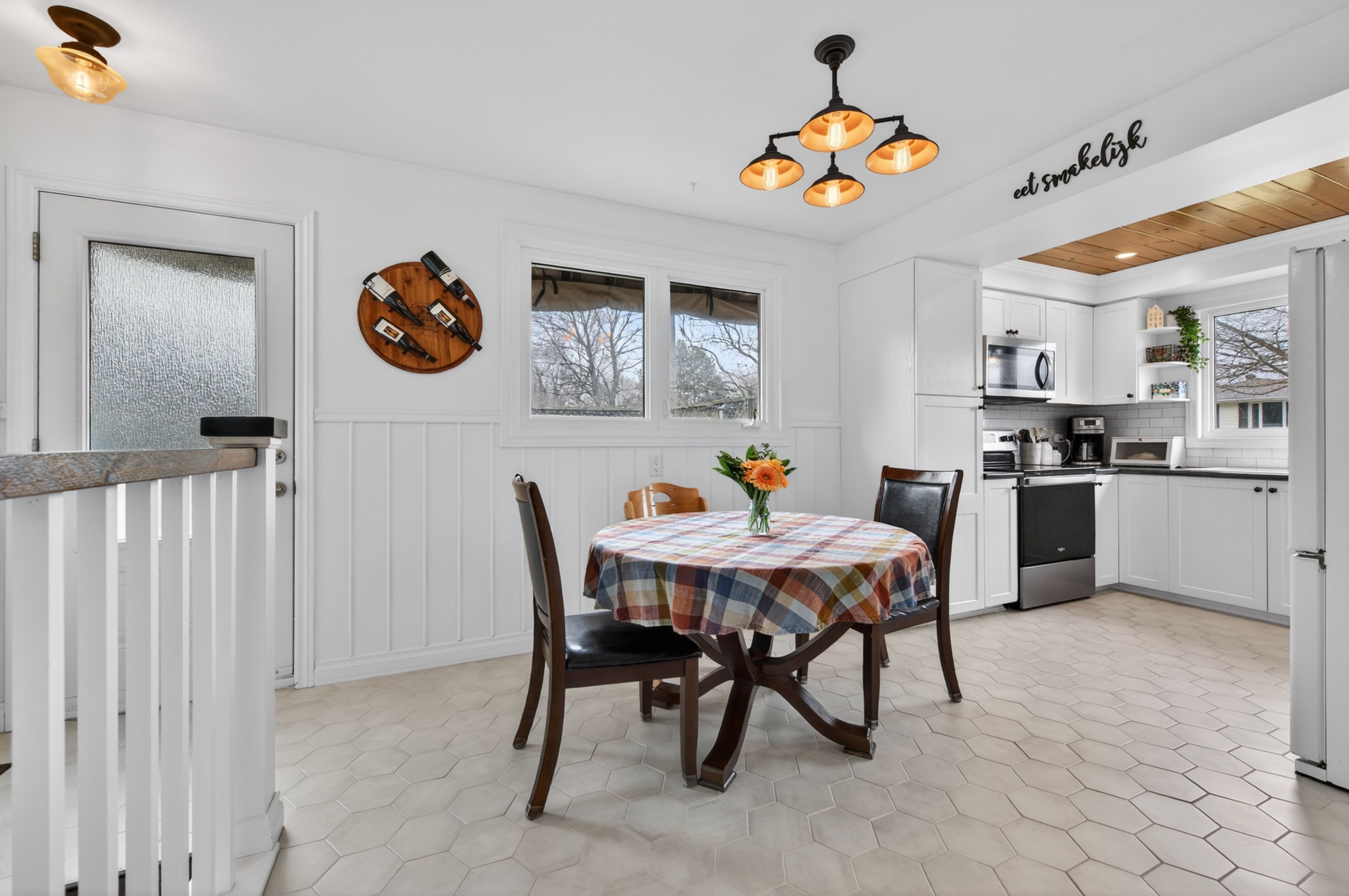• Renovated kitchen with heated floors and convenient walkout to patio.