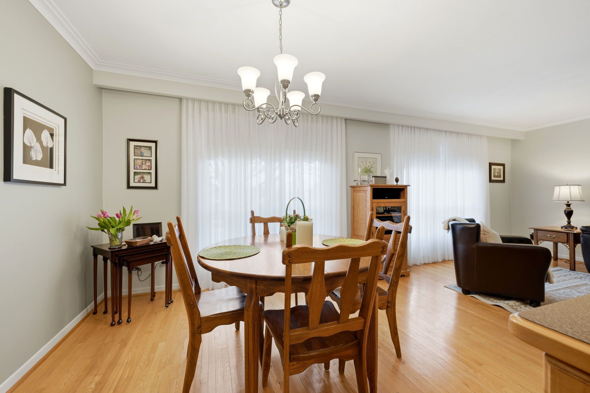 • Bright living and dining room with large windows for natural light.