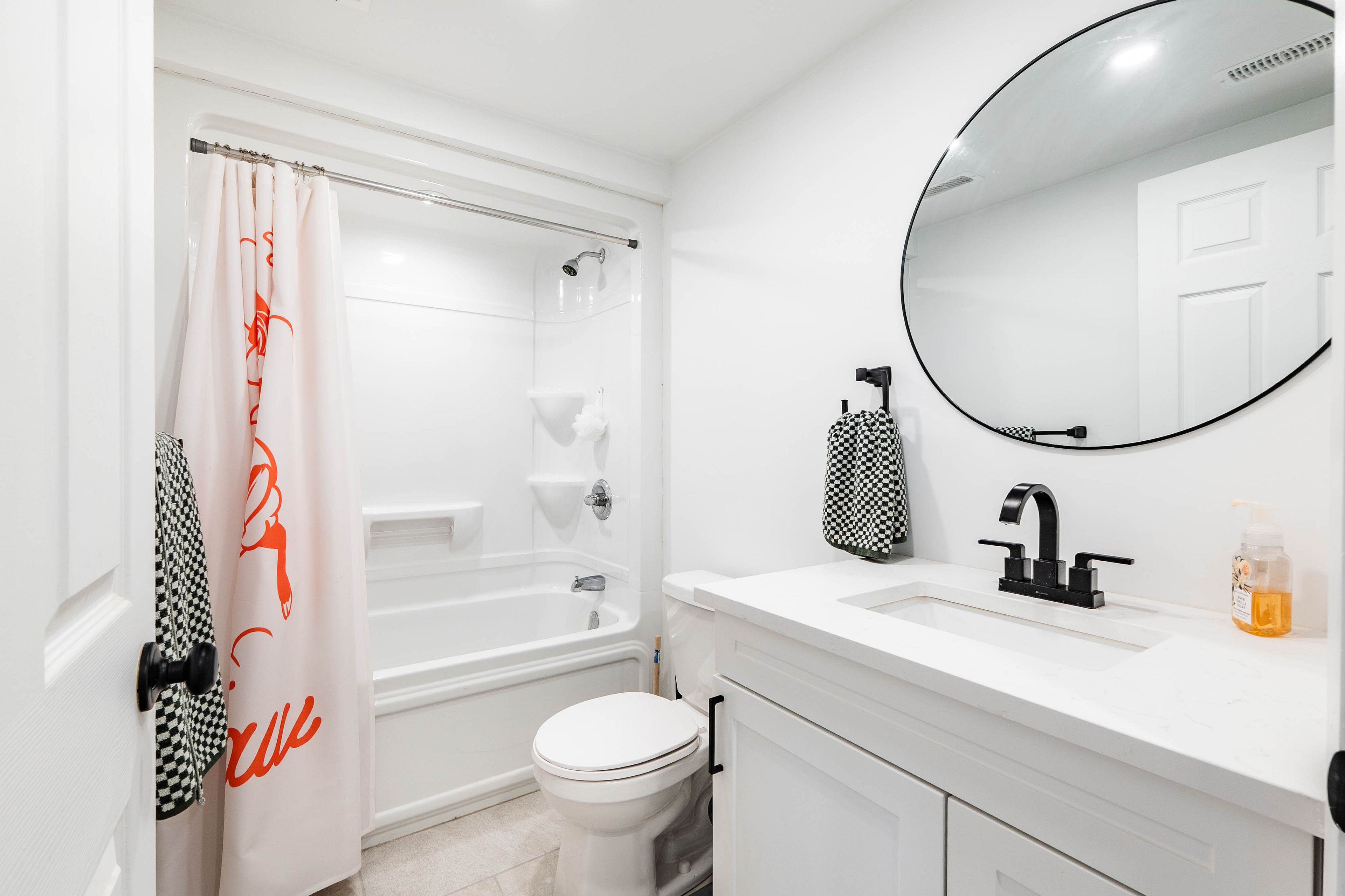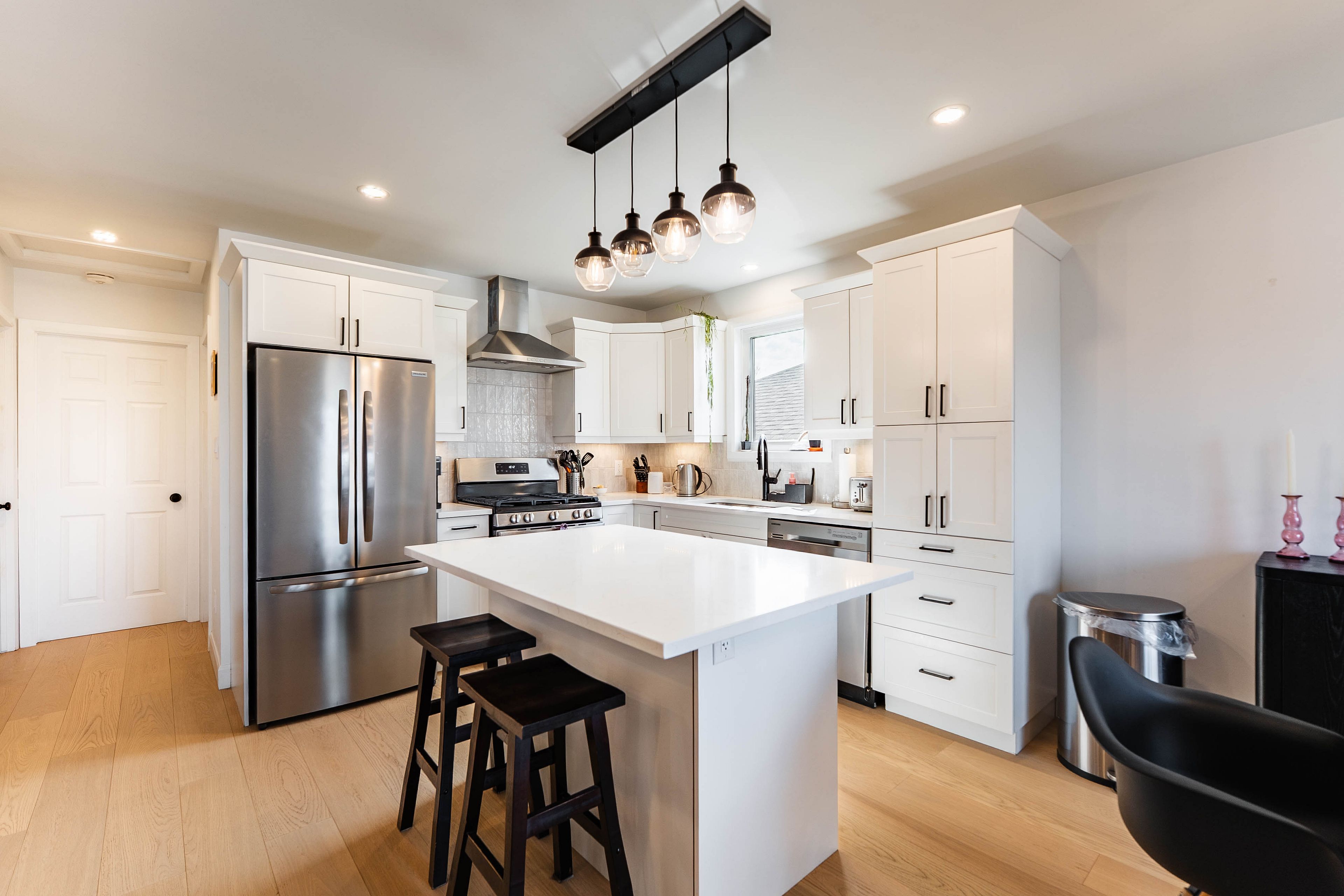 • Stylish kitchen with quartz countertops, perfect for cooking and entertaining.
