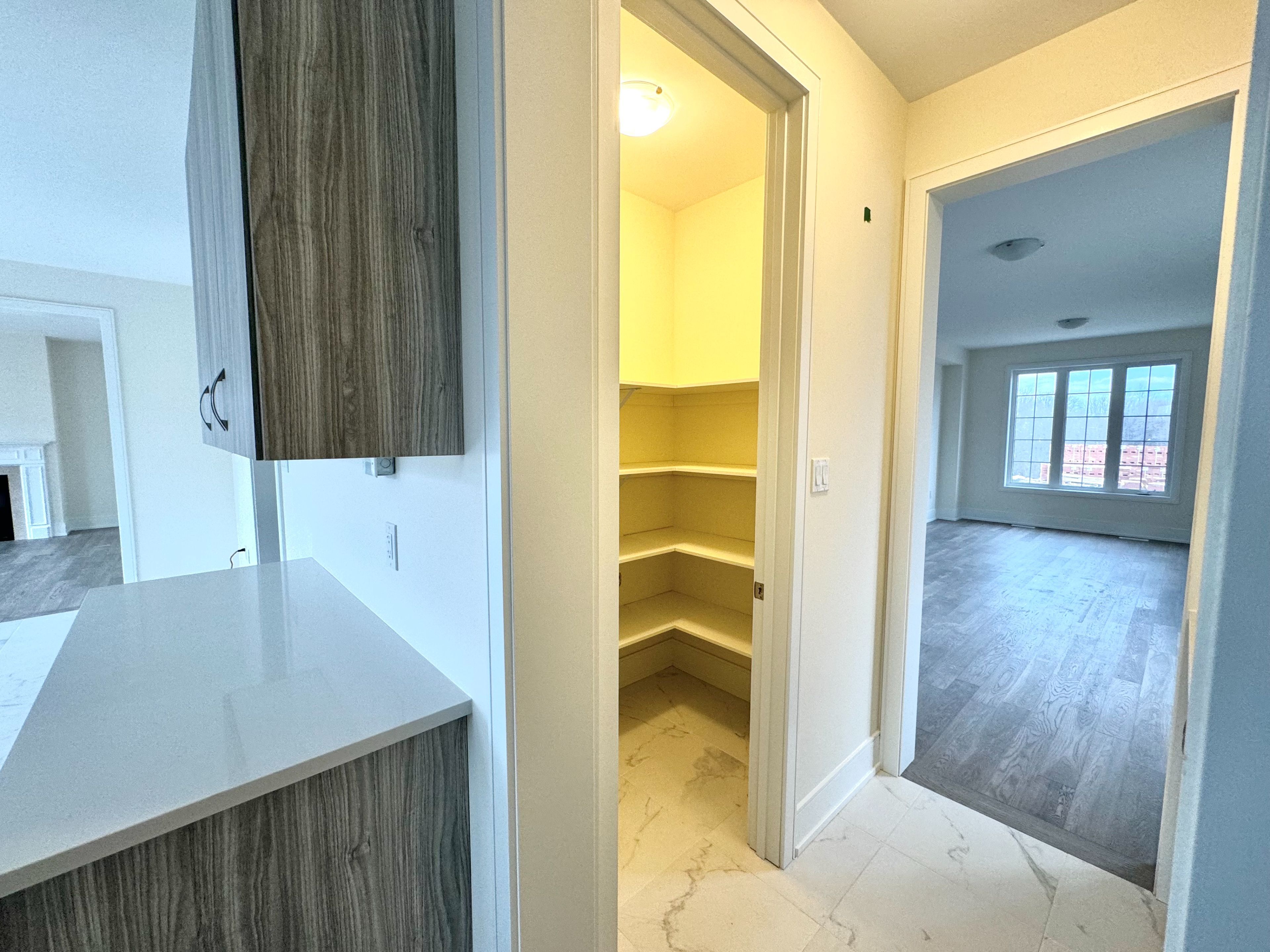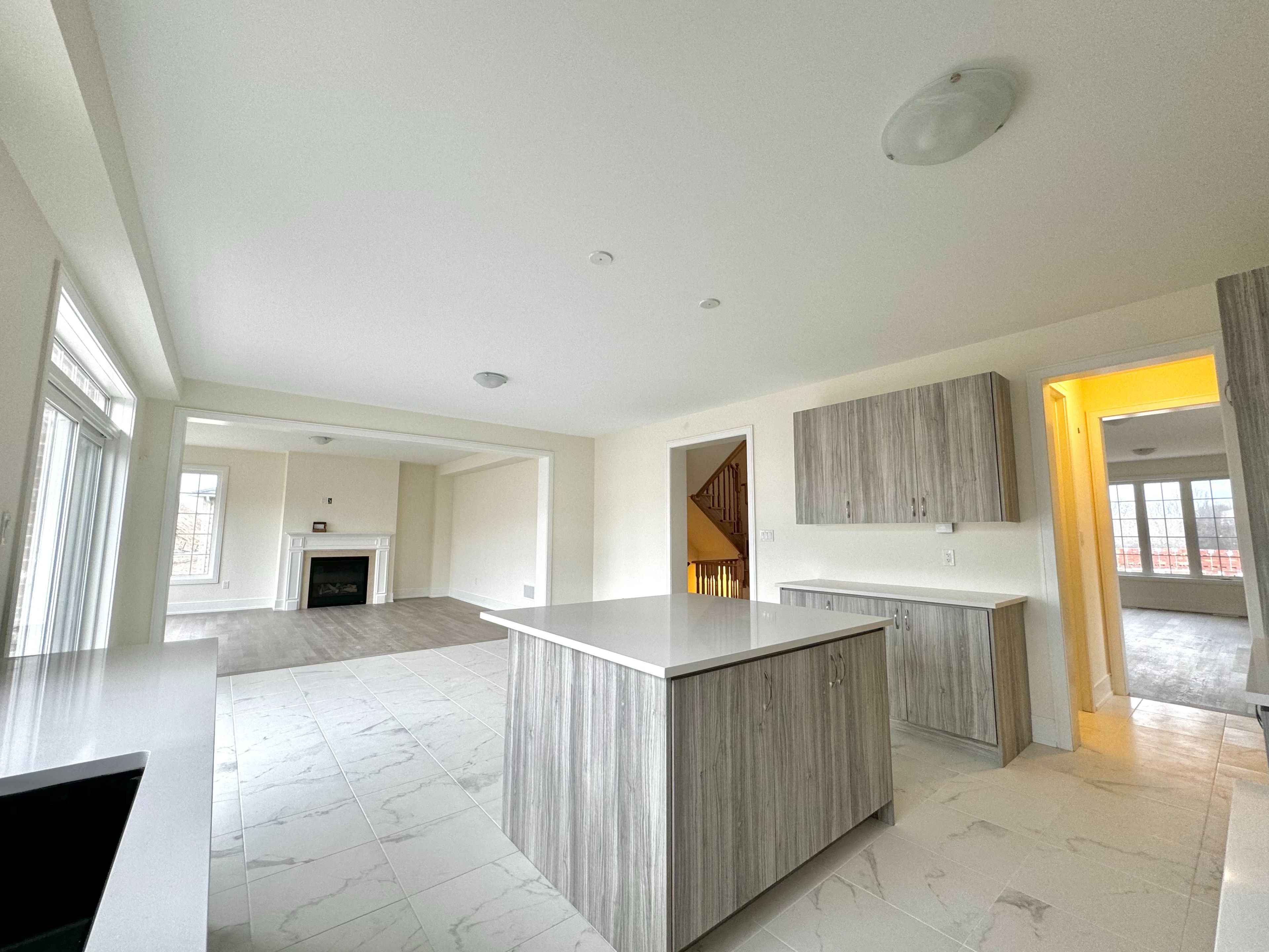 • High-end gourmet kitchen with quartz countertops and spacious island.
