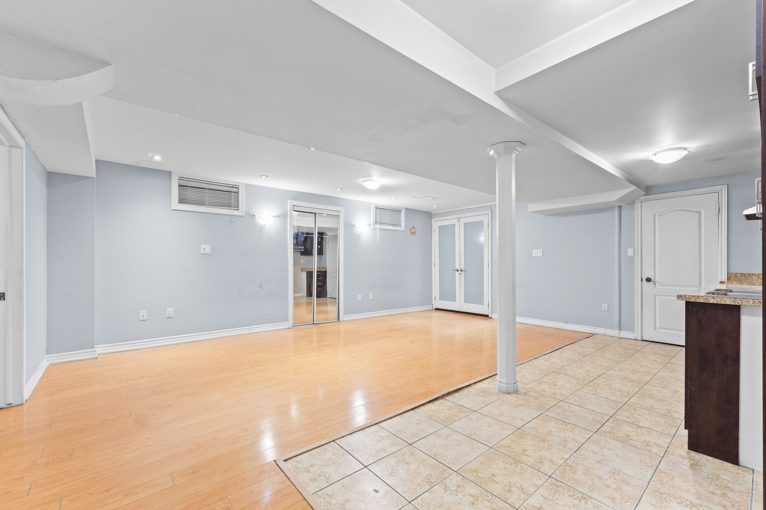 • Elegant double door entrance leads to an inviting and bright layout.