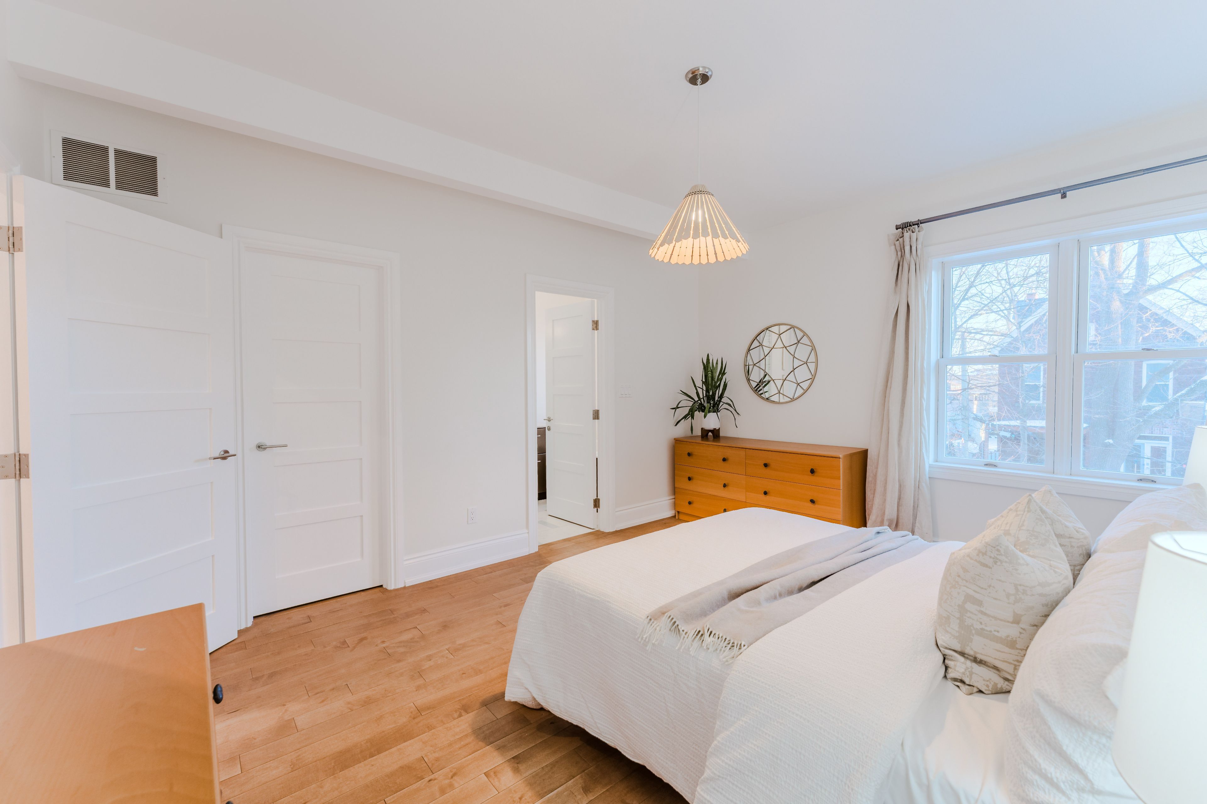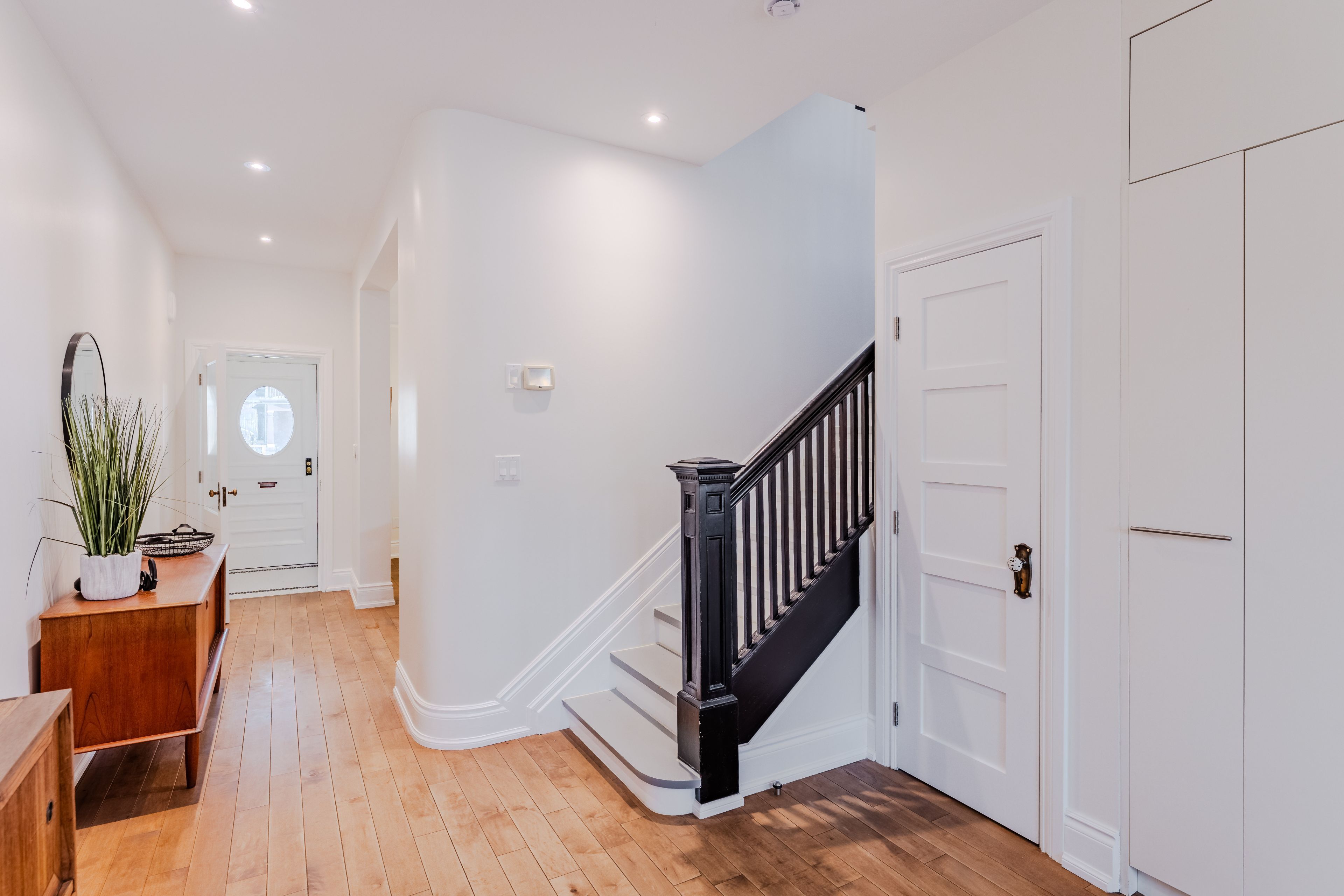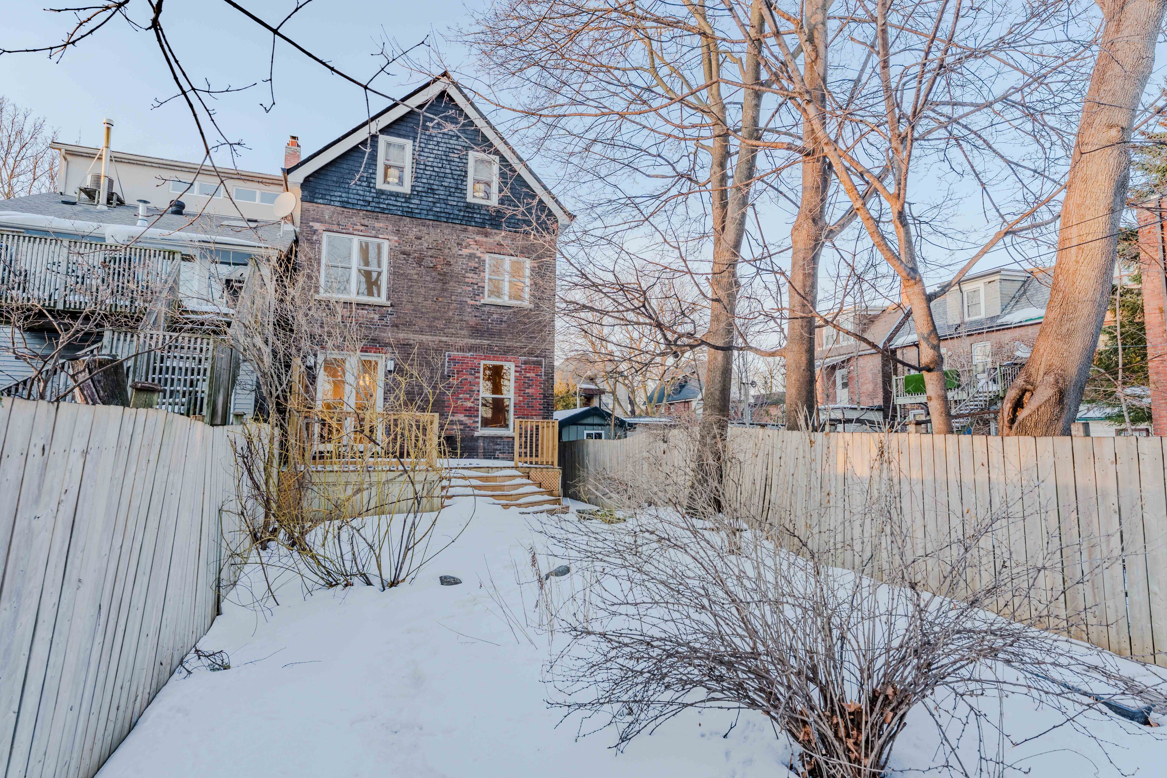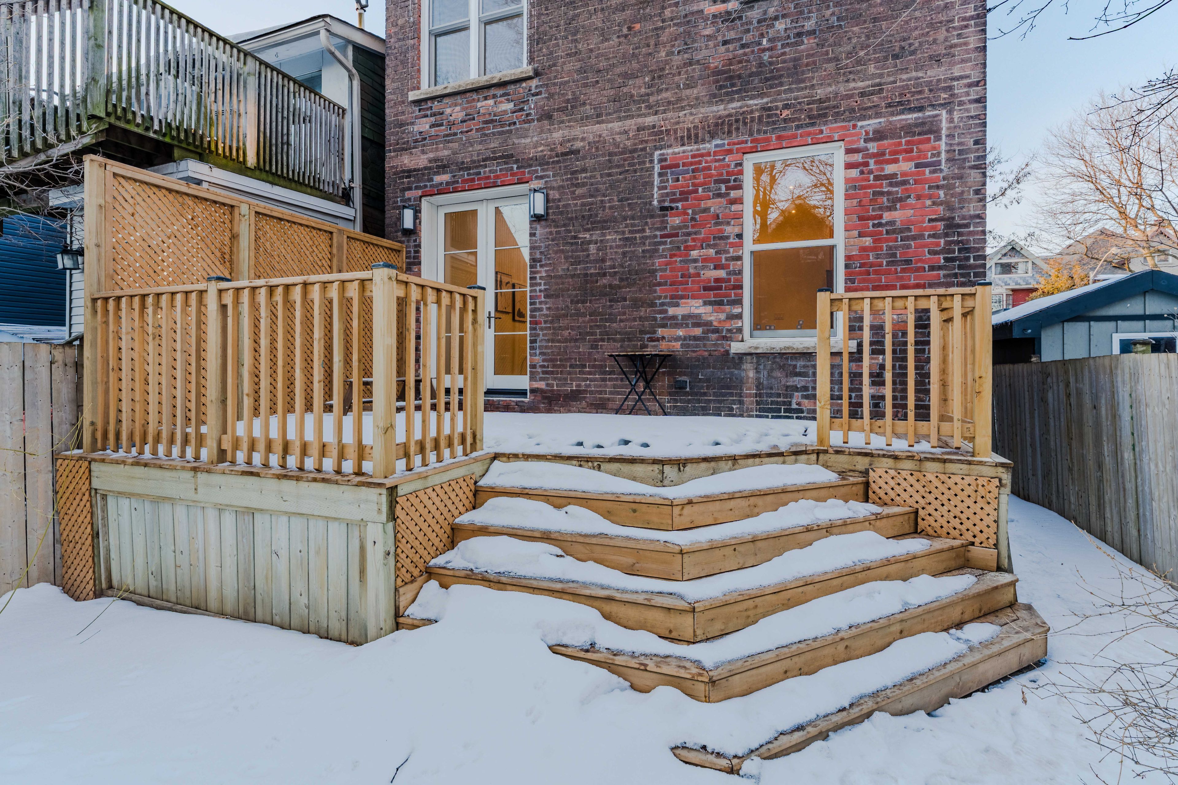 Welcome to 51 harvard ave! This thoughtfully updated 3 storey home offers a refined blend of traditional character and modern function across three finished levels. The entry opens into a comfortable living room with a fireplace. Custom built-in cabinetry enhances the space with integrated storage and architectural detail. Original architectural elements including the staircase and railing, pocket doors, fireplace mantels, curved ceiling details, and stained glass have been carefully preserved, reflecting the home's early craftsmanship. The beautifully renovated kitchen includes built-in appliances, flat-panel wood cabinetry, and a large island designed for everyday use and entertaining. The adjoining dining room creates an easy gathering space and features large glass doors that walk out to a wood deck and treed garden setting, extending the main floor outdoors. Upstairs, the primary suite includes his and hers closets with custom organizers and a renovated four-piece ensuite with tile floors, a deep soaker tub, and a glass-enclosed shower. An additional bedroom on this floor features a large bay window, built-in shelving, and hardwood flooring, offering flexibility as a generous secondary bedroom or kept as an additional living/office space. The third level features two well-proportioned bedrooms with hardwood floors and large windows, flooded with natural light. A four-piece bathroom completes this level. The lower level provides extensive storage, a dedicated laundry area with side-by-side washer and dryer, utility space, and a large flexible room suitable for recreation, studio, or home office use. A rare private drive with parking for two cars is the cherry on top. Set within a treed residential pocket in roncesvalles, just steps to high park and sunnyside beach, and in close proximity to roncesvalles village shops, transit, and daily amenities, this home combines a natural, cottage-like setting with the convenience of west-end living.