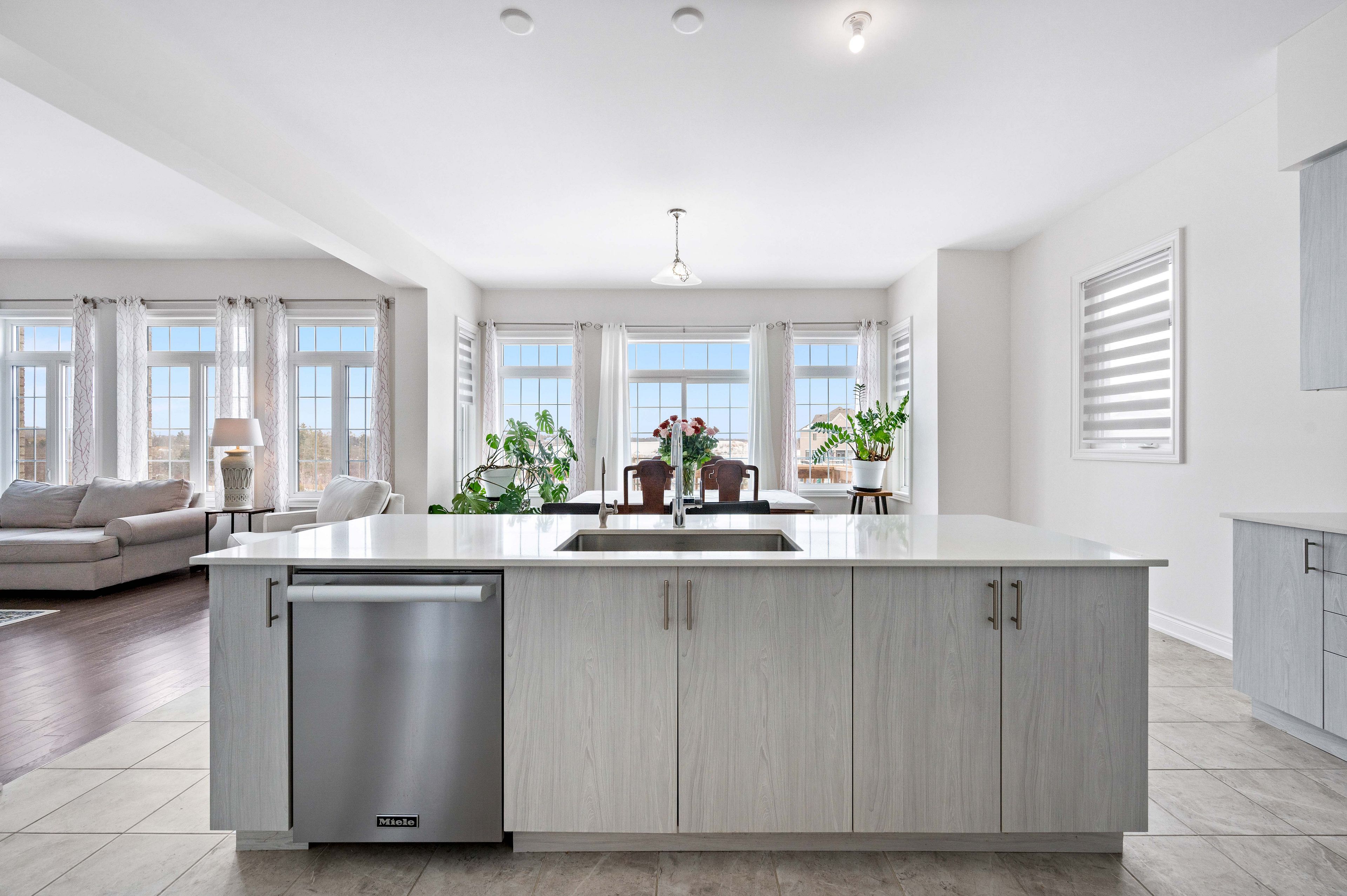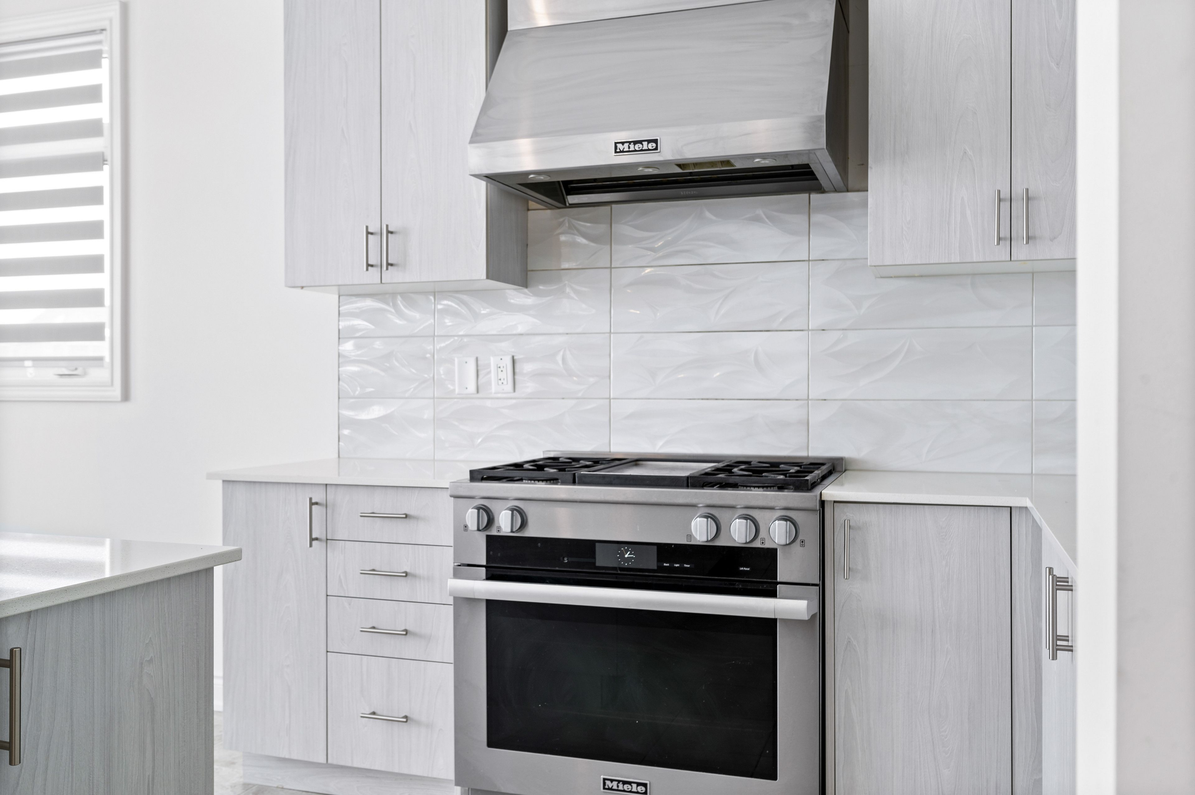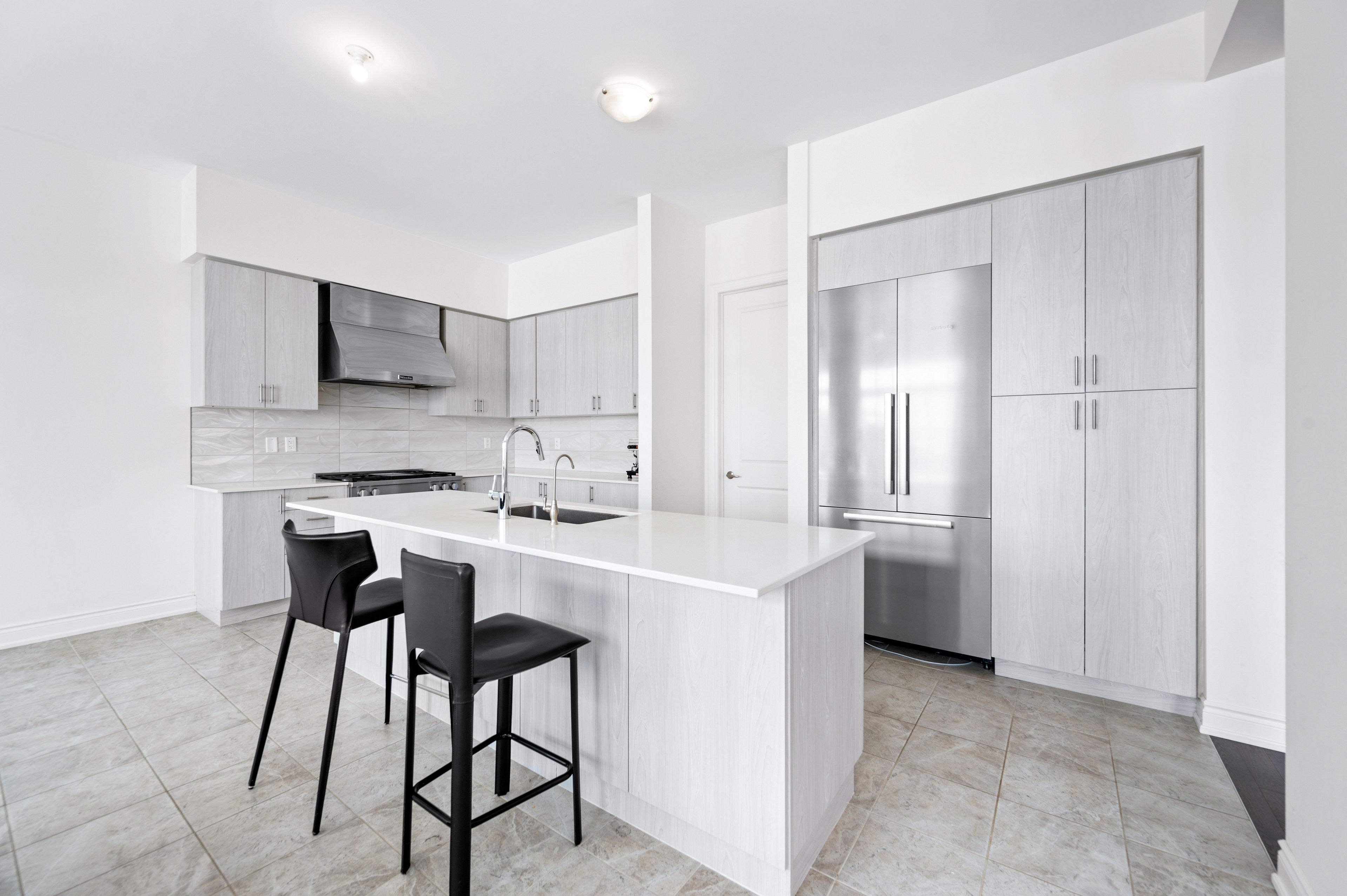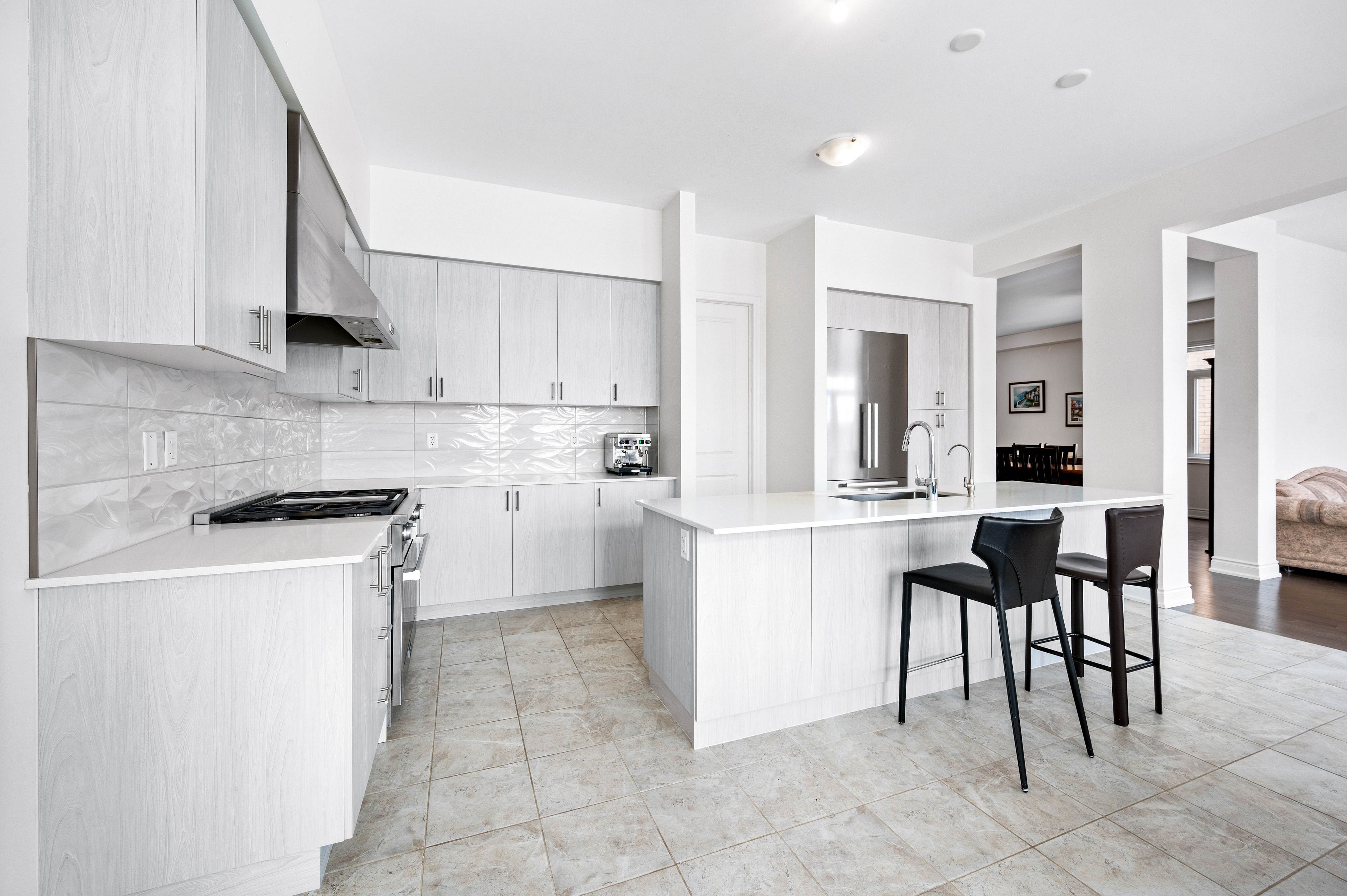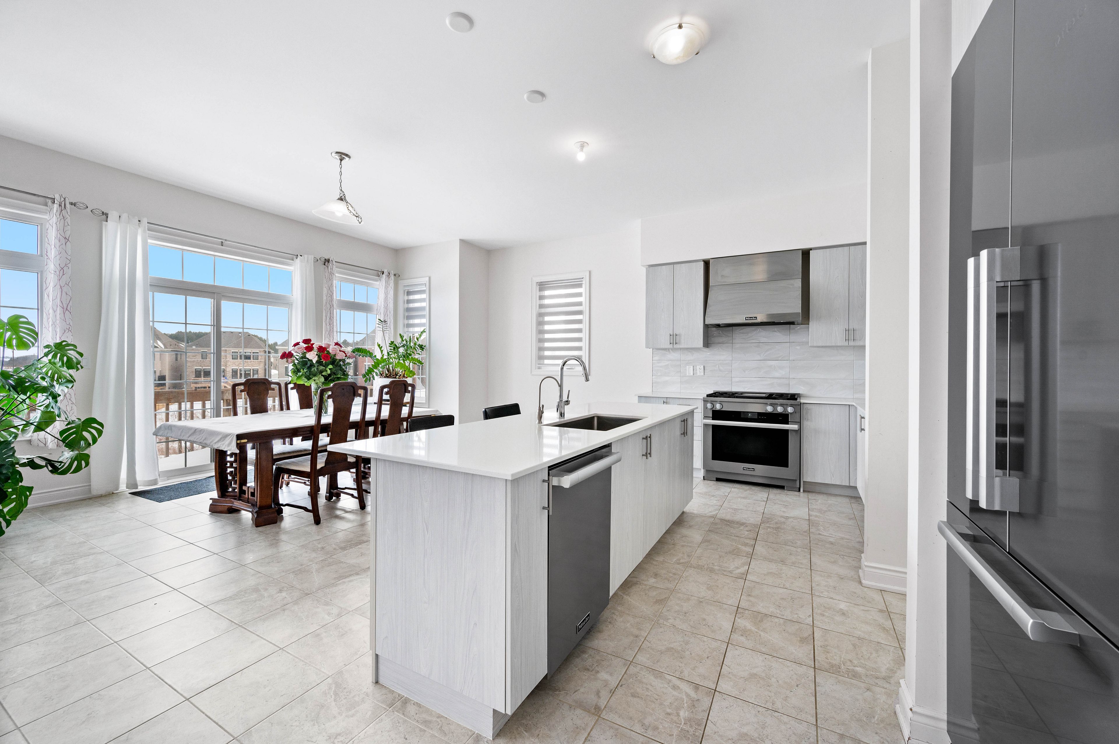 • Gourmet kitchen features premium appliances and quartz countertops.