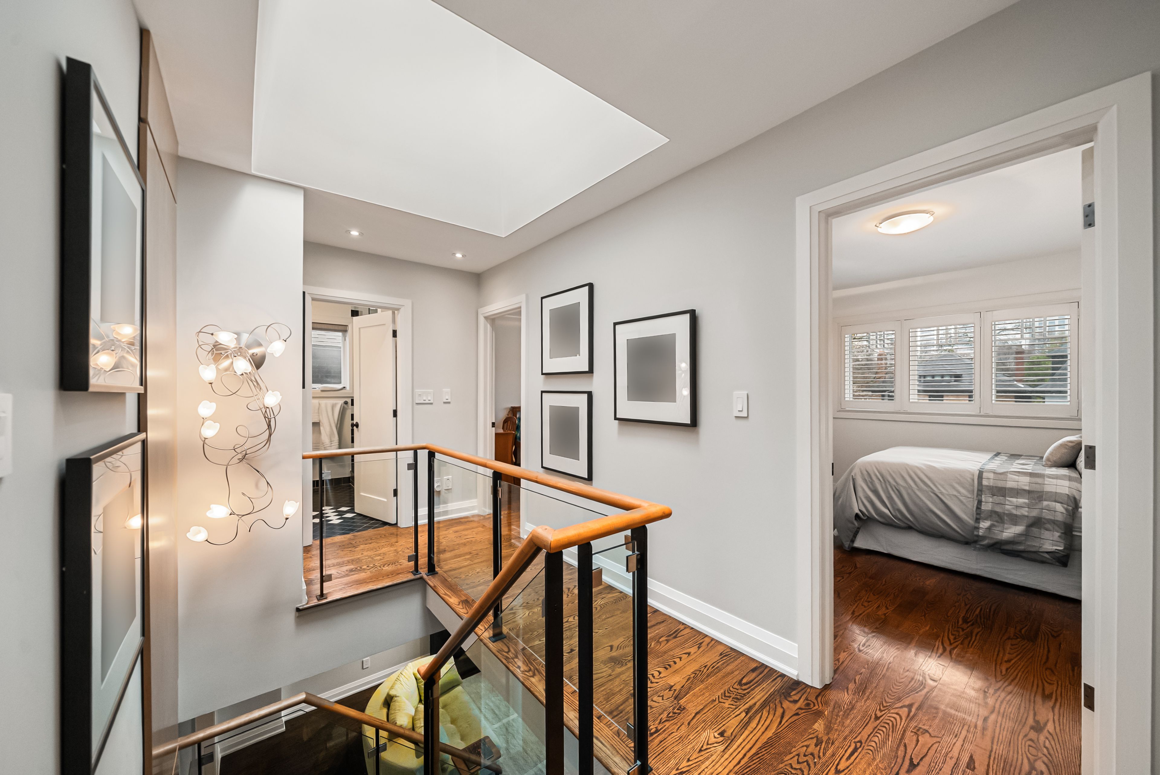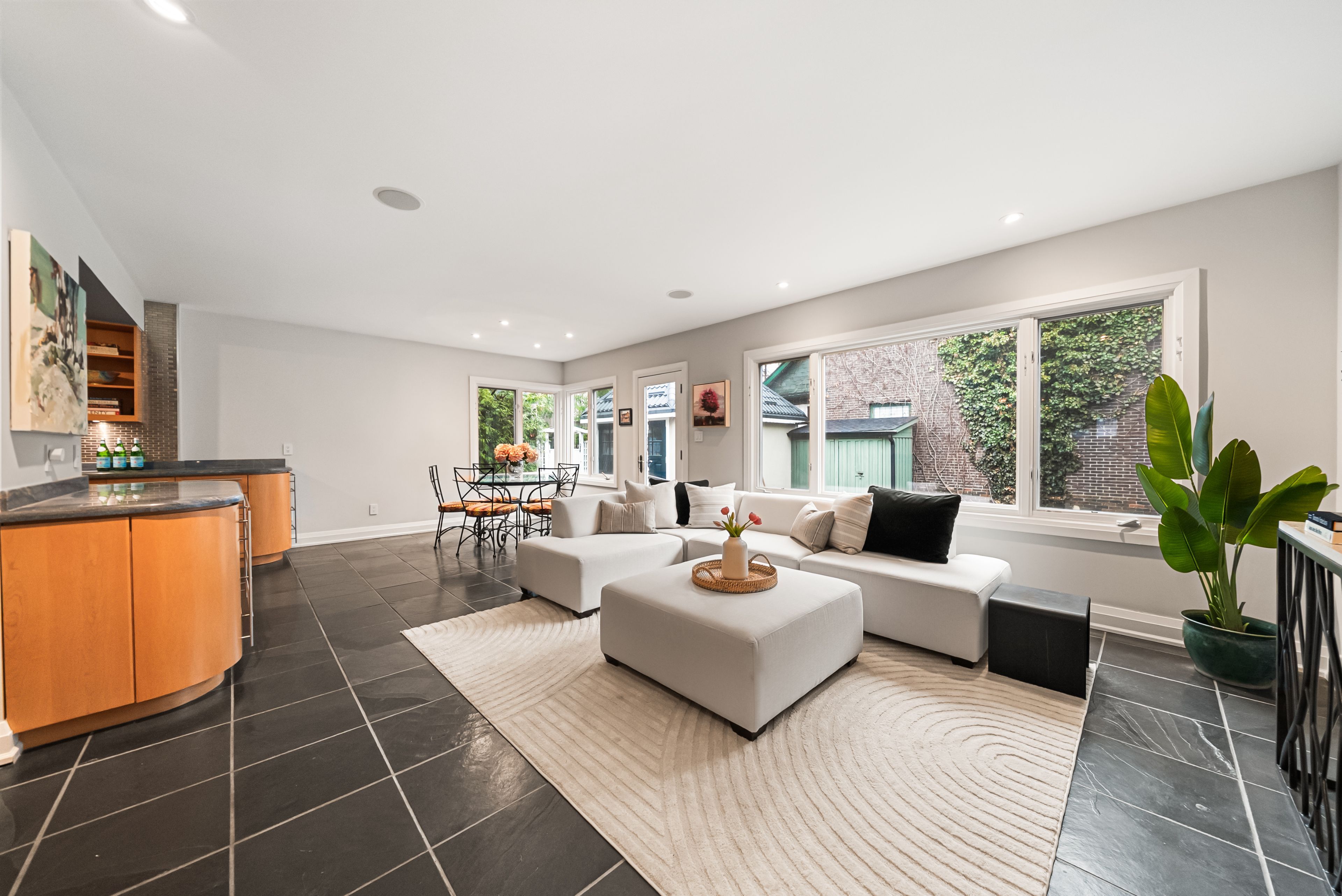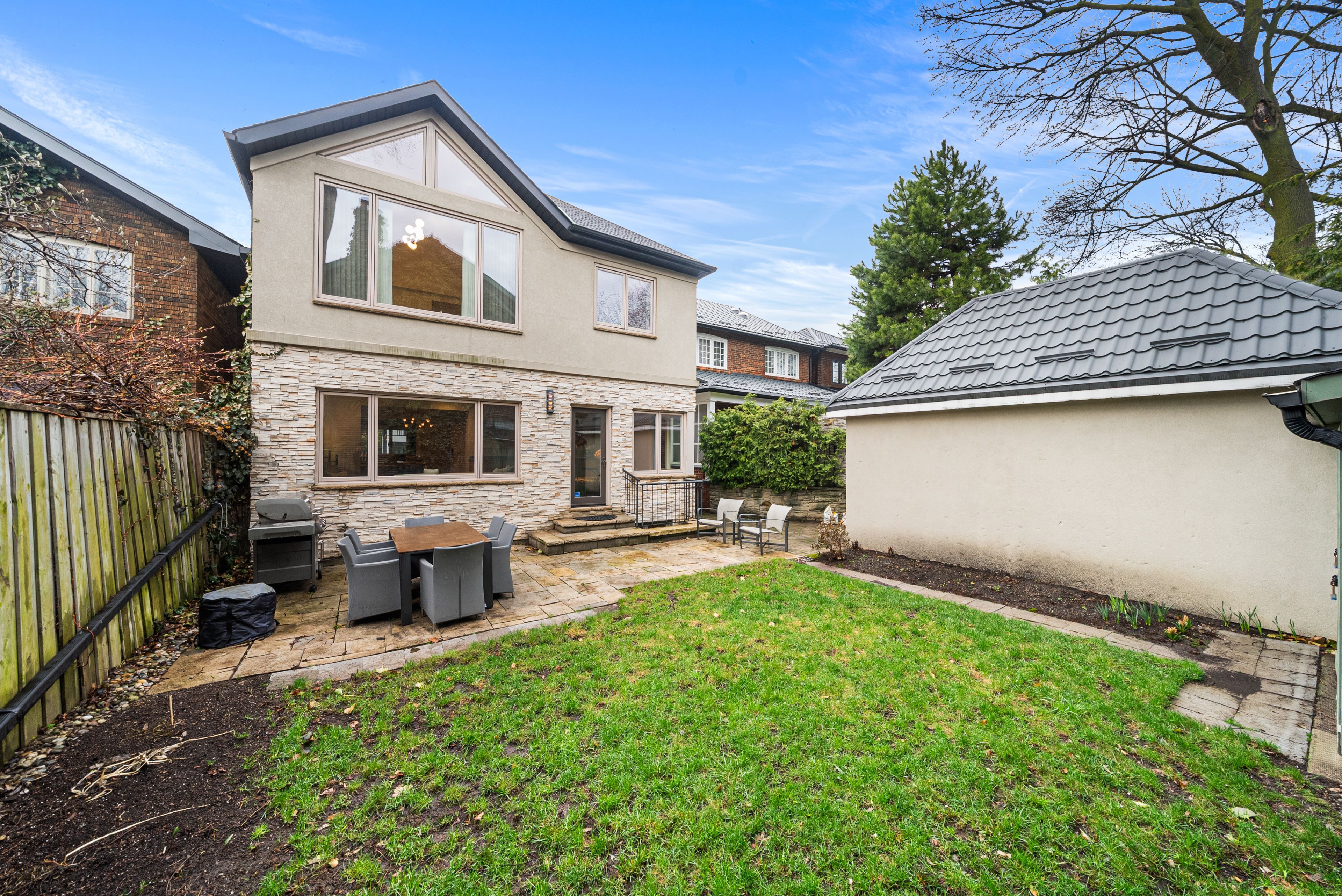 Welcome to a fabulous moore park family home where space, style, fun, and everyday ease come together beautifully. With four generous bedrooms plus a study upstairs, an incredible main floor for gathering, and a fun-filled lower level, this home is ready to grow with you. Set on a 30 x 116 ft lot in one of toronto's most sought-after neighbourhoods, this detached two-storey offers approx. 3,840 sq ft of thoughtfully designed living space. A widened driveway with front pad parking and a covered porch set the tone, ideal for morning coffee or evening cocktails while greeting neighbours. Inside, the spacious foyer features double coat closets, a powder room, and an industrial floating staircase. The elegant living room is anchored by a contemporary wood-burning fireplace, while the dining room suits formal and casual entertaining. At the rear, a sun-filled family room addition with walkout to the backyard forms the heart of the home, seamlessly connected to a stylish kitchen with ample storage, prep space, and premium sub-zero, wolf, and miele appliances. Upstairs offers four well-proportioned bedrooms, a built-in office or library, two bathrooms, and two skylights. The primary suite is a private retreat with a vaulted a-frame ceiling, oversized window, custom built-ins, two closets, and a five-piece ensuite with heated floors, heated towel rack, and new steam shower, while a four-piece bath with heated floors serves the additional bedrooms. The finished lower level features a spacious recreation room, fifth bedroom, finished bathroom, and oversized mudroom perfect for busy family life and mini sticks, with a separate entrance. The backyard offers a double garden shed, play space, and room to entertain. Ideally located near deer park jr & sr ps, north toronto ci, and top private schools including branksome hall and the york school, and just moments from ravine trails, parks, and the shops and restaurants at yonge and st clair, this is moore park living at its best.
