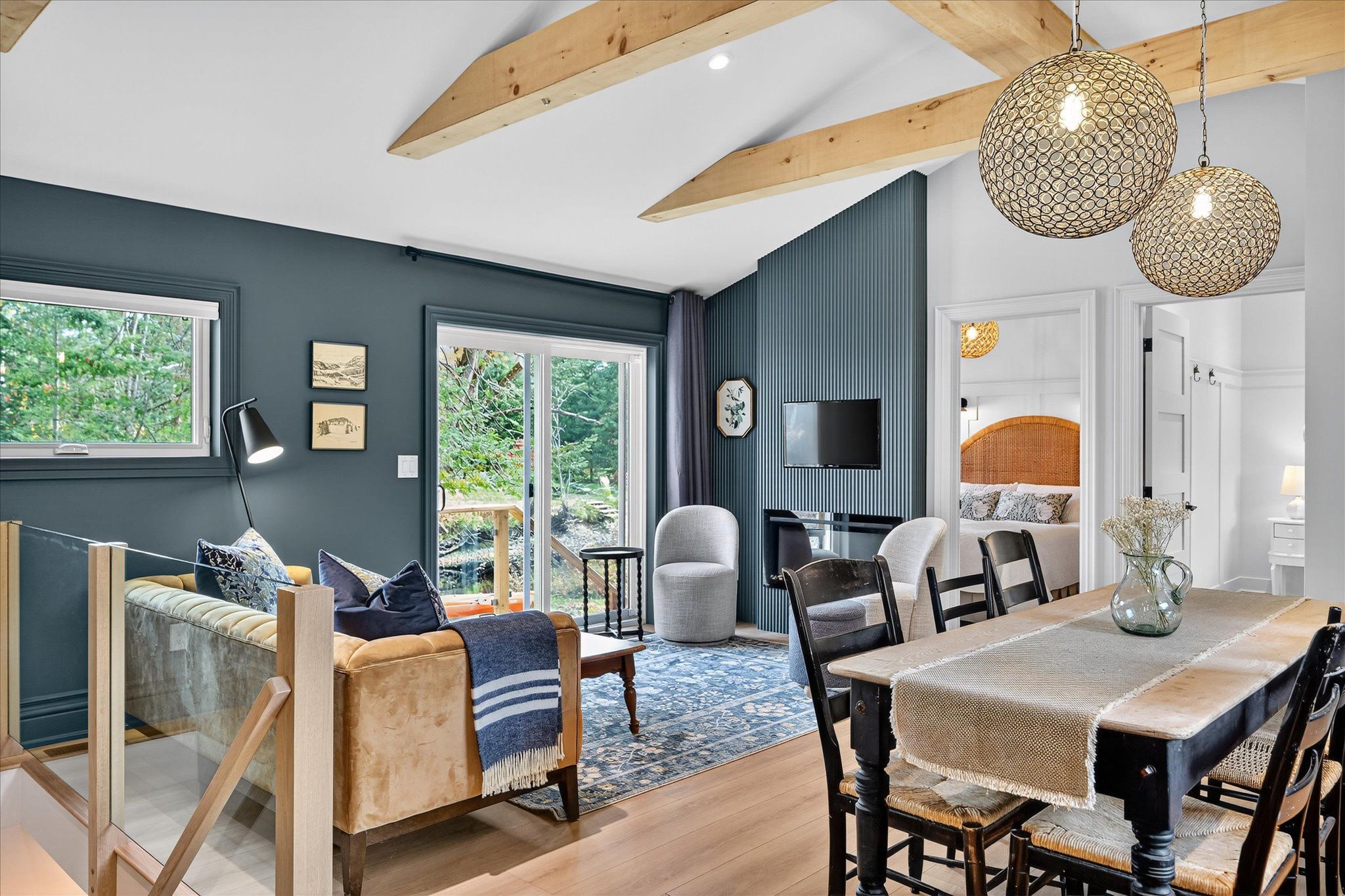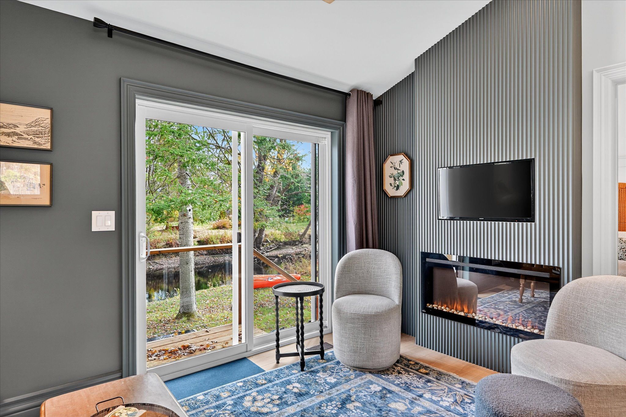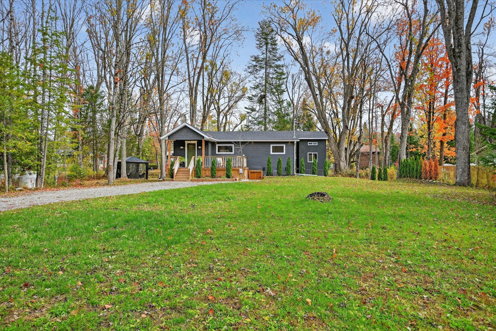 Impeccable quality and design on the miskwaa ziibi river. An exceptional complete package perfectly suited for the family cottage country escape. Kayak downstream to little bald lake and the paddling trail. The attention to detail is beyond the norm we see today. The design and décor has flair and style only found in magazines. Weekends and holidays would be real easy in this space. Completely renovated with high-quality materials, fixtures, lighting and appliances. Exquisite furniture and accessories. Two bedrooms, a four-piece bath, open-concept kitchen, dining and living room with modern electric fireplace. High ceilings, large wood beams, tile and vinyl flooring. Main-floor laundry, front porch, back deck and easy access to the river, lower level with storage, utility room, games area, two-piece bath and a spacious tv room. The detached bunkie with loft, is heated and ready for the kids to hang out. Includes outdoor furniture, toys and gazebo. Sit around the campfire river side and enjoy the quiet peaceful essence of being surrounded by nature. There is a flow of casual elegance in the 1200 square feet of living space influenced by the surrounding nature of 125' of river living. Minutes away from the villages of bobcaygeon and buckhorn. Two hours from the gta. Plenty of snowmobile, hiking, biking trails and boating access near-by.