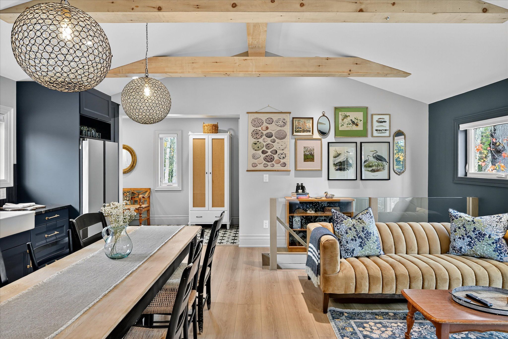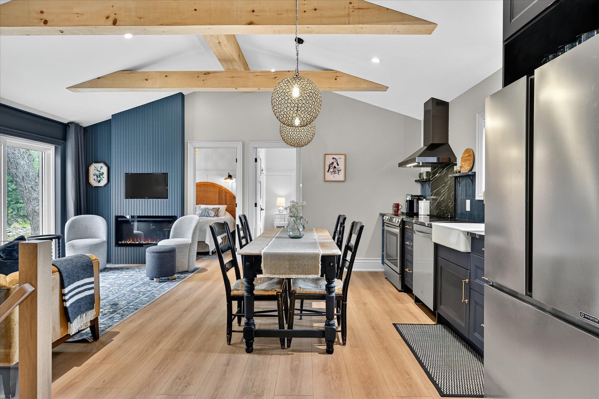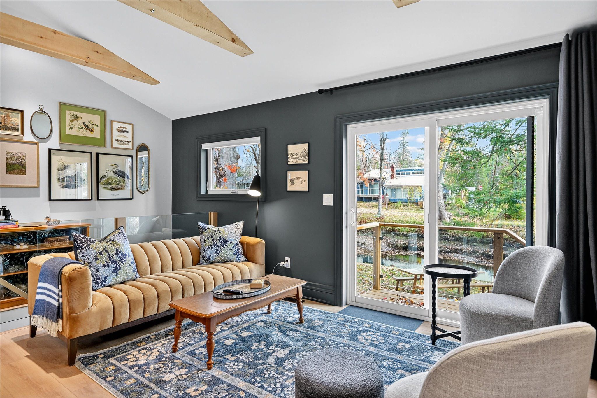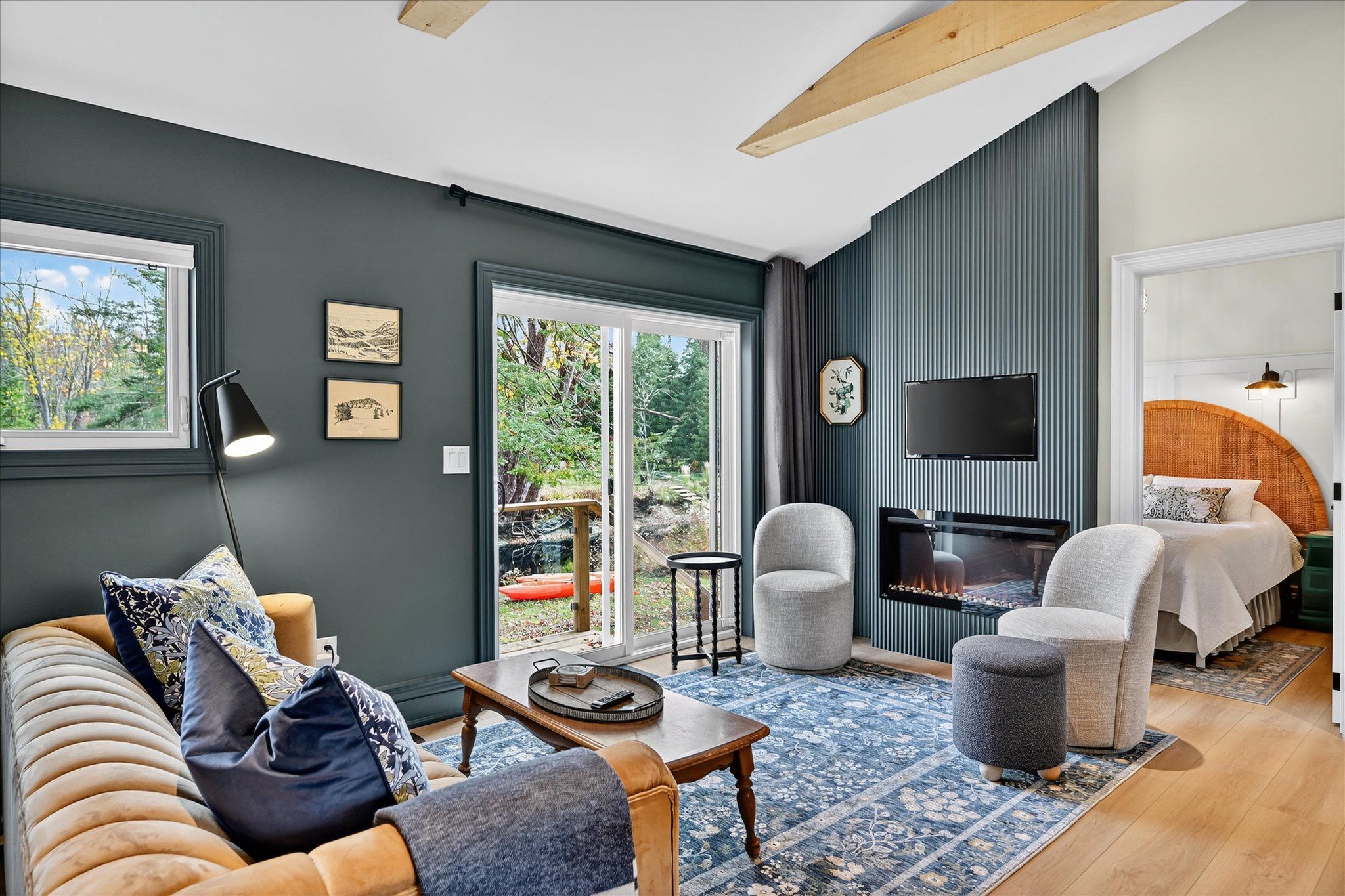 Impeccable quality and design on the miskwaa ziibi river. An exceptional complete package perfectly suited for the family cottage country escape. Kayak downstream to little bald lake and the paddling trail. The attention to detail is beyond the norm we see today. The design and décor has flair and style only found in magazines. Weekends and holidays would be real easy in this space. Completely renovated with high-quality materials, fixtures, lighting and appliances. Exquisite furniture and accessories. Two bedrooms, a four-piece bath, open-concept kitchen, dining and living room with modern electric fireplace. High ceilings, large wood beams, tile and vinyl flooring. Main-floor laundry, front porch, back deck and easy access to the river, lower level with storage, utility room, games area, two-piece bath and a spacious tv room. The detached bunkie with loft, is heated and ready for the kids to hang out. Includes outdoor furniture, toys and gazebo. Sit around the campfire river side and enjoy the quiet peaceful essence of being surrounded by nature. There is a flow of casual elegance in the 1200 square feet of living space influenced by the surrounding nature of 125' of river living. Minutes away from the villages of bobcaygeon and buckhorn. Two hours from the gta. Plenty of snowmobile, hiking, biking trails and boating access near-by.