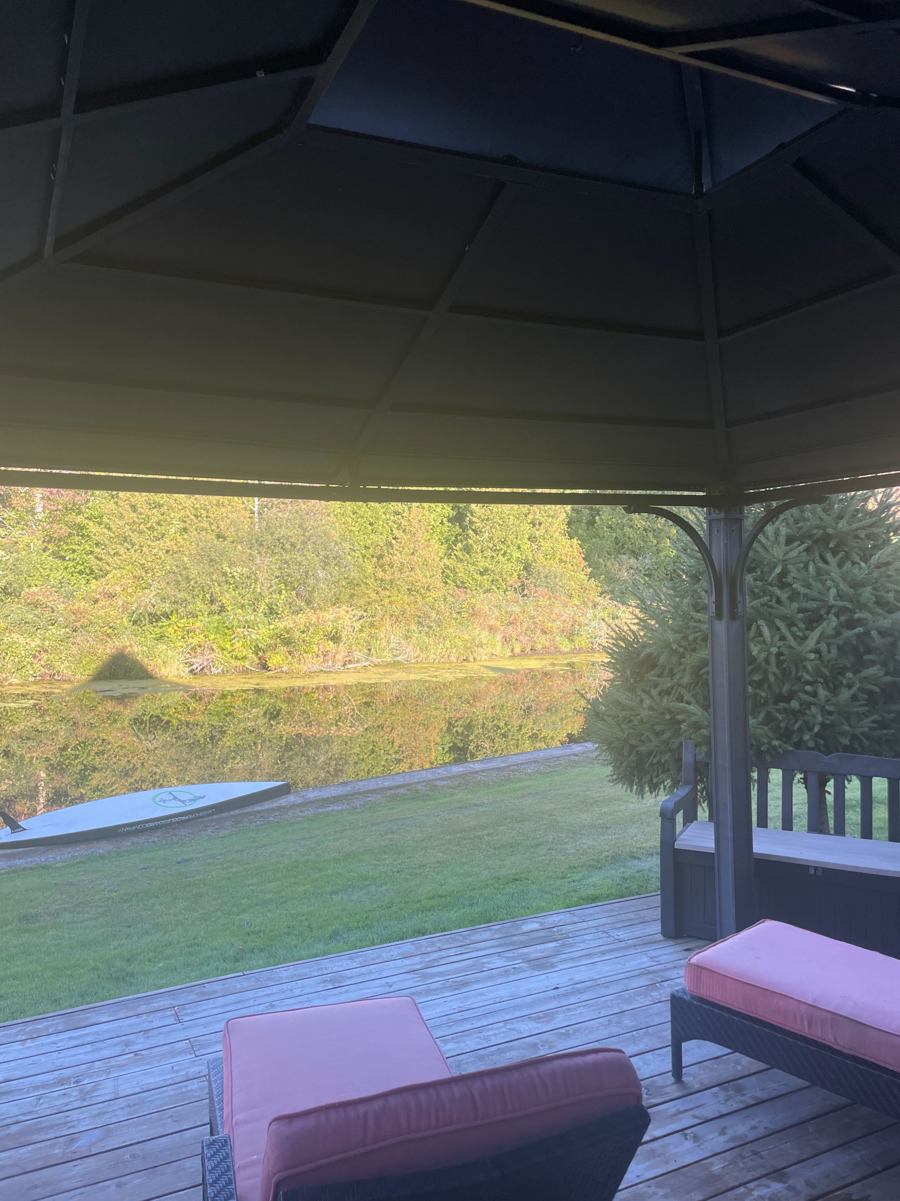 • Private deck offers lovely views of the canal and woodlands.