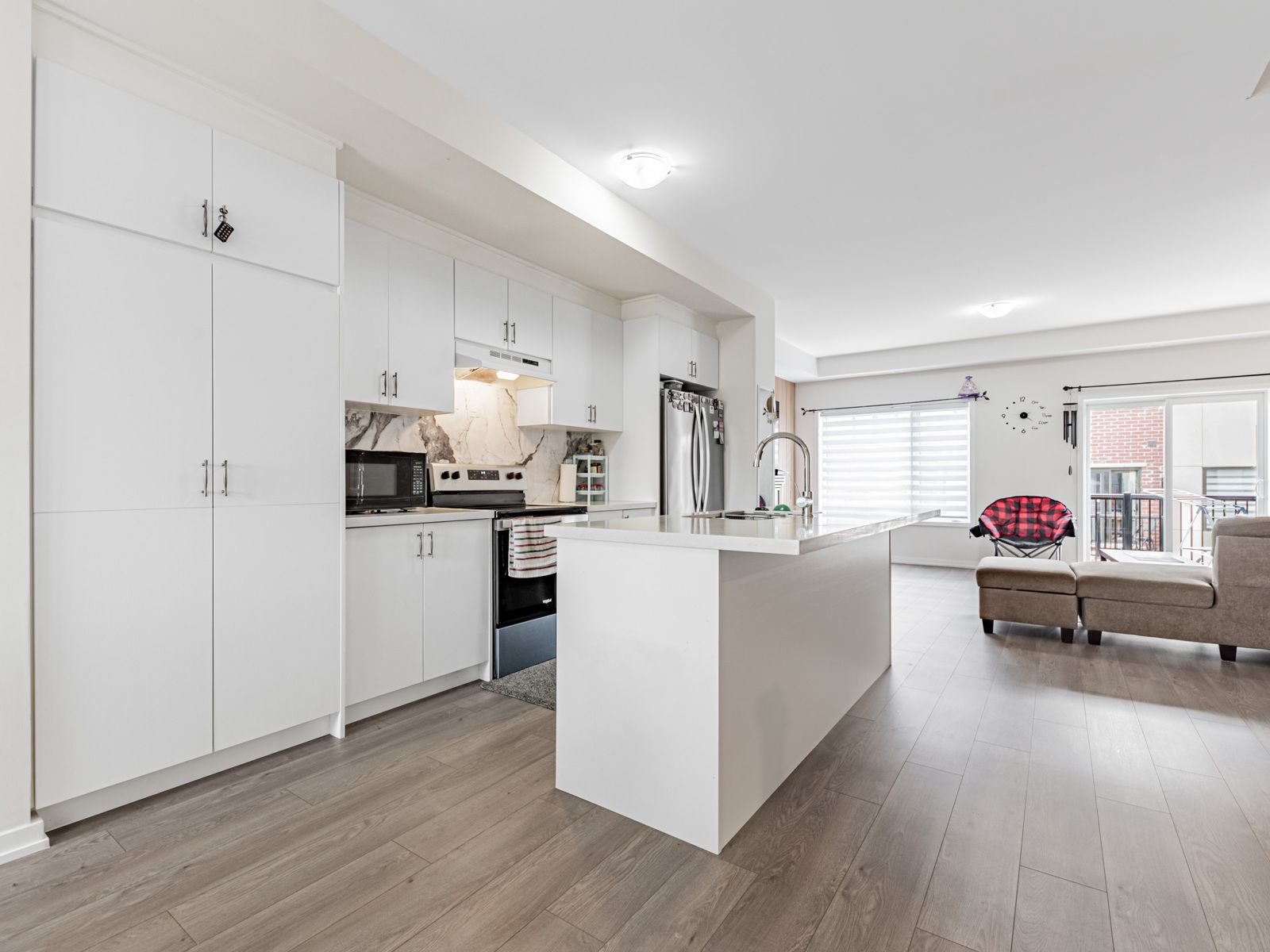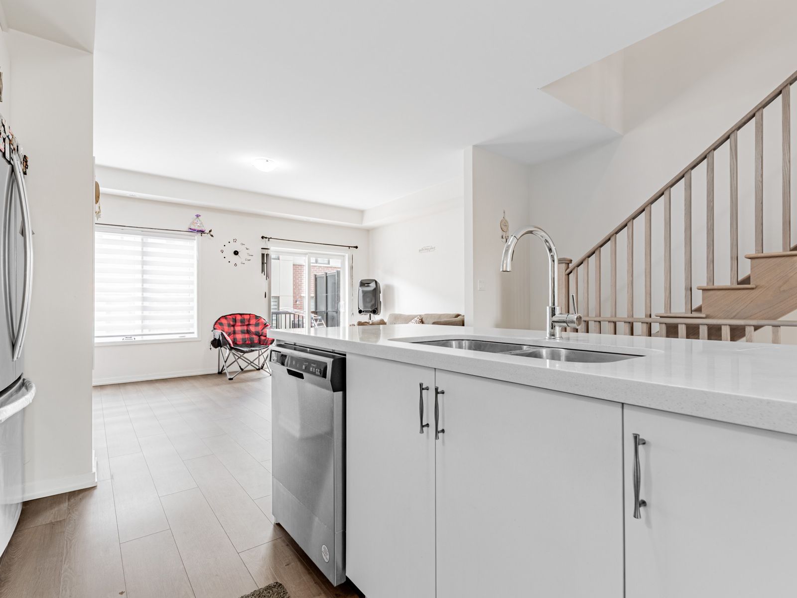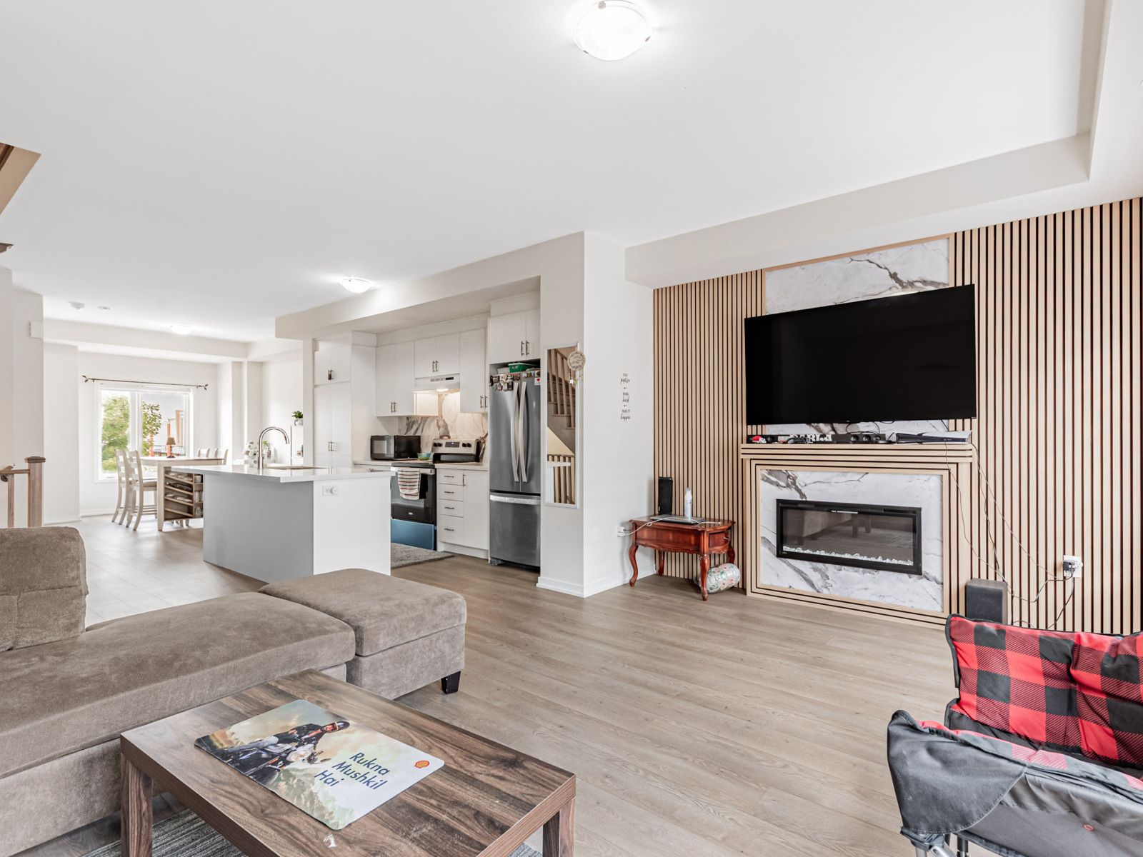 • Open concept main floor featuring a modern kitchen and quartz countertops.