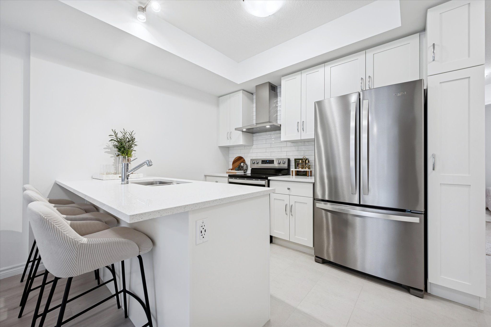 Welcome to 51 lomond lane in kitchener: a beautifully upgraded ruby floor plan built by fusion homes, offering modern finishes, carpet-free living, and exceptional comfort throughout, nestled in the highly desirable huron village community, one of the city's most family-friendly and rapidly growing neighborhoods! Designed for both style and functionality, this bright and inviting 2-bedroom, 2-bathroom home features a thoughtfully laid-out open-concept design that maximizes space and natural light. The contemporary kitchen is a true highlight, complete with quartz countertops, an upgraded backsplash, soft-close cabinetry, a sleek flush breakfast bar, and an upgraded kitchen faucet, perfect for everyday living and entertaining alike. The full 6-piece stainless steel electric appliance package adds both elegance and convenience. Enjoy seamless, carpet-free living with durable tile and laminate flooring throughout, complemented by upgraded interior door hardware that adds a refined touch. Both bathrooms continue the elevated feel with quartz counters and soft-close cabinets, offering a cohesive and modern aesthetic. The home's exterior showcases a classic combination of brick and vinyl, delivering curb appeal with low-maintenance durability. Additional features include air conditioning, a water softener, and 1 dedicated parking stall for added convenience. With a flexible closing available in 60-120 days, this move-in ready home presents an excellent opportunity for first-time buyers, downsizers or investors. Located in the sought-after huron village area of kitchener, this home offers unbeatable convenience: minutes to highway 401, close to top-rated schools, walking distance to parks, trails & playgrounds, nearby shopping plazas & restaurants, public transit access, community centres and recreational facilities, everything you need is just moments away. Don't miss your chance to own this beautifully upgraded home, book your showing today!
