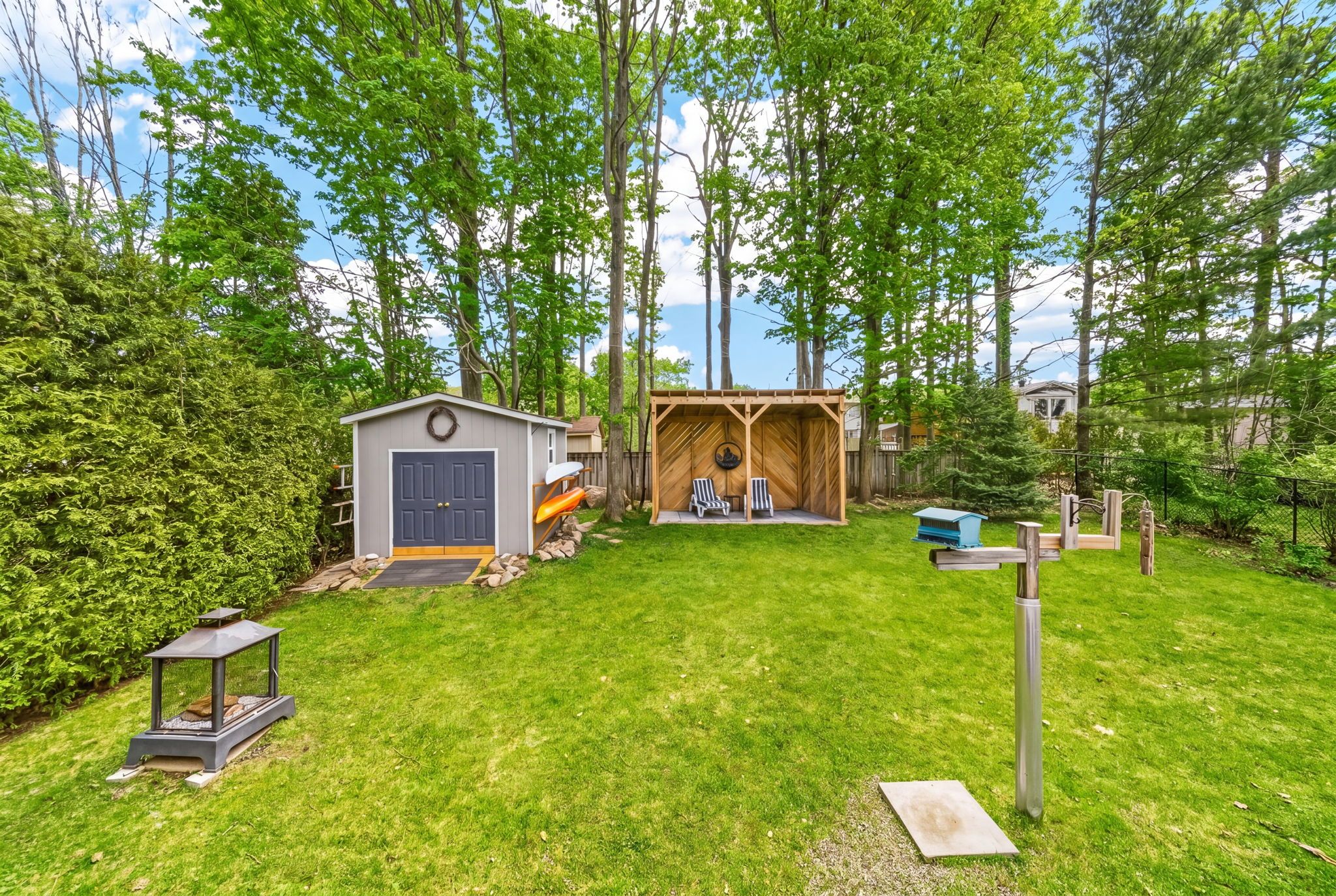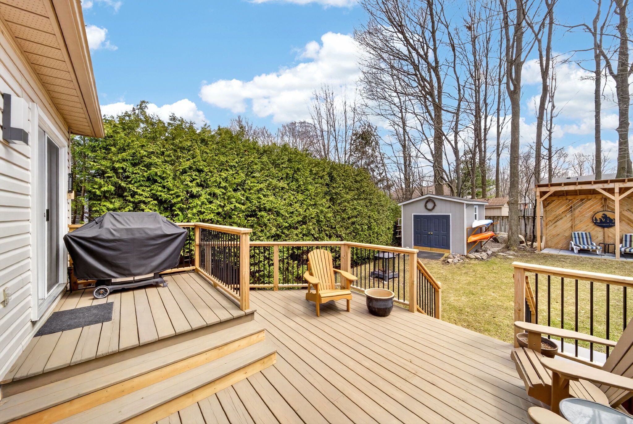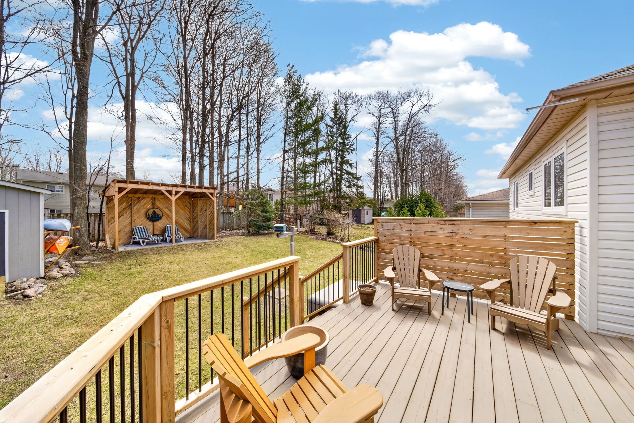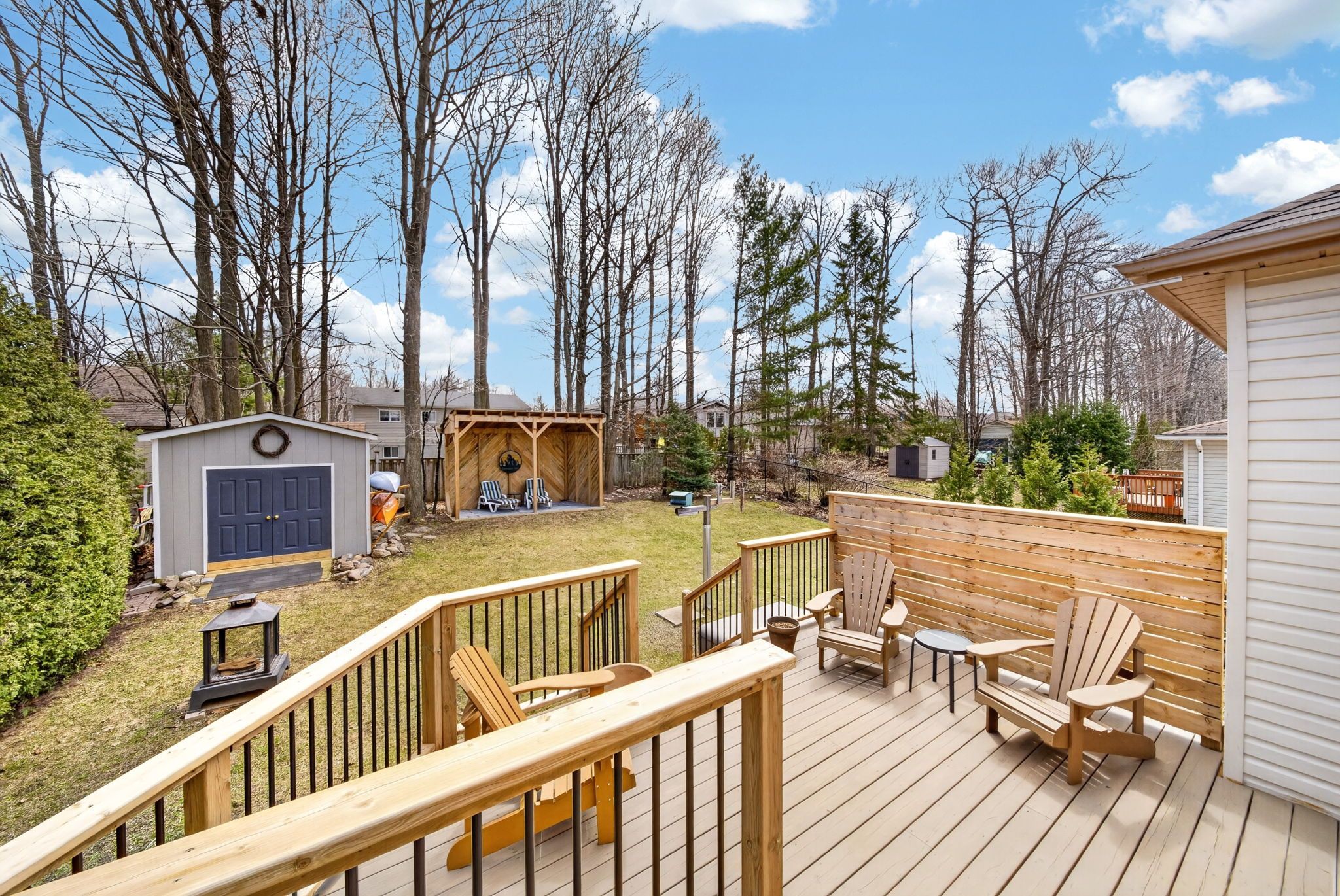 • Private backyard retreat featuring a pergola and spacious deck.