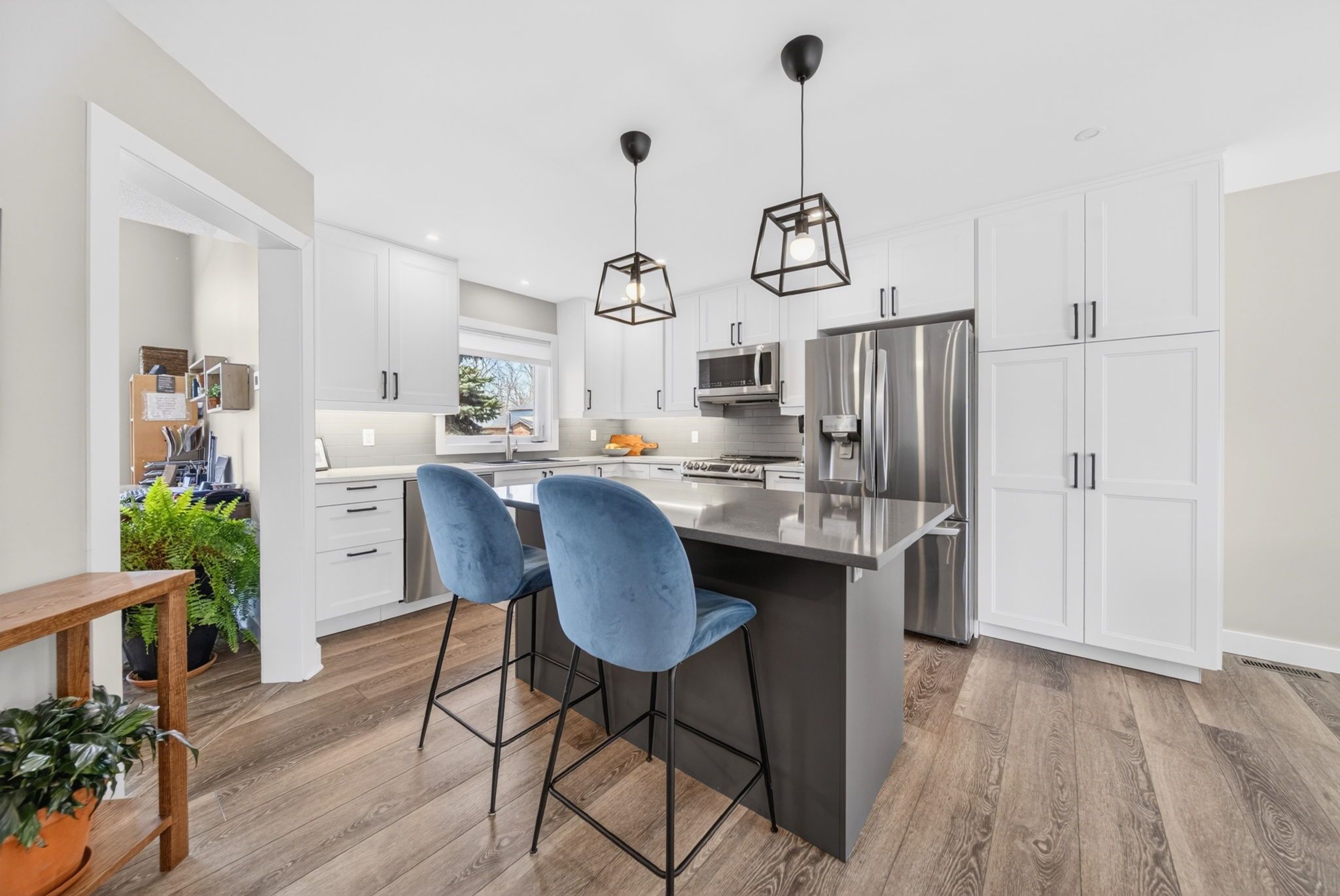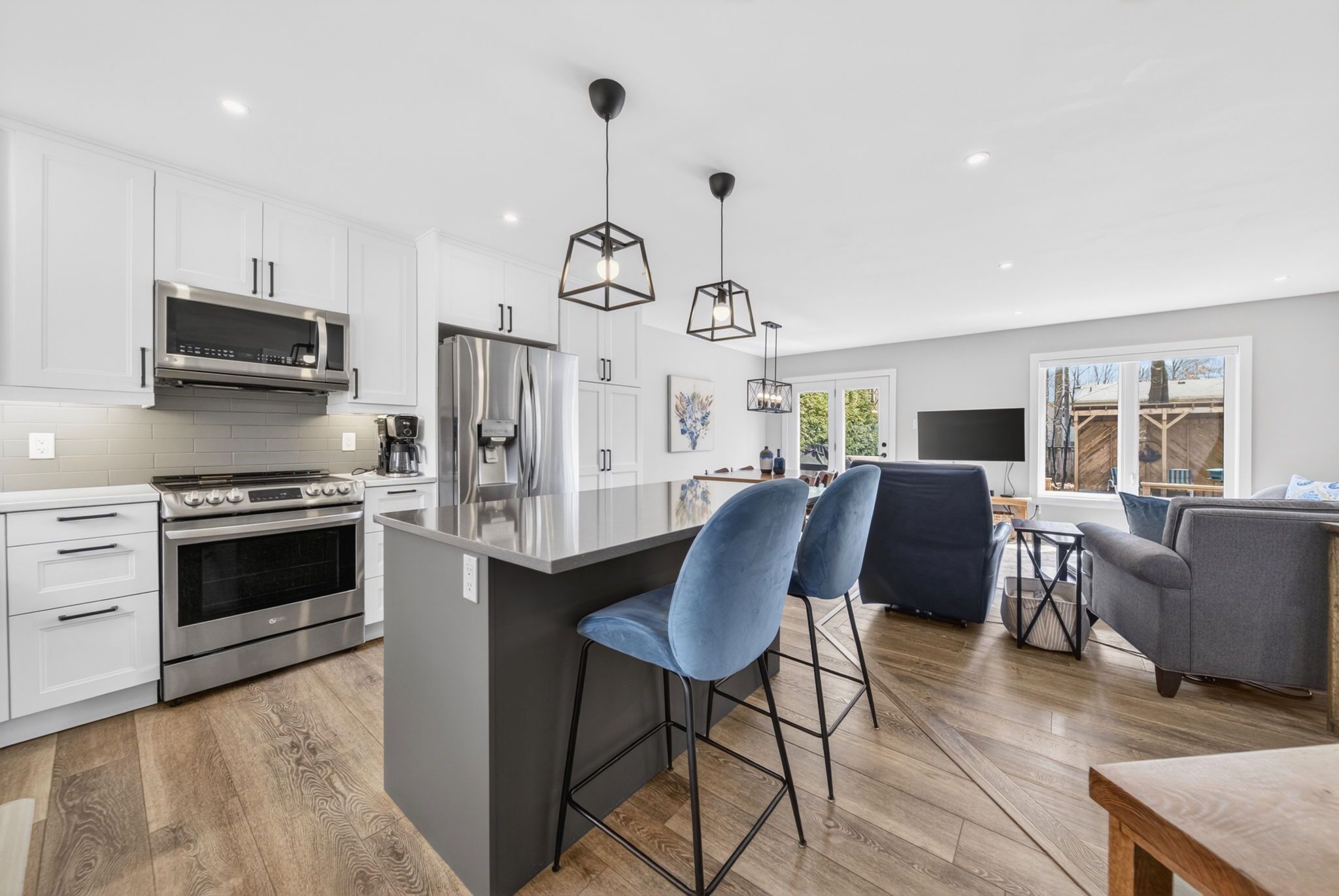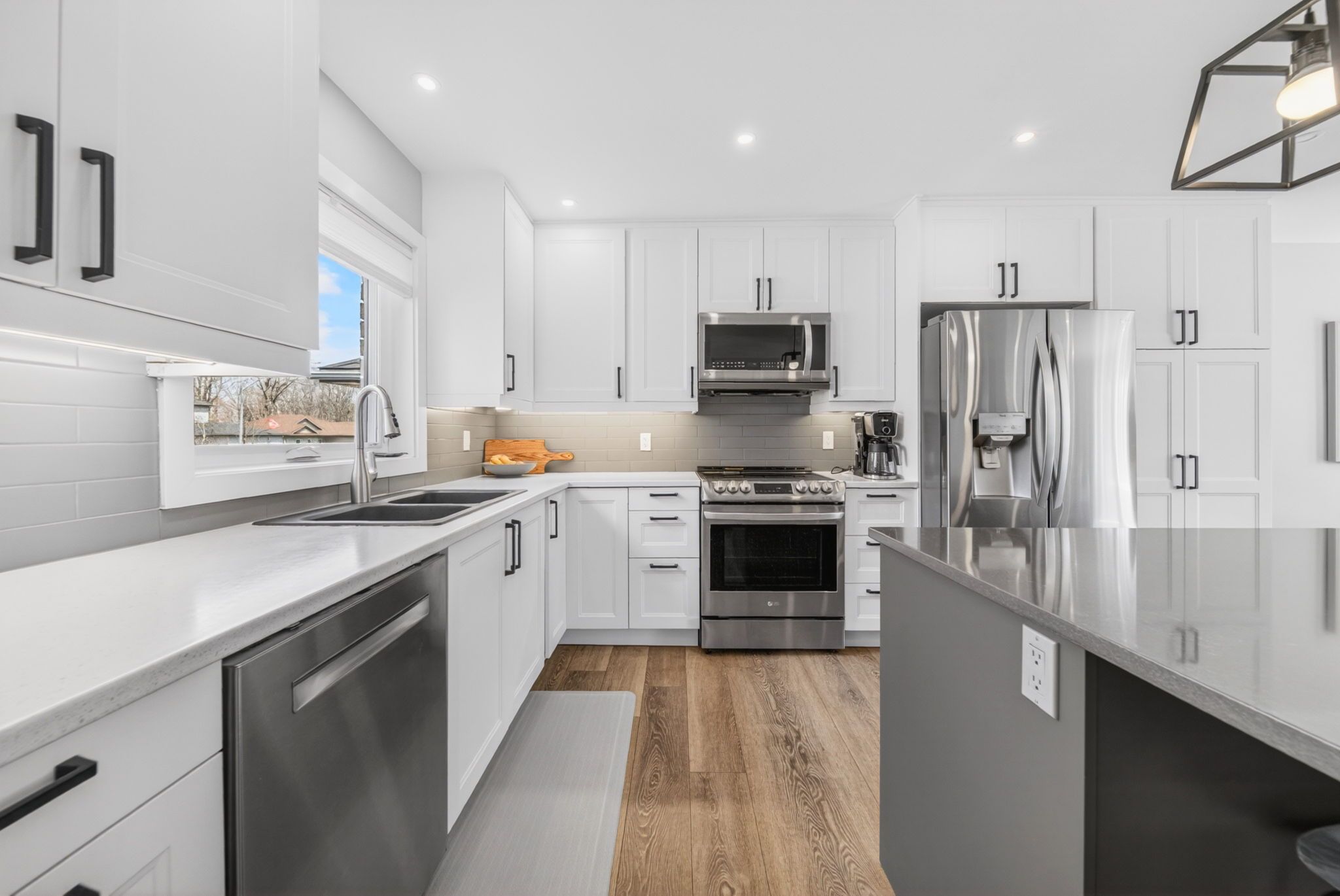 • Stunning kitchen with stainless steel appliances and modern renovations.