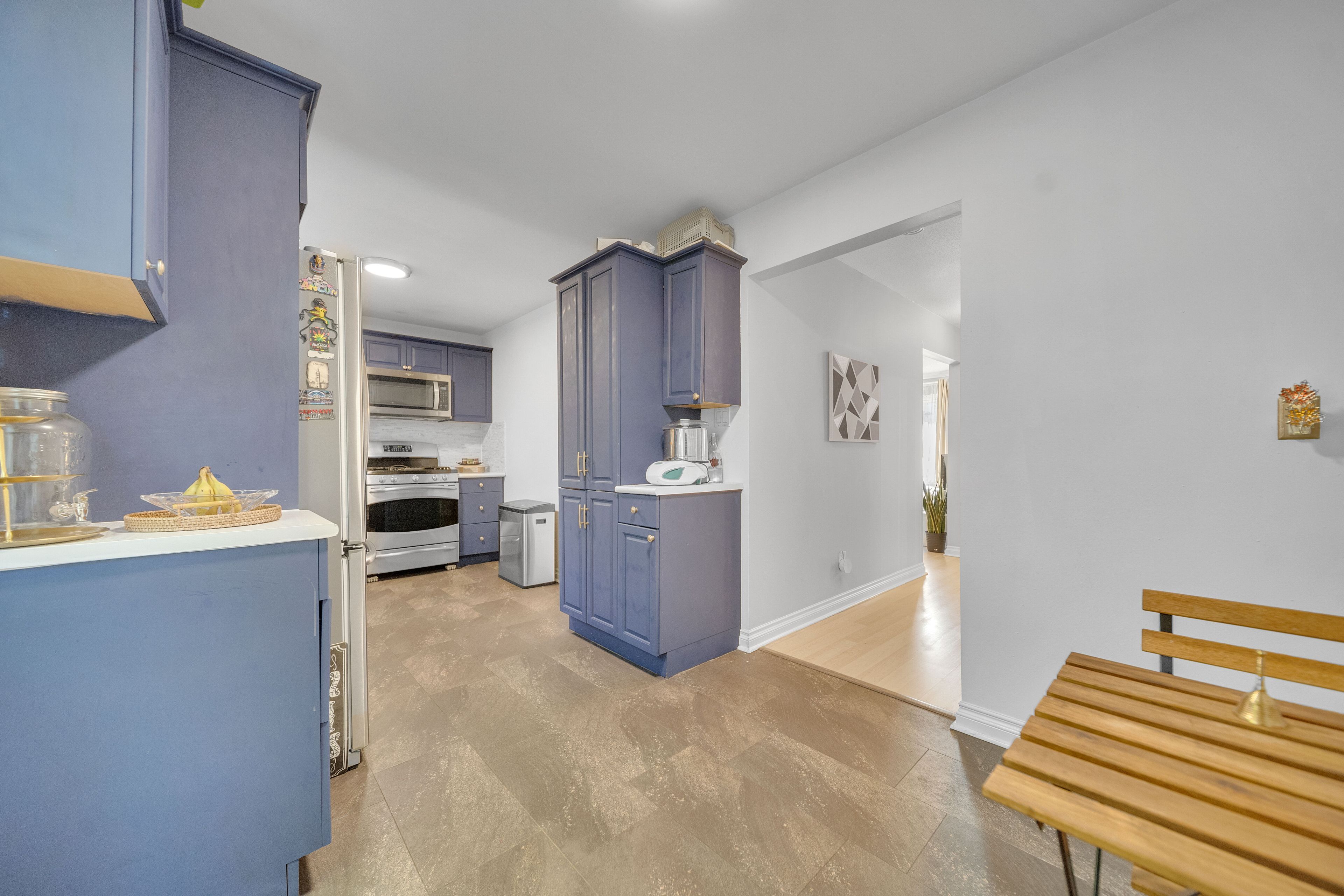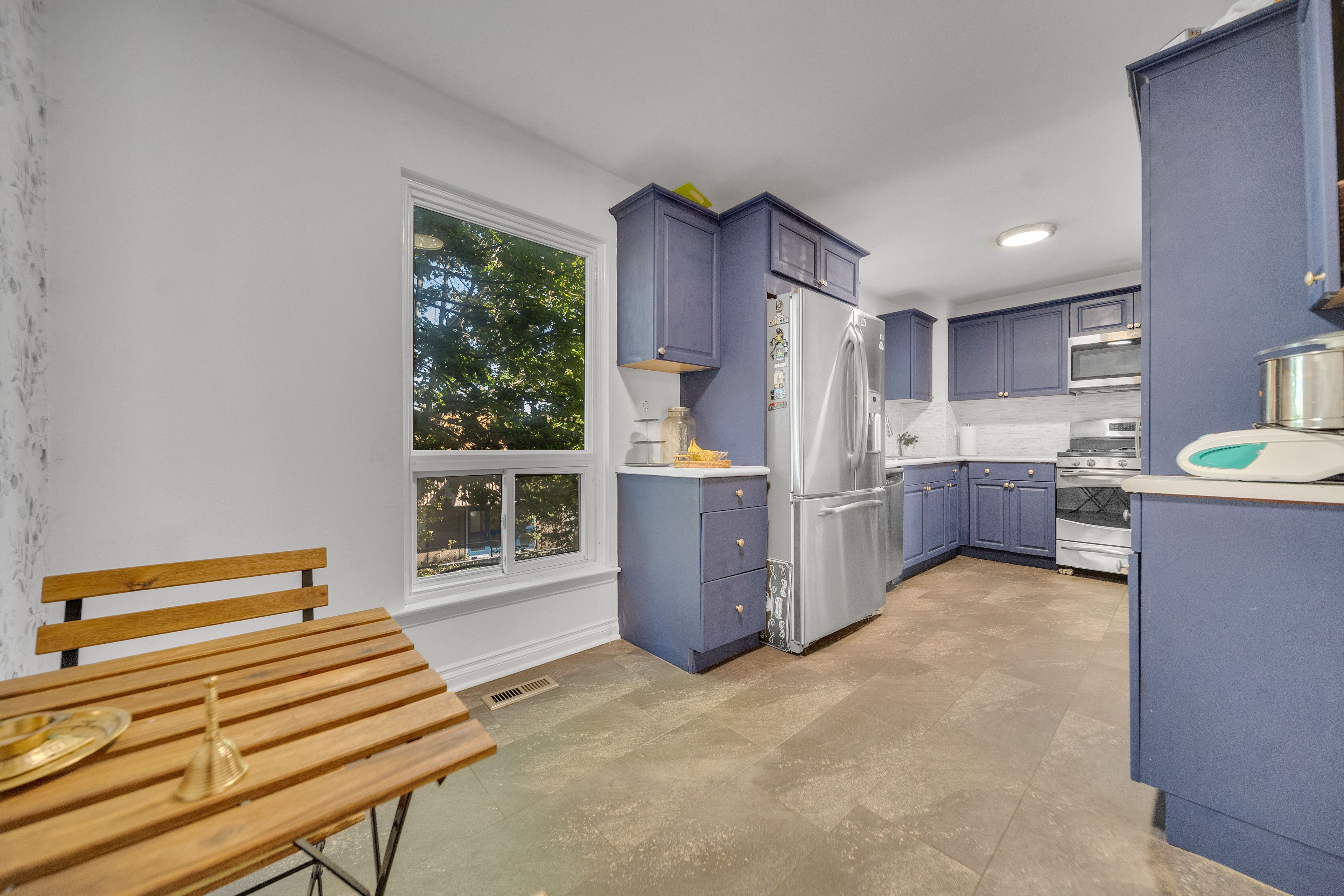 • Modern kitchen with stainless steel appliances for easy cooking.