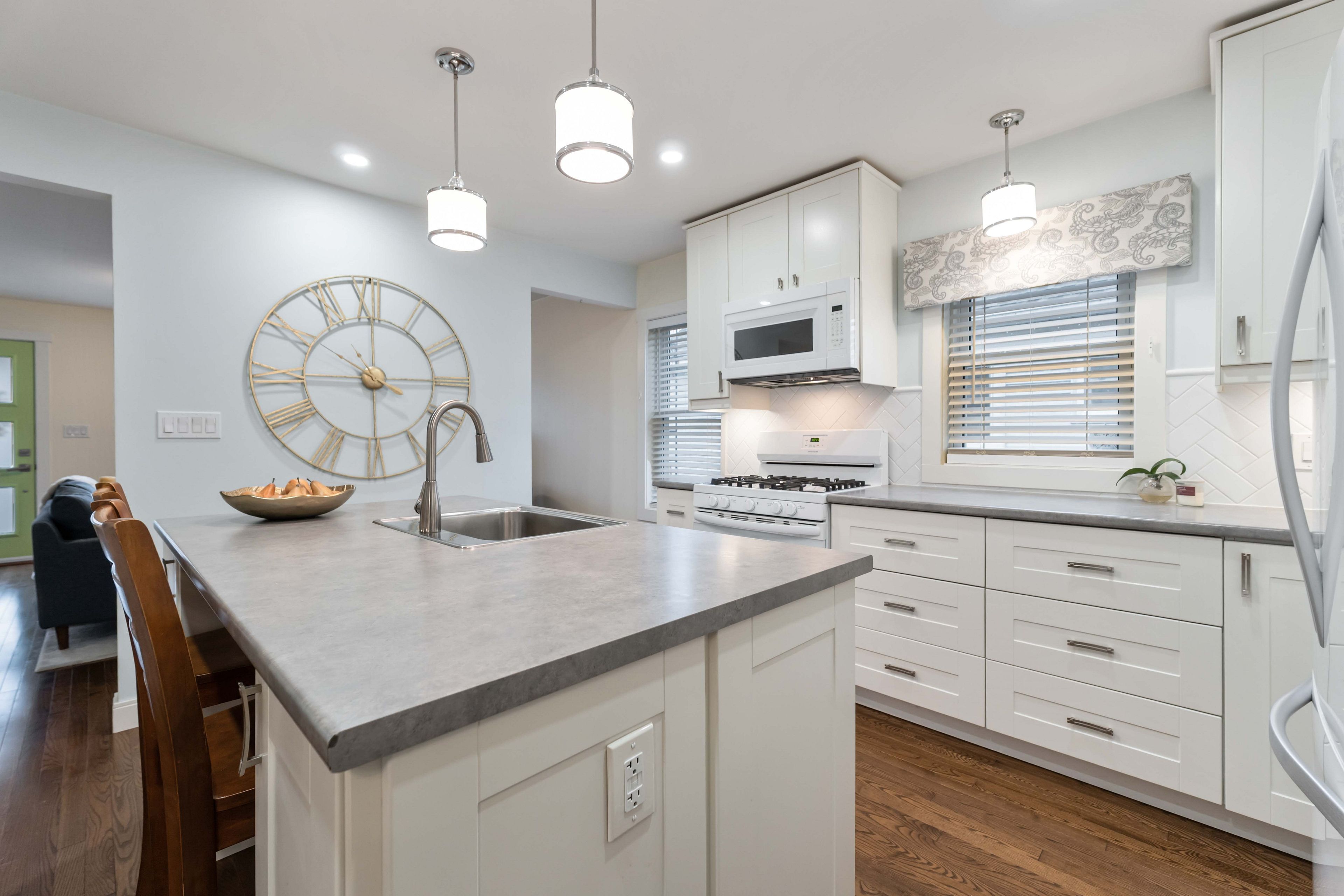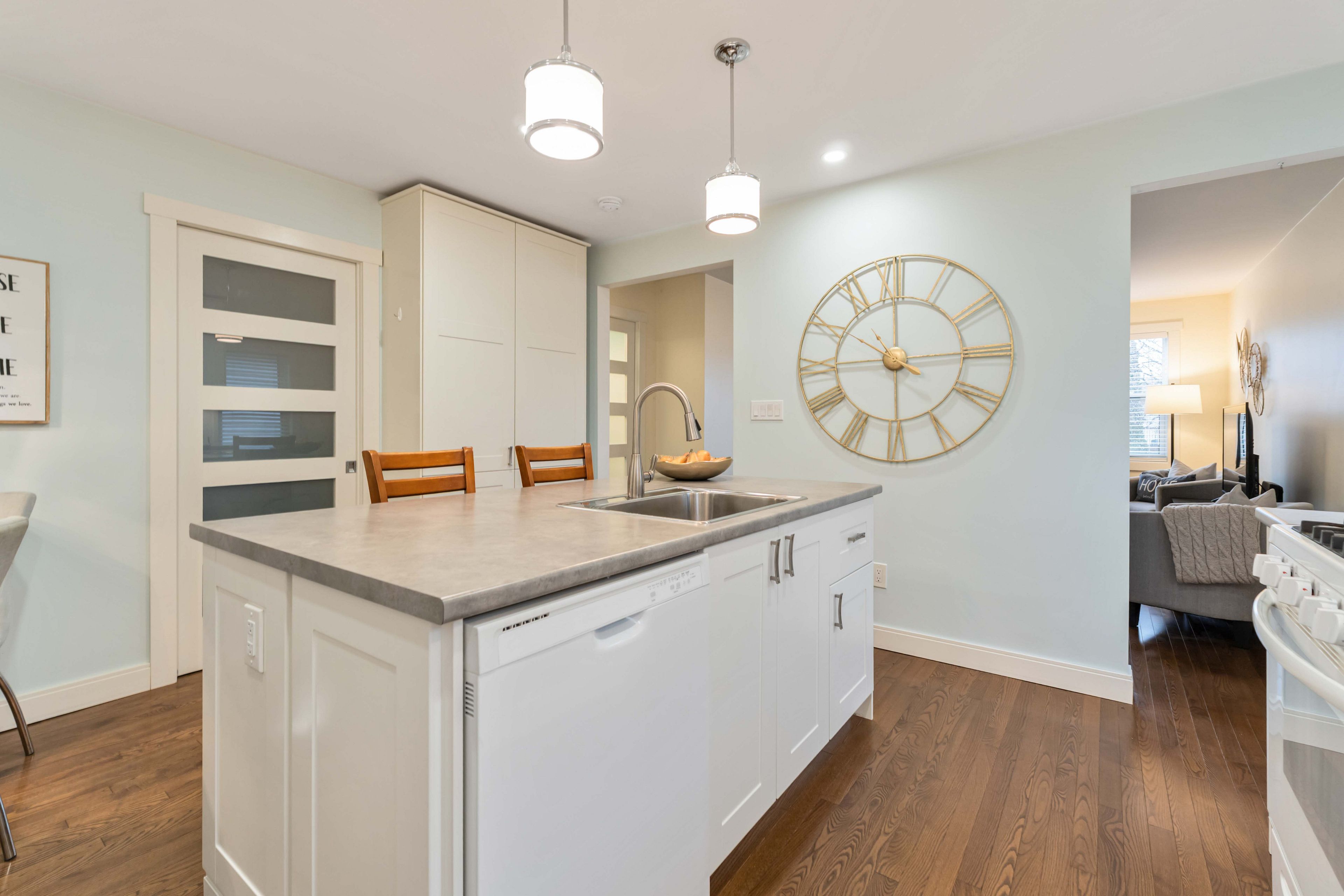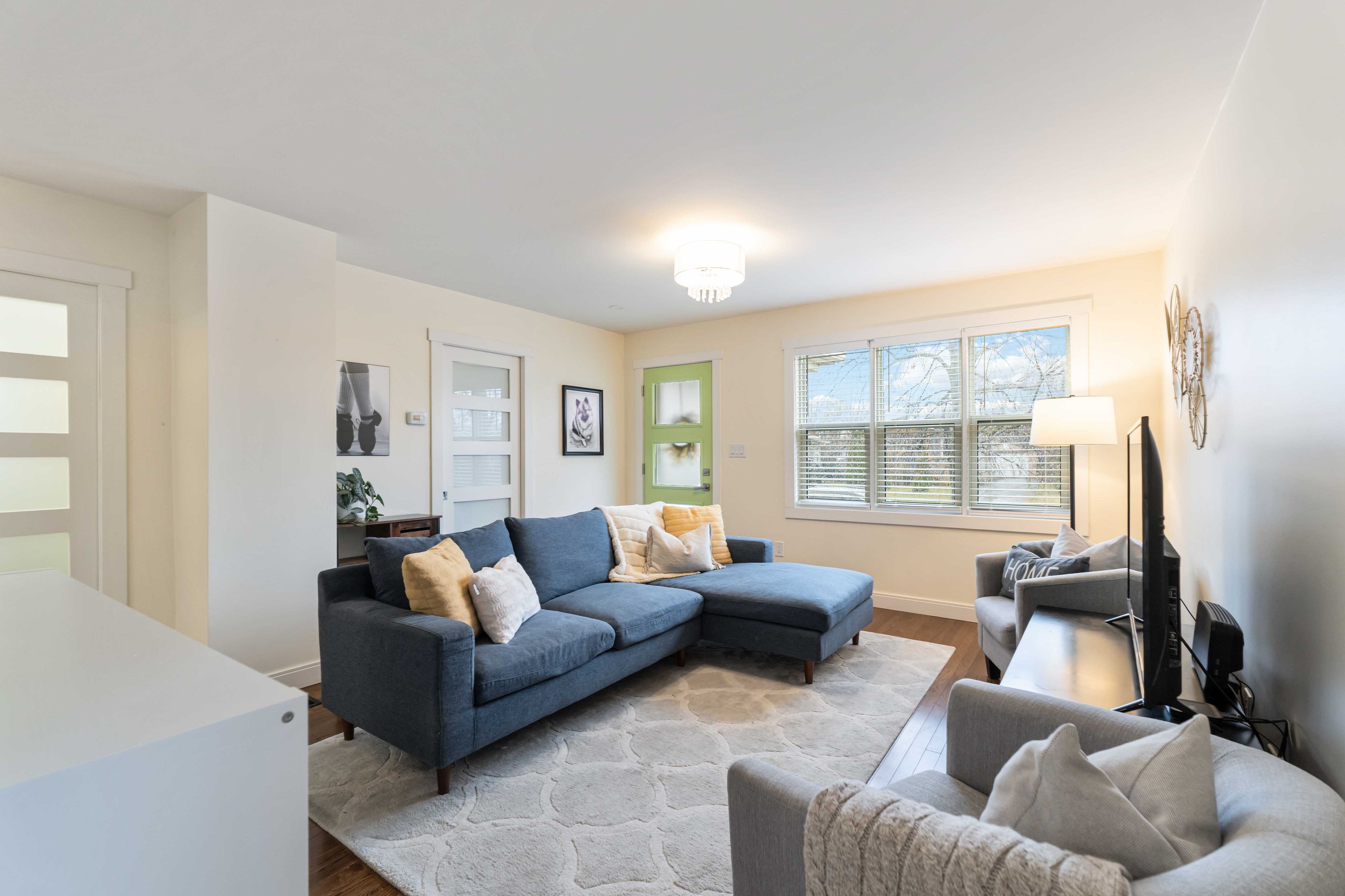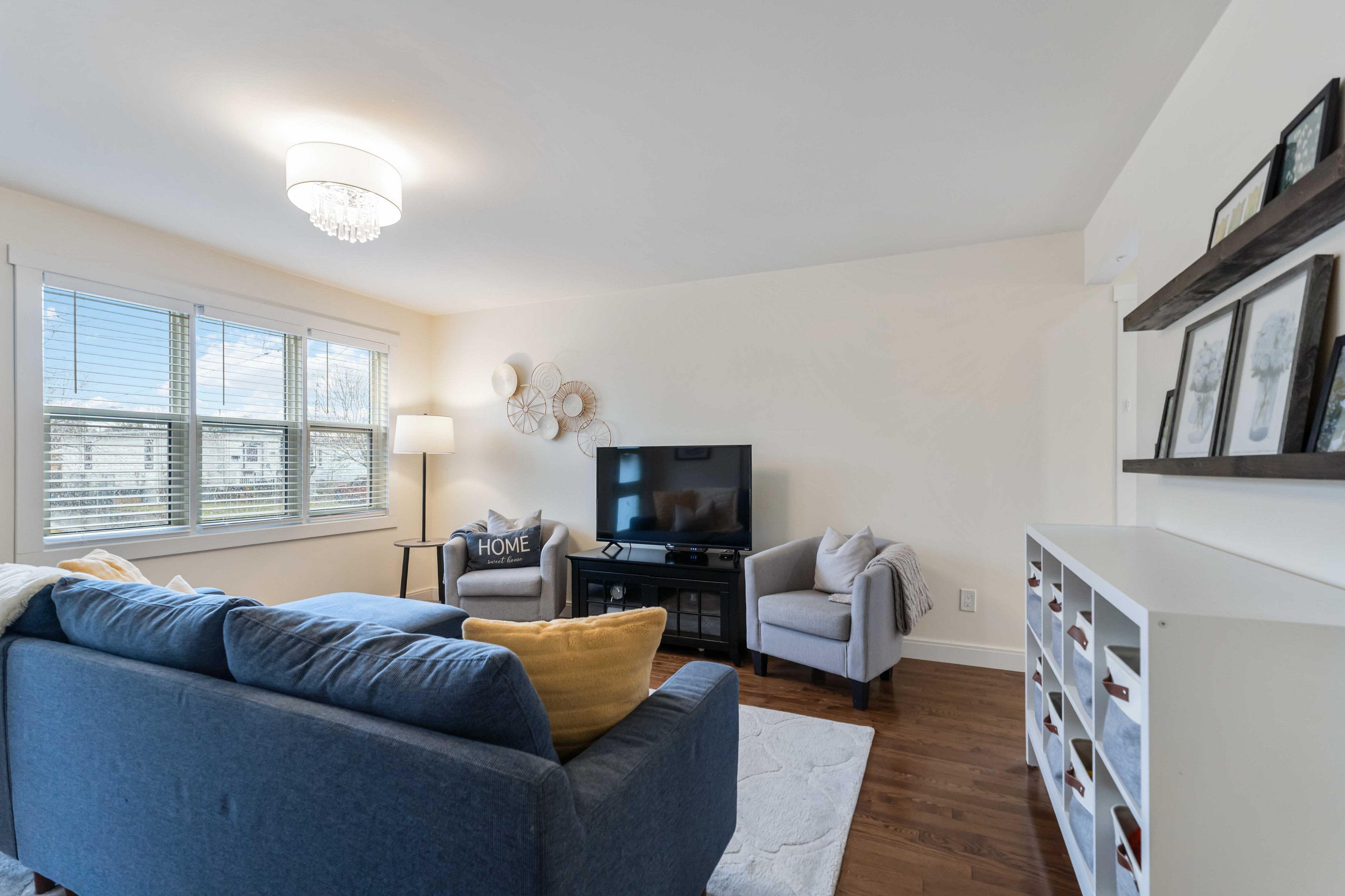 • Sun-filled main level features real hardwood flooring and inviting layout.
