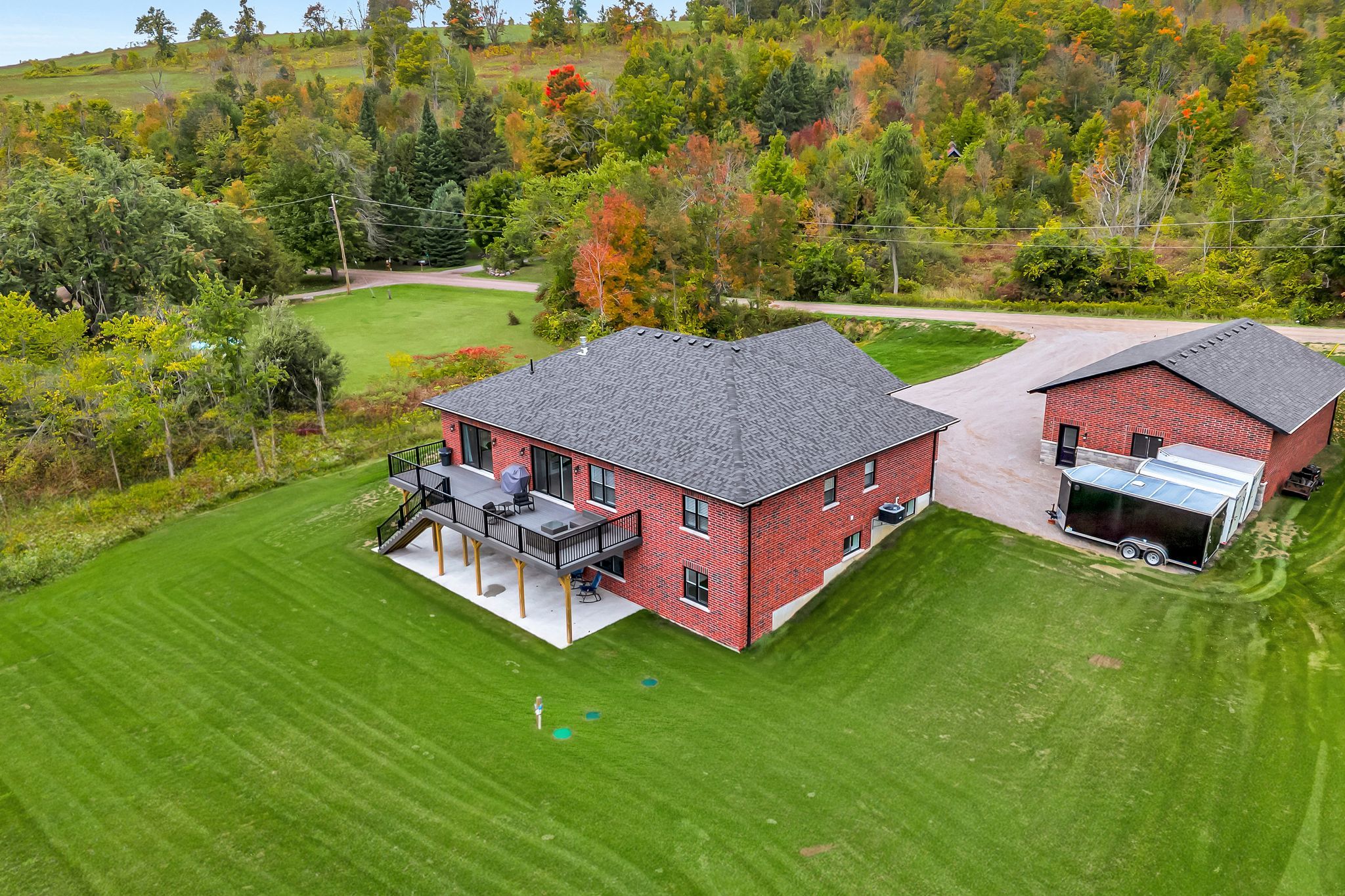 1. 56 acres | 3-car garage | 2024 build | in-law suite potential a 2024 build designed with attention to detail, featuring 9-foot ceilings on both the main floor and lower level. The living rooms grand fireplace, framed by custom floor-to-ceiling built-ins, sets the character of the home a feature that draws people in and creates an unforgettable atmosphere, leading outside to your extra-large 43' x 13' composite deck. In the kitchen, the 4' x 8' quartz waterfall island becomes the natural centre for gatherings and family life. With quartz extending beautifully to the floor on both sides and custom built-in storage underneath, this showpiece blends style and practicality. A double fridge-freezer, included appliances, and a layout designed with care reflect a commitment to both elegance and function. The primary suite feels like a spa retreat, complete with an oversized soaker tub, separate walk-in shower, double vanity, and walk-in closet. Three additional bedrooms, a second full bathroom, pantry and a spacious main-floor laundry with abundant storage complete the main level. The lower level is ready for your future vision, with a walk-out basement, in-law suite potential, rough-ins for another bathroom, and a poured concrete patio with reinforcement. Outdoors, the detached 30' x 40' three-car garage with 12-foot ceilings, a 45" rebar-reinforced pad, and its own 200-amp service complements the homes separate 200-amp service. A triple-wide driveway and nearly two acres of land expand the lifestyle this property offers. Additional features include an electronic humidifier on the furnace, all window coverings, tv above fireplace included. Five minutes to hastings for boating, fishing, and amenities, 15 minutes to campbellford hospital, and 35 minutes to the 401 a location that connects privacy with everyday convenience