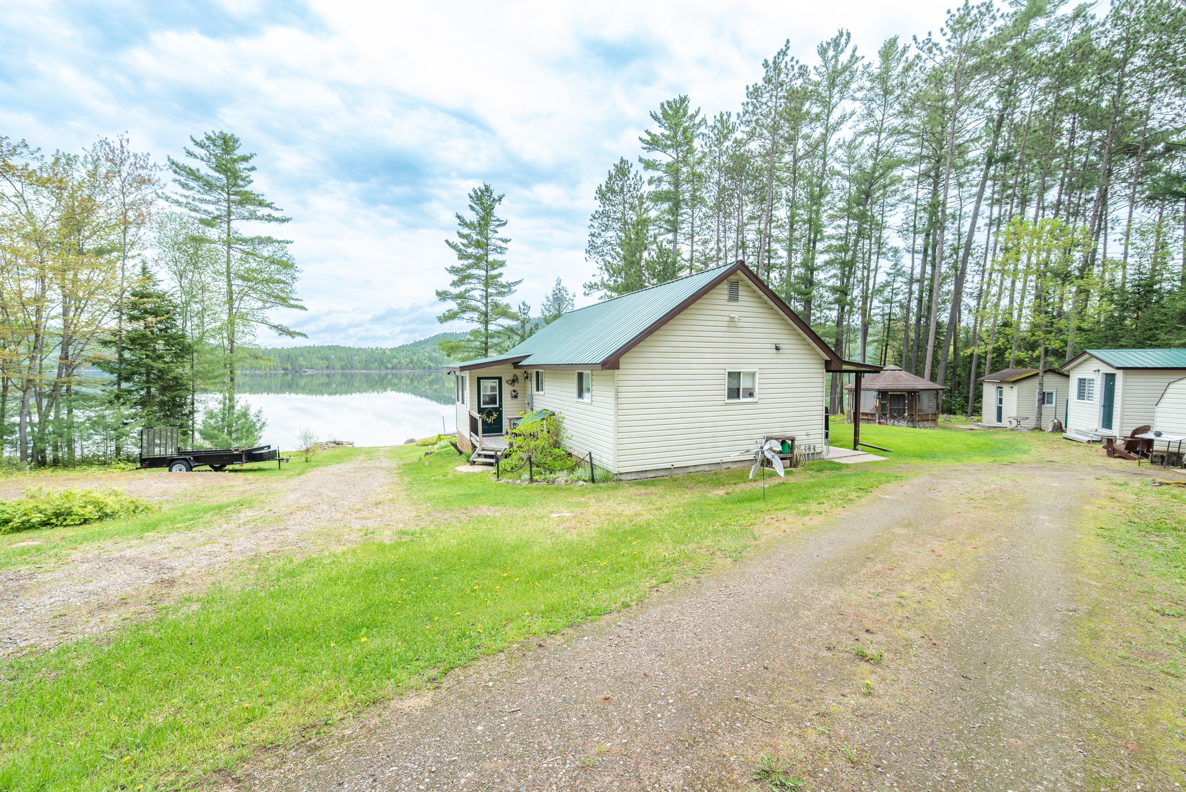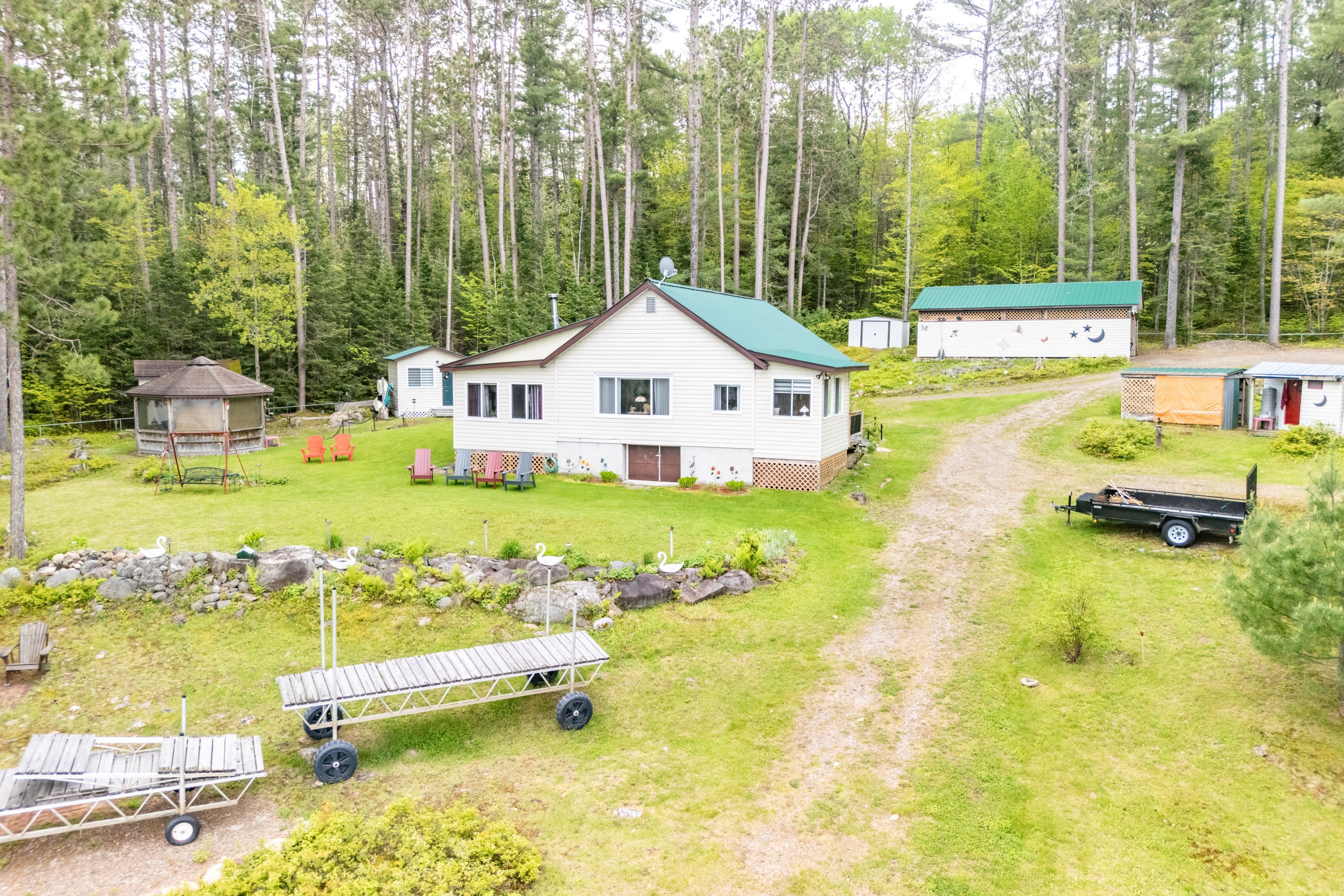 Charming waterfront bungalow on the ottawa river! Set on 198 feet of pristine riverfront, this beautifully maintained 2-bed, 1-bath bungalow offers the perfect blend of comfort and nature. Completely re-built in 1998, the home features an open-concept kitchen, living, and dining area, hardwood floors, and custom pine cabinetry. Enjoy modern conveniences with 2020 appliances, a metal roof (2013), and a new electric furnace and central air (2022). A bright family room addition (2000) with an enerzone wood stove (2017) provides a cozy space to relax year-round. Outside, the property includes two, well insulated sleeping bunkies, a gazebo to relax and enjoy the sunset, a heated workshop, a garden shed, an outhouse, and a double detached carport with a lean-to. Enjoy breathtaking sunsets from your private sandy shoreline, launch your boat from your private boat ramp, and take advantage of the 40 ft dock for endless waterfront adventures. Located just 5 minutes from the town of deep river, this is the perfect retreat for boating, fishing, and enjoying all that the ottawa river has to offer, as well as nearby access to atv and snowmobile trails. A rare opportunity for a turnkey waterfront getaway - don't miss out! All offers must include 24 hour irrevocable.