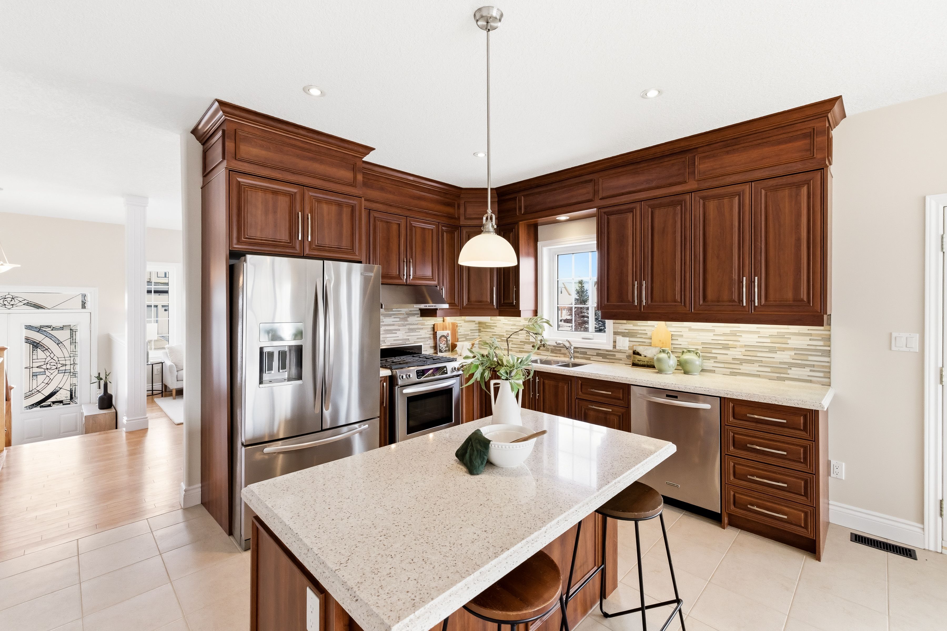 • Open concept main floor with hardwood floors and premium KitchenAid appliances.