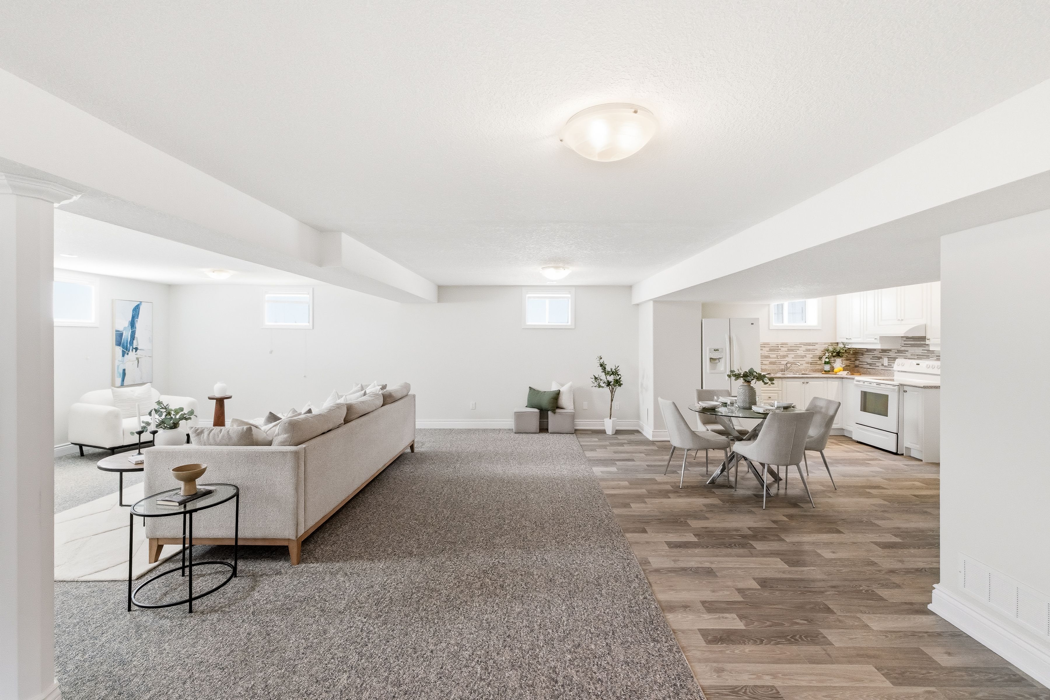 • Finished basement features a separate entrance and second kitchen for versatility.