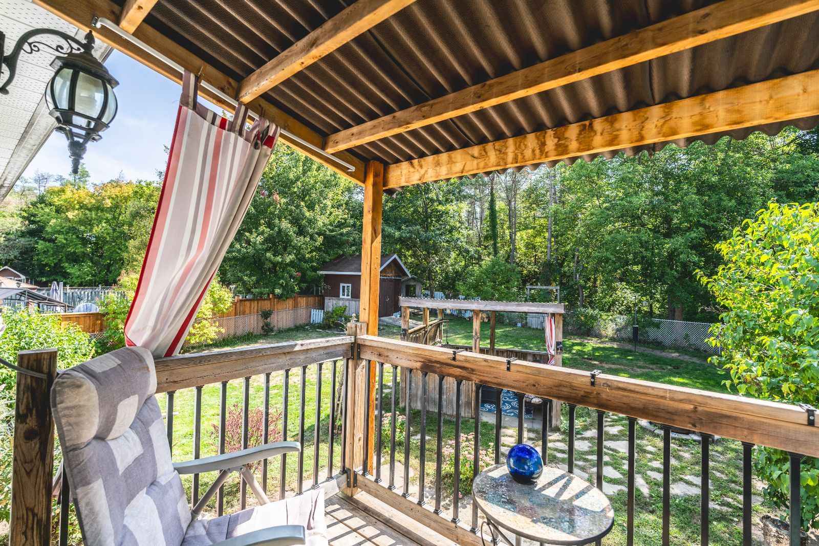 Spacious bungalow in the heart of angus with a private treed backdrop, bright open spaces, & a family-friendly layout designed for comfort! Tucked away on a quiet, family-friendly street, this charming brick bungalow promises peaceful living with lush forest views and the nottawasaga river flowing gently beyond the trees. Steps from local parks and scenic hiking trails, and just minutes to schools, the angus public library, a recreation centre, and the vibrant downtown core with shopping, dining, and daily essentials, this location has it all. The fully fenced backyard is a highlight, featuring a gazebo lounge area, a side deck, open green space, and a handy storage shed, creating the perfect outdoor retreat. An attached garage with interior entry and a wide driveway offer ample parking for residents and guests, while a durable metal roof provides lasting protection with minimal upkeep. Inside, the bright open concept living and dining area is filled with natural light from large windows, complemented by an eat-in kitchen with a sliding glass walkout to the deck for easy access to outdoor dining. The upper level offers three spacious bedrooms, including a private primary suite with a 3-piece ensuite and a covered balcony overlooking the forest, plus a generous 5-piece main bath. The lower level adds an additional bedroom, powder room, family room, and laundry facilities, while the basement extends the living space with a large rec room, extra storage, and a cold room. Don't miss the chance to make this private forest-backed bungalow yours, and experience the best of comfort, privacy, and convenience in a #hometostay that truly feels like a retreat!