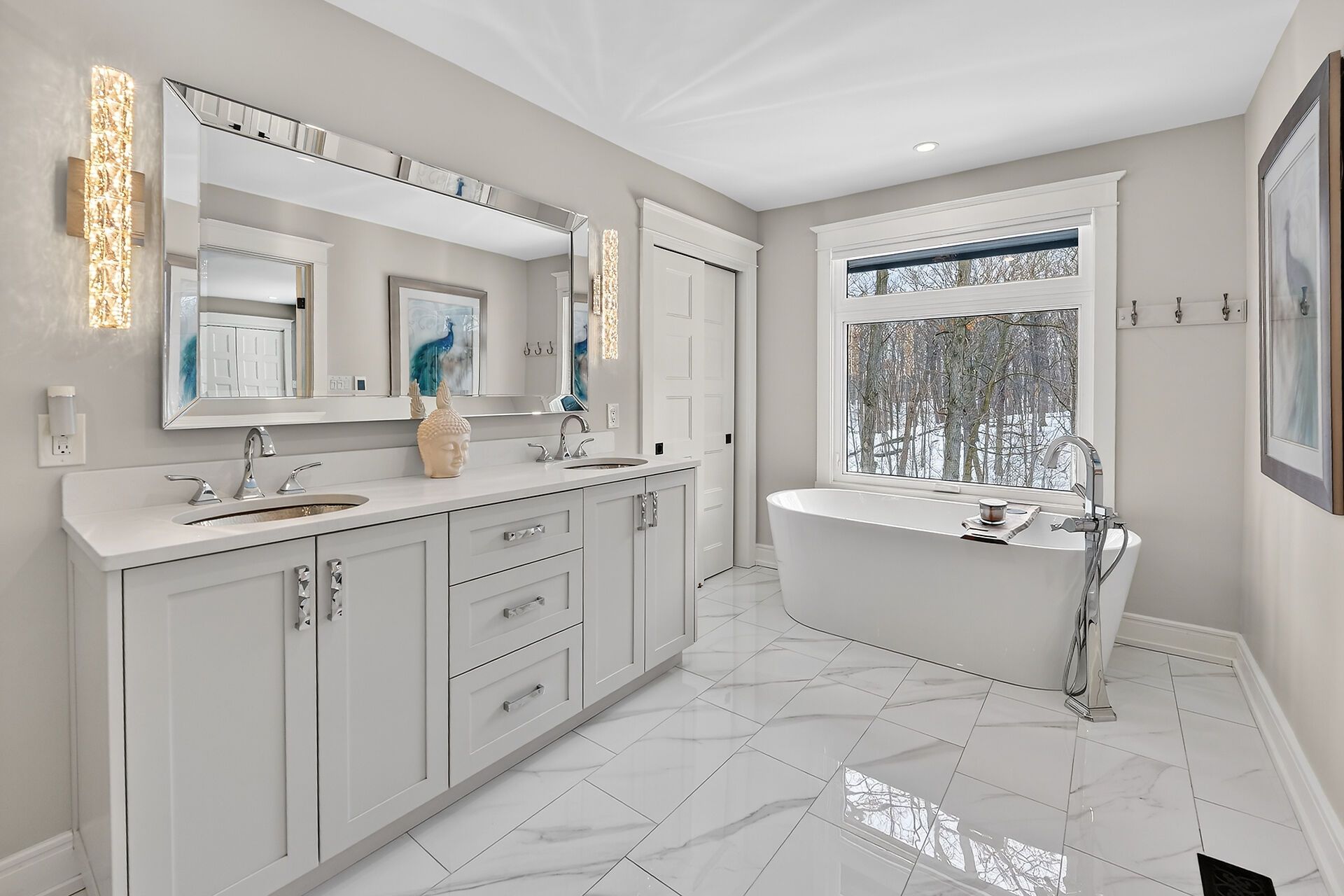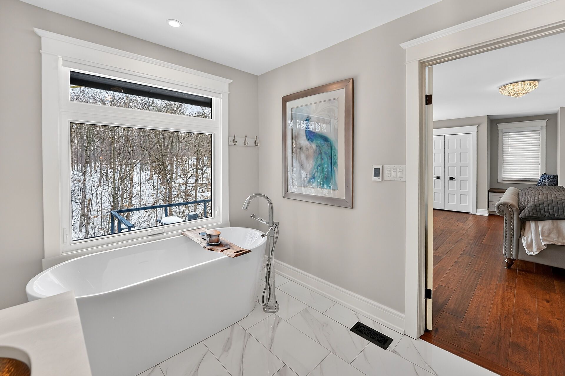 • Chef-inspired kitchen with heated floors and high-end appliances.