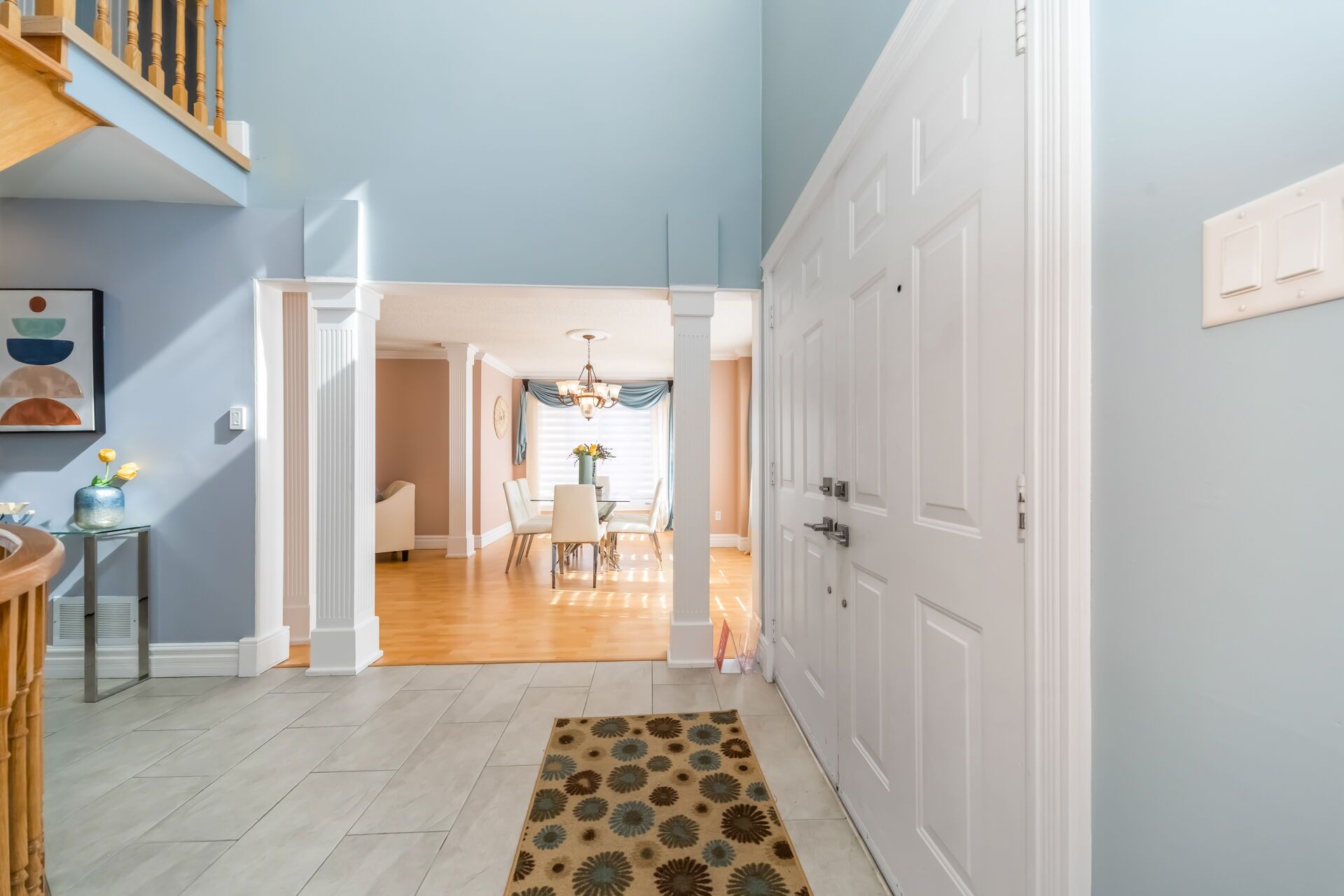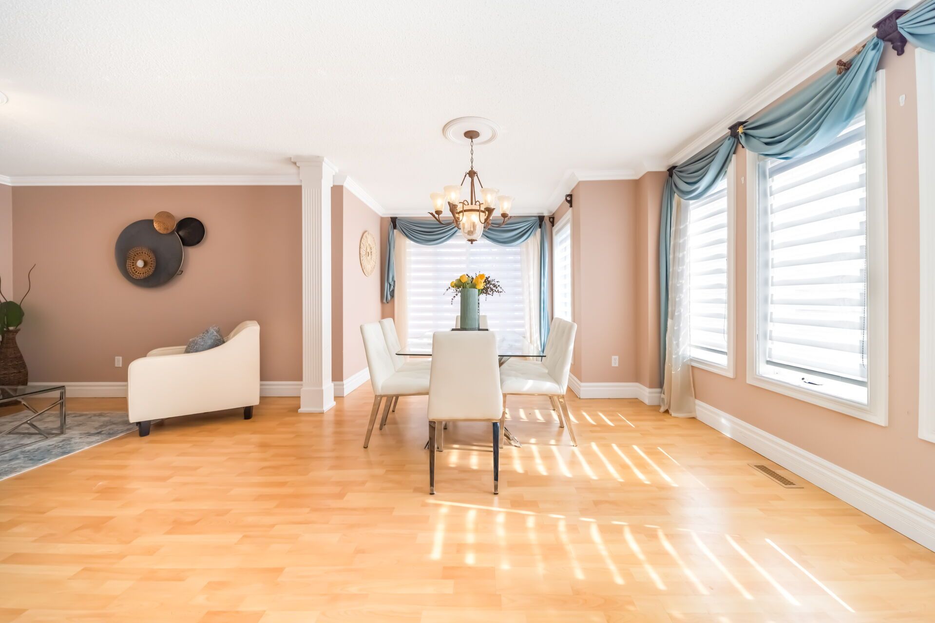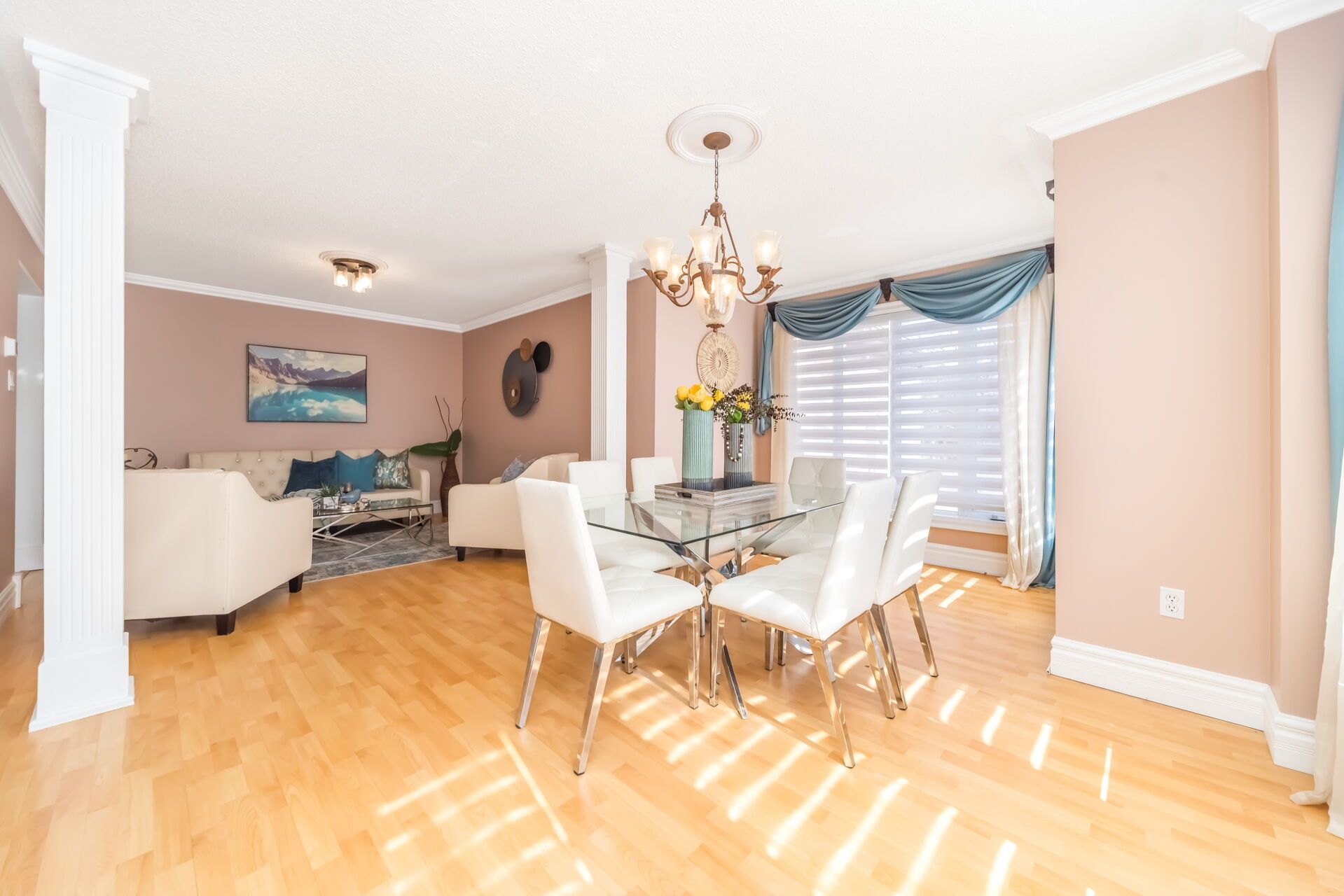 Exquisite detached corner-lot residence with 2398 sq. Ft, offering 5+2 bedrooms and 4 beautifully appointed bathrooms in one of the area's most coveted neighborhoods. With its desirable east-to-west exposure, the home is bathed in natural light from sunrise to sunset, creating an atmosphere of warmth and sophistication. The main floor welcomes you with an impressive sense of space, where each room flows effortlessly into the next-an ideal setting for elegant entertaining and relaxed everyday living. Upstairs, the generously sized bedrooms provide serene, private retreats designed for comfort and tranquility. The finished lower level, complete with two additional bedrooms and a full bathroom, offers exceptional versatility for guests, extended family, or luxurious multi-generational living. A striking stamped concrete driveway enhances the home's grand curb appeal, while thoughtful upgrades-including a newer furnace, roof, a beautifully updated kitchen and bathrooms, and expanded cabinetry-ensure modern convenience and timeless style. Meticulously maintained by its original owners, this residence exudes pride of ownership at every turn. Perfectly positioned in a premier location, the home offers effortless access to scenic walking paths, top-rated schools, charming parks, and major commuter routes including highways, go stations, and public transit.