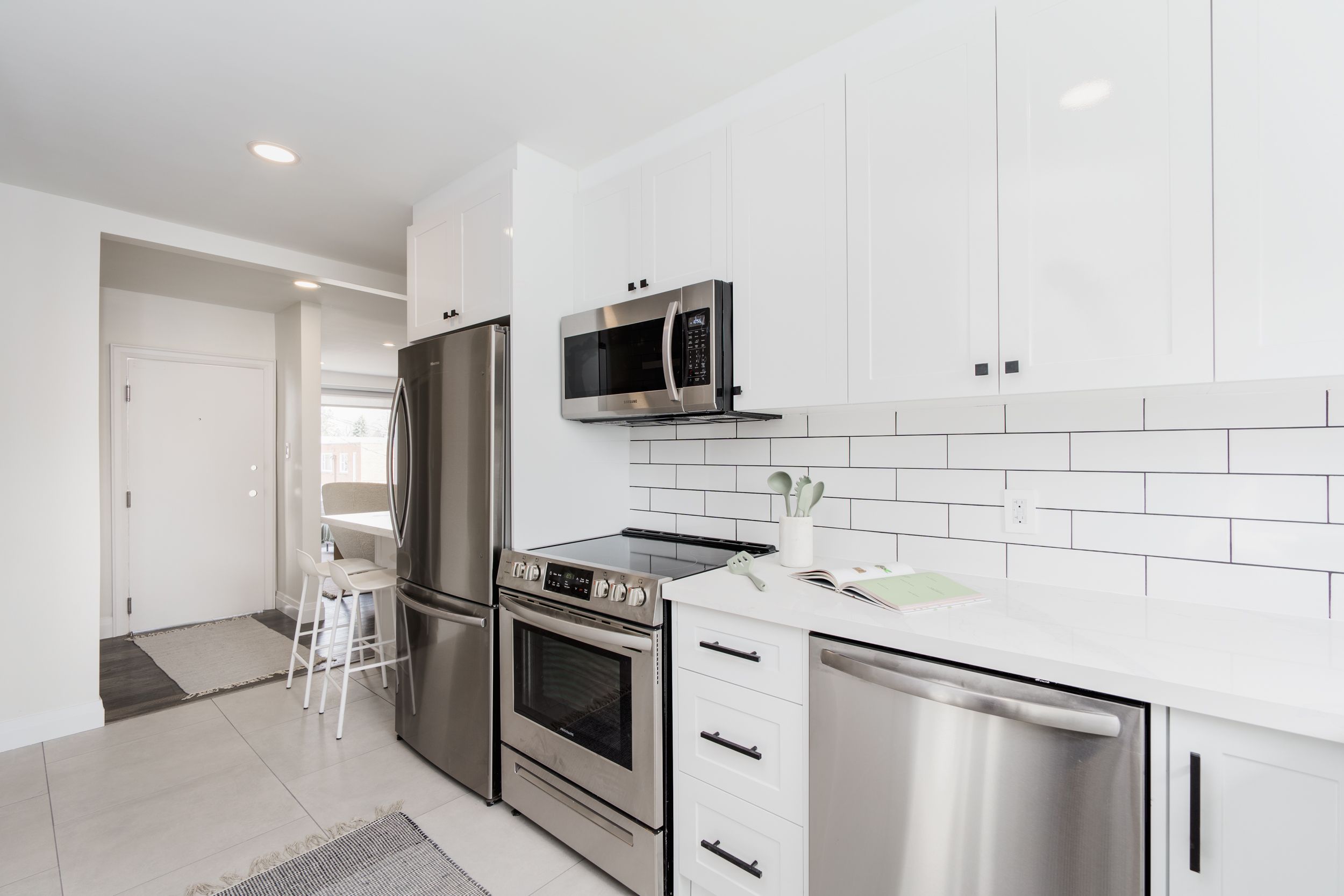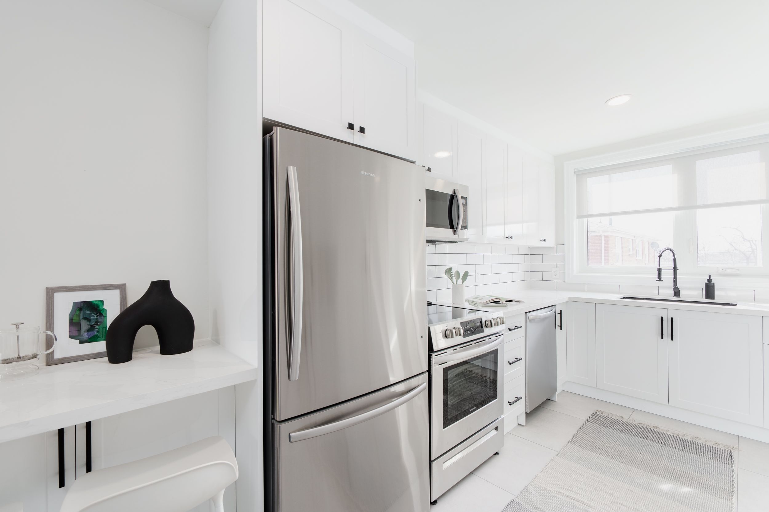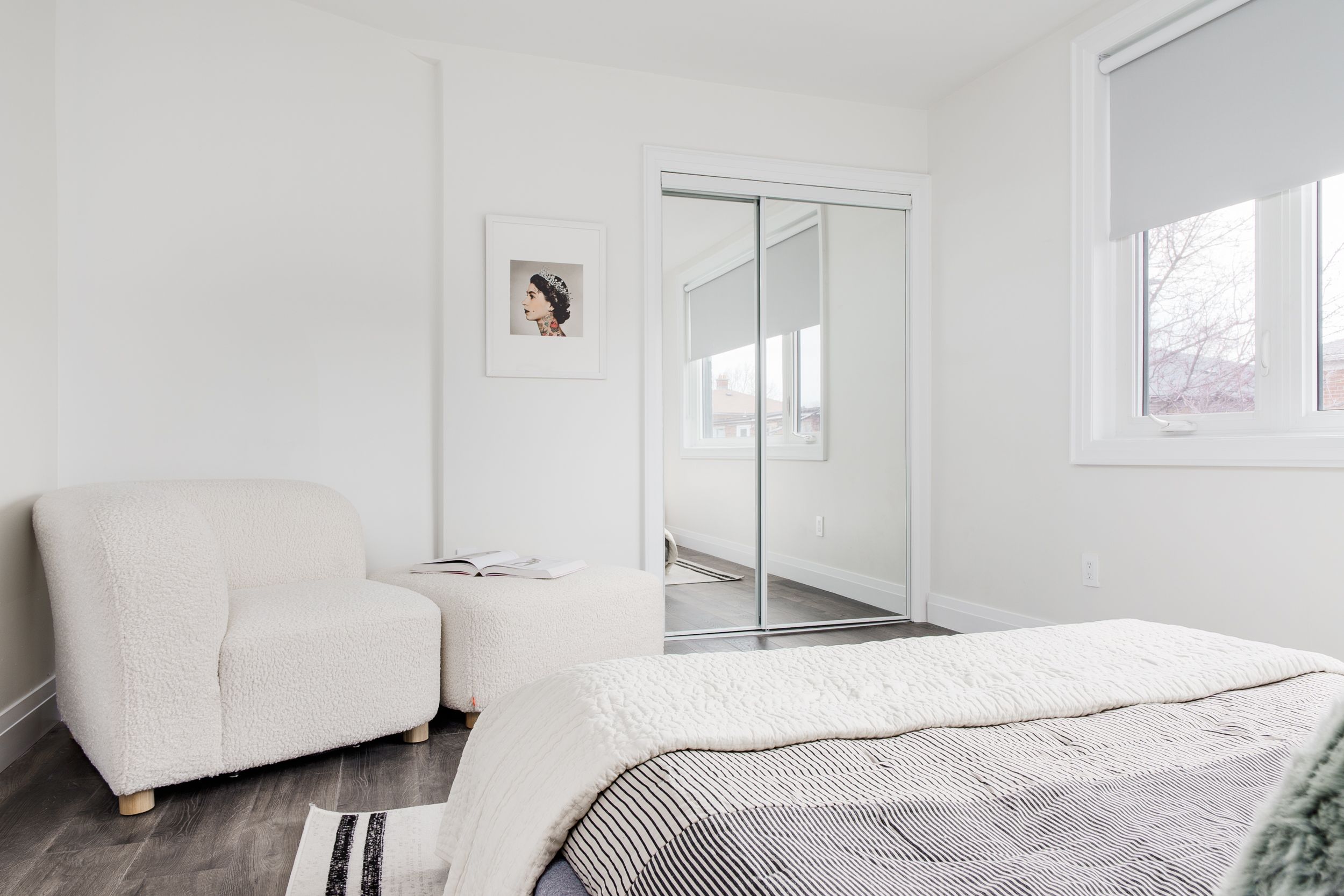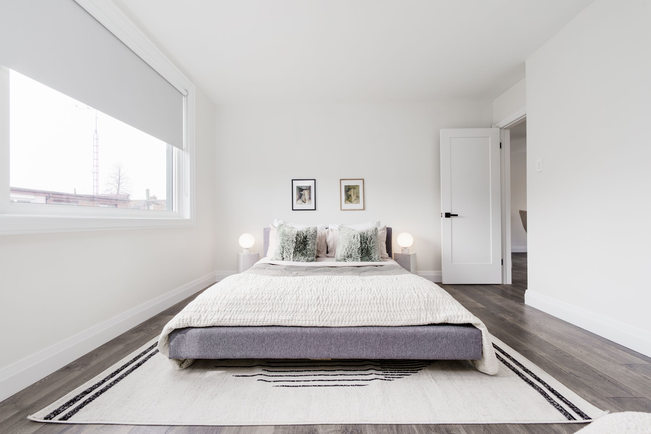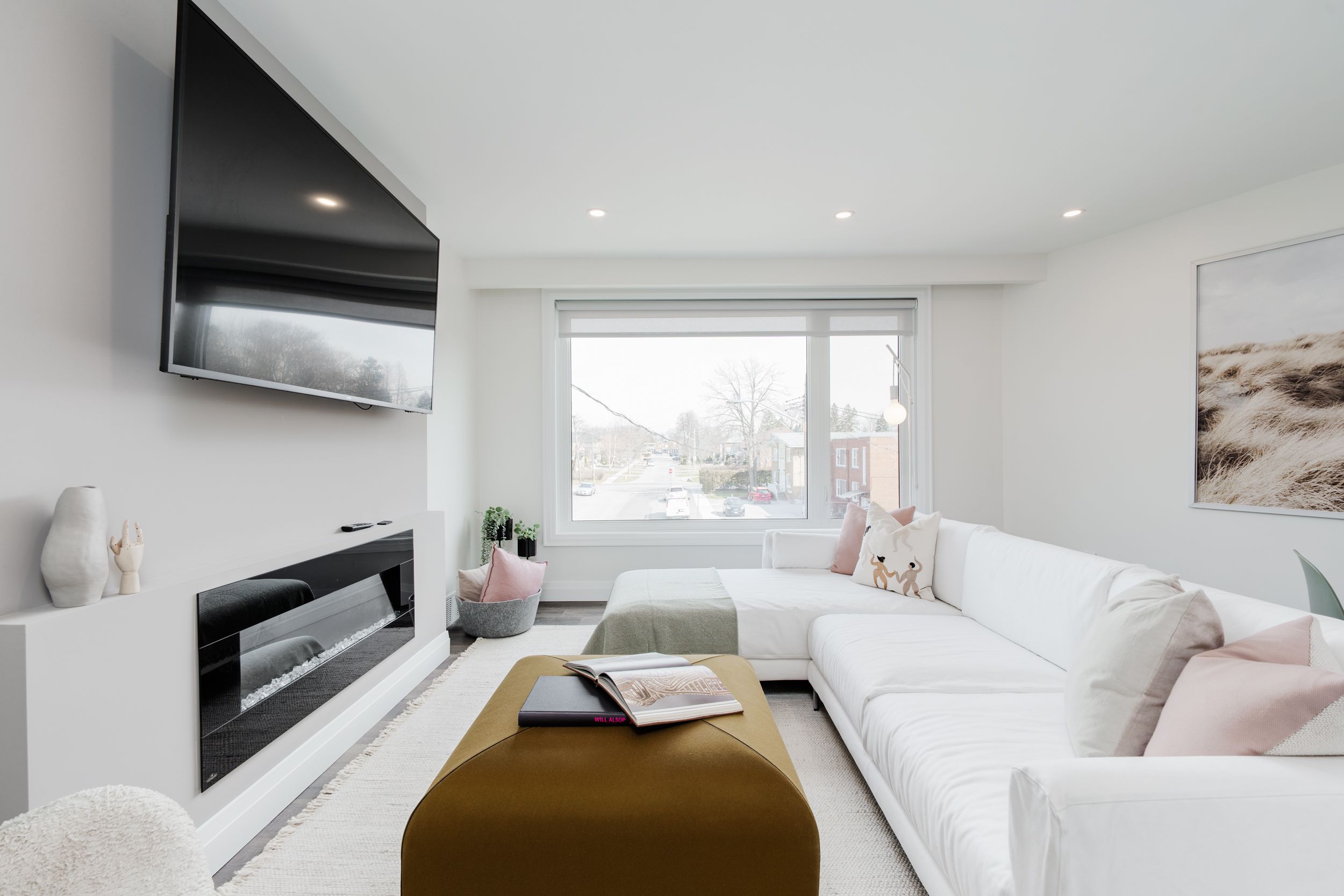 Bright and open concept unit with plenty of natural light! Completely renovated from top to bottom with incredible finishes. Large 900 sq. Ft layout with built-in living room fireplace and65" wall-mounted tv included. Huge chef's kitchen with new cabinets with quartz countertops and tiled backsplash, along with coffee bar and pantry, new appliances, and lots of storage space. New laminate flooring, paint, windows throughout, a new bathroom, and large bedrooms. Exclusive use of a large deck in the backyard, perfect for your outdoor furniture and bbq. Includes one parking space. Steps to ttc, go train and the gardiner!