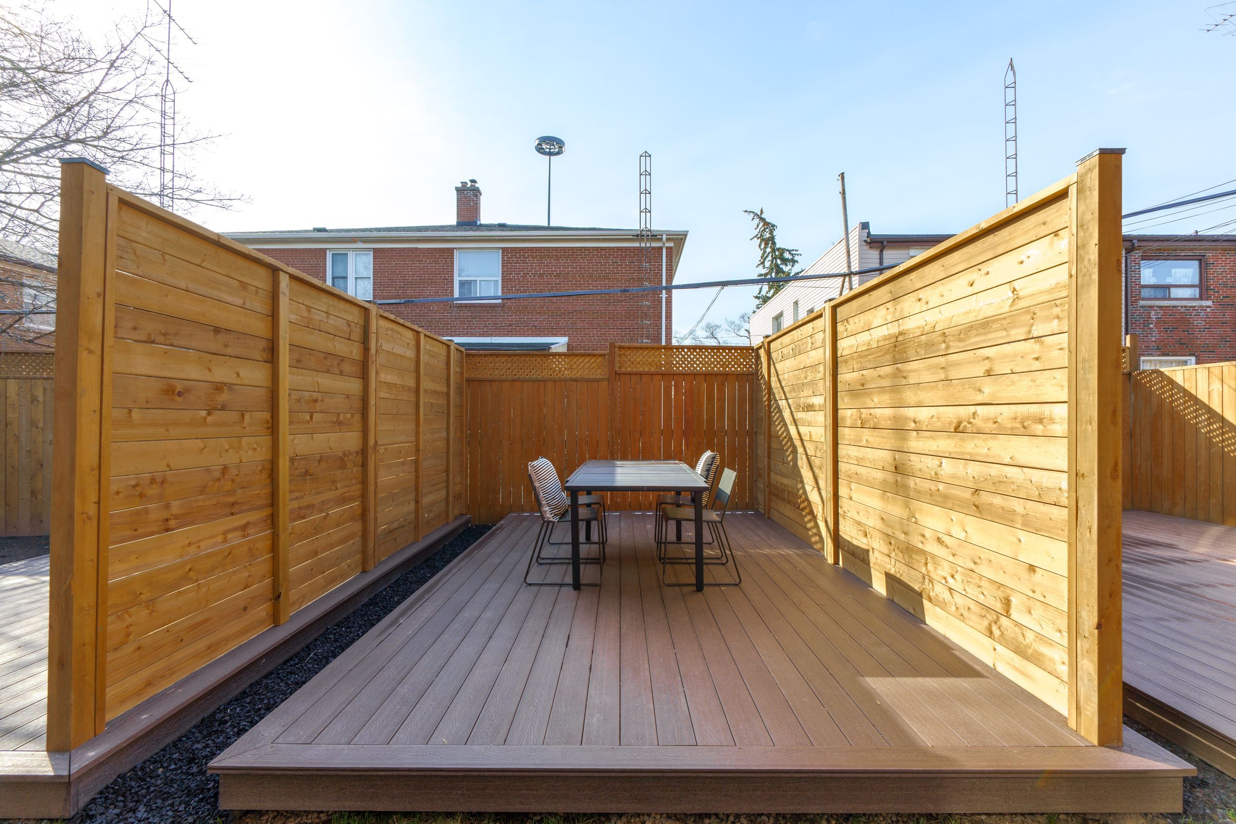 • Exclusive large deck in the backyard, great for outdoor gatherings.