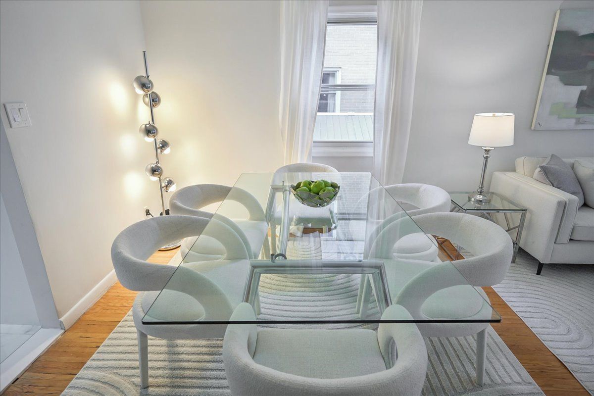 Bask in nature! This pretty renovated mid-century semi is surrounded with a beautiful leafy garden, perfect outdoor entertaining space with room for your family to grow. Enjoy the brand new kitchen that walks out to the garden. The interior has an airy open concept living room and dining room with a huge wall to wall west window. The entire interior was completely repainted with neutral tones. The upper floor features three bedrooms with hardwood flooring and a sleek new white and gray four piece washroom. Also new front porch and railing and other recent new air conditioning and a new roof. The lower level music room has above ground window, a new 2024 washroom on the lower level and a home gym. The kitchen walks out to covered porch. Enjoy bbqing, and the treed private garden. New fencing provides privacy. Mature gardens in front and backyard are filled with perennials. Low maintenance front yard is a perfect nature habitat. Large shed on private driveway and attached garden shed next to porch. Immaculate interior waiting for the next lucky family. Great neighbours and friendly community. Close to shopping, loblaws, summerhill gardens and local restaurants.