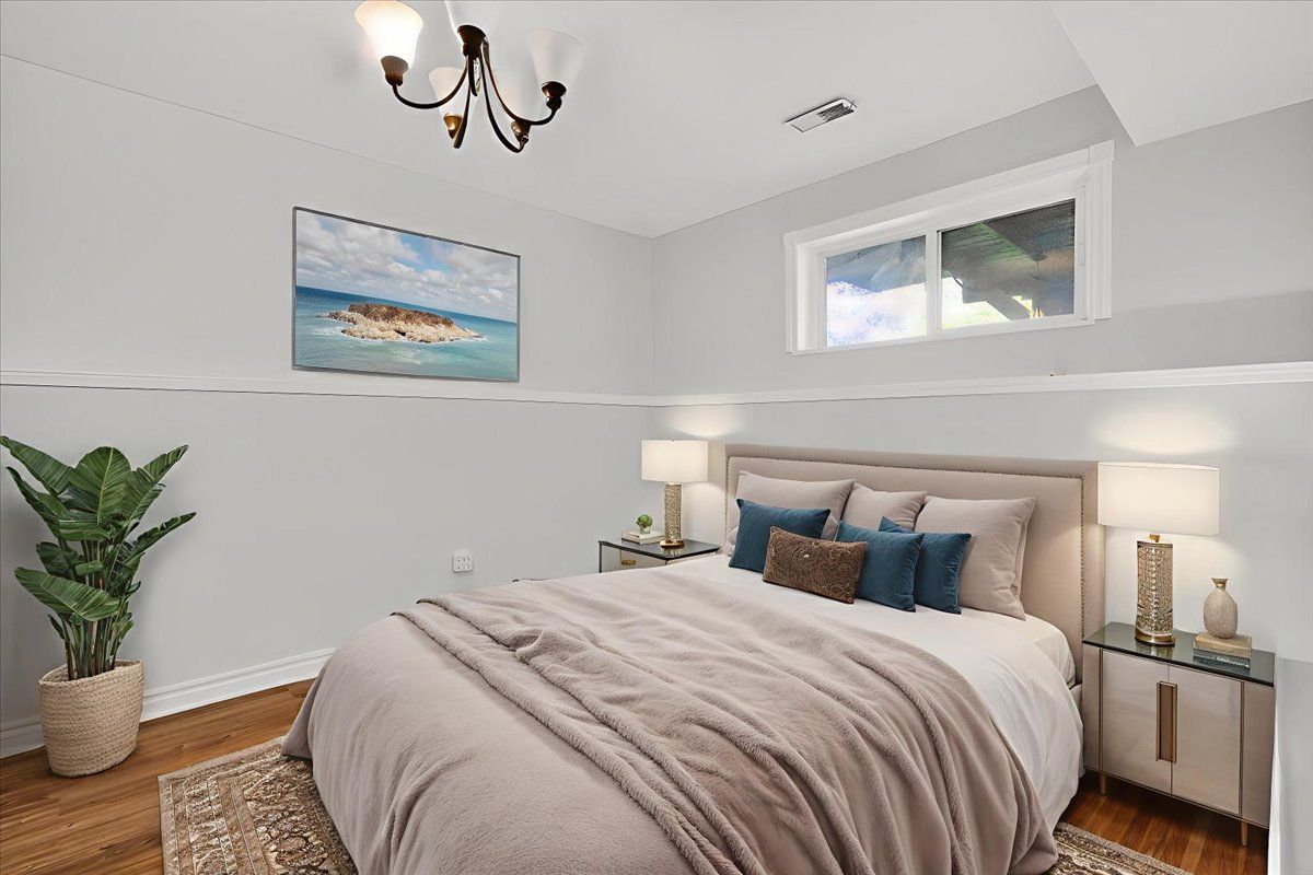 • Finished basement with two bedrooms, rec room, and a second kitchen.