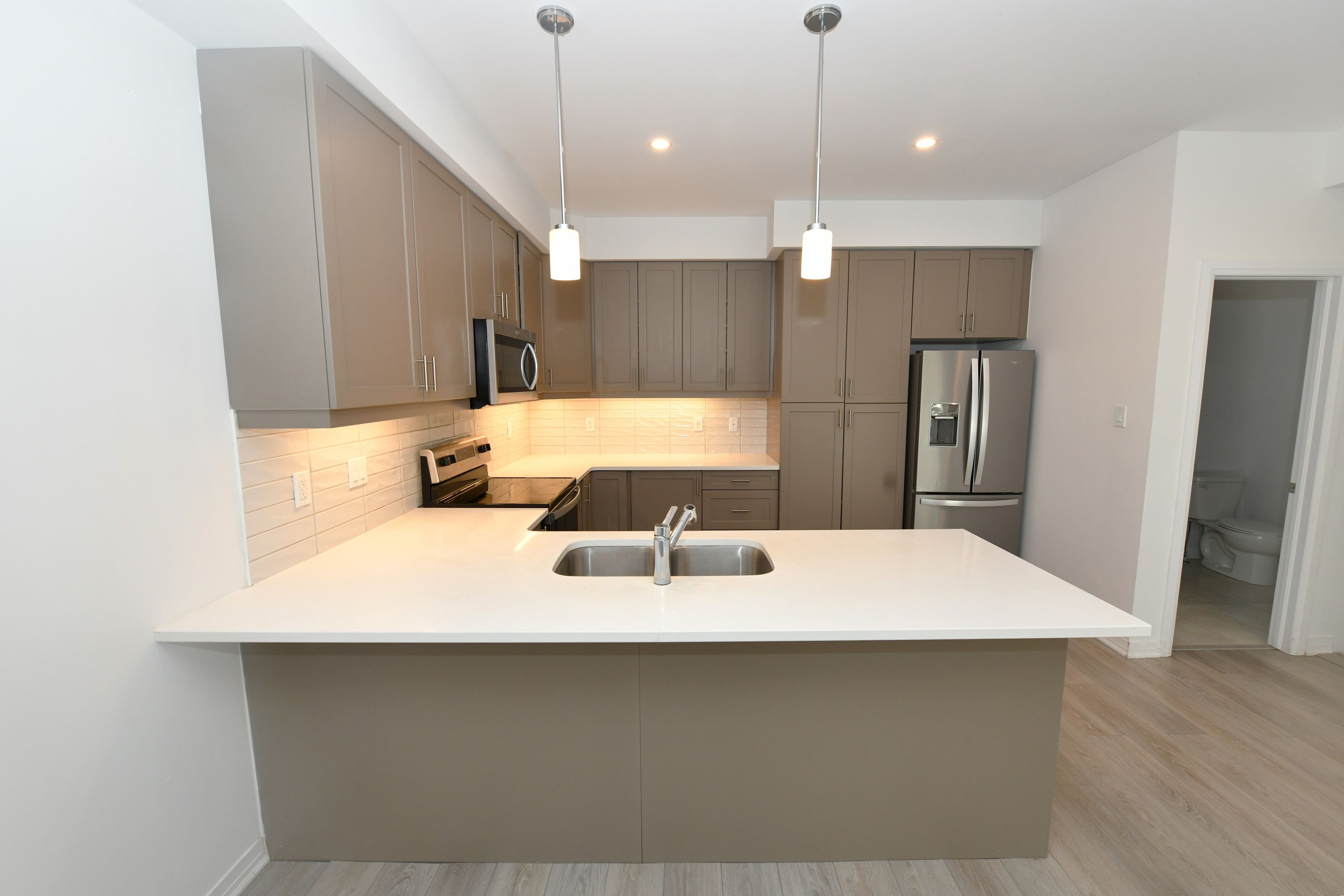 • Modern 3-storey townhouse with an open-concept living area and kitchen.