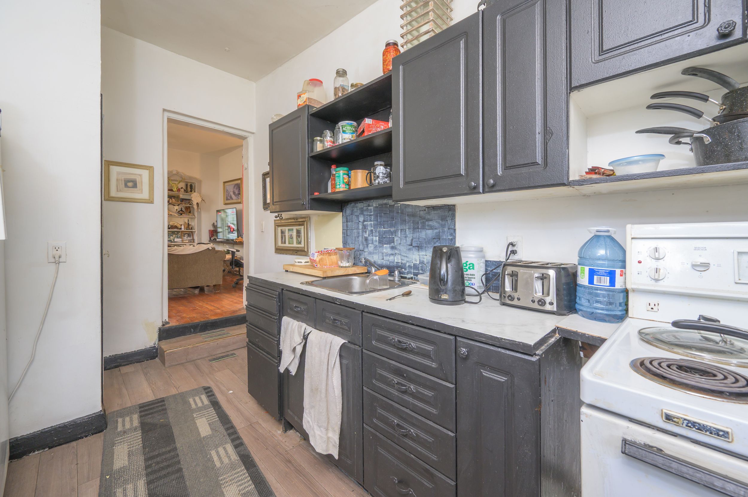 • Multi-family fourplex with four one-bedroom apartments perfect for rental income.