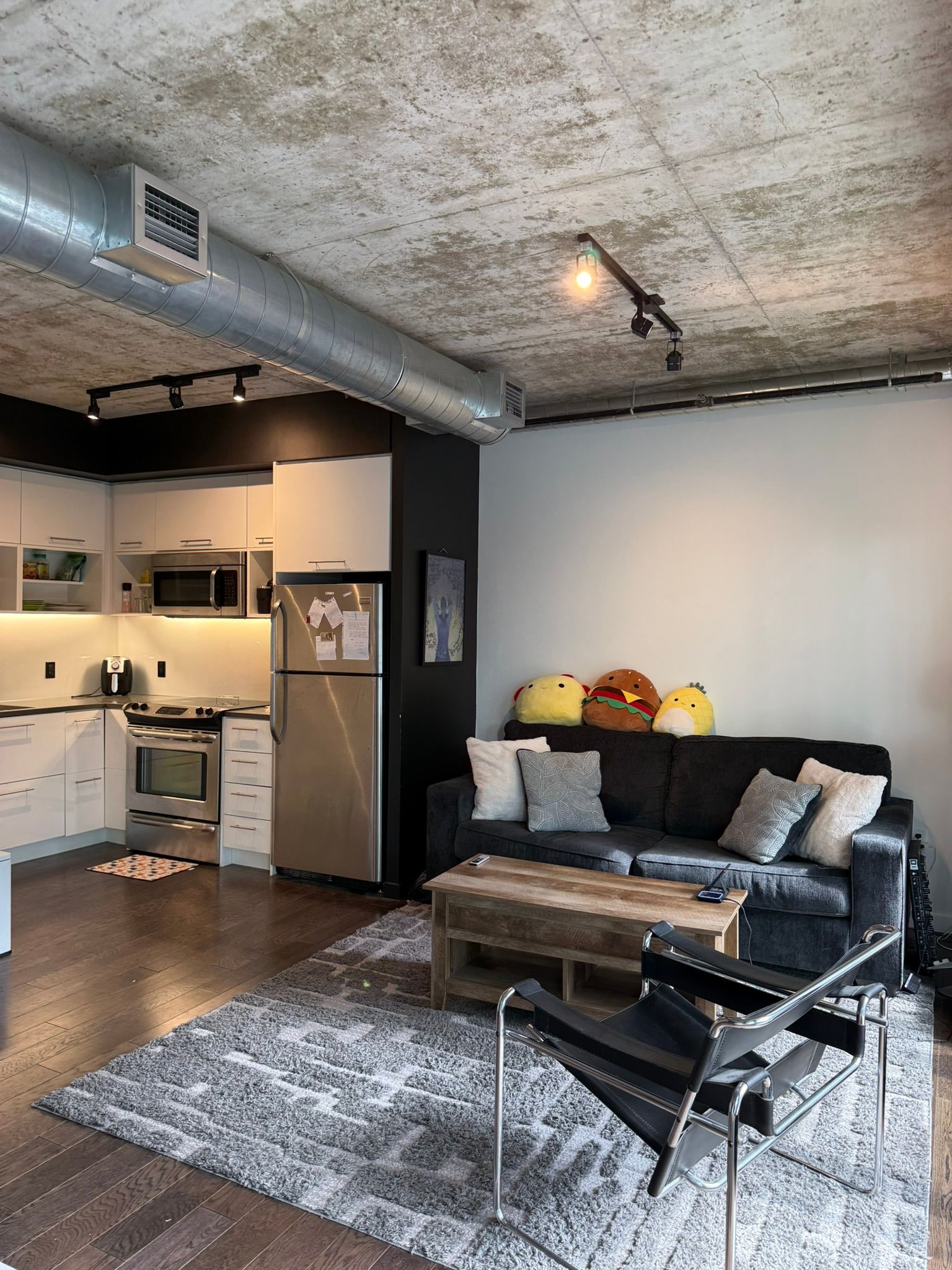 • Stylish loft-inspired suite with modern design and urban living vibe.