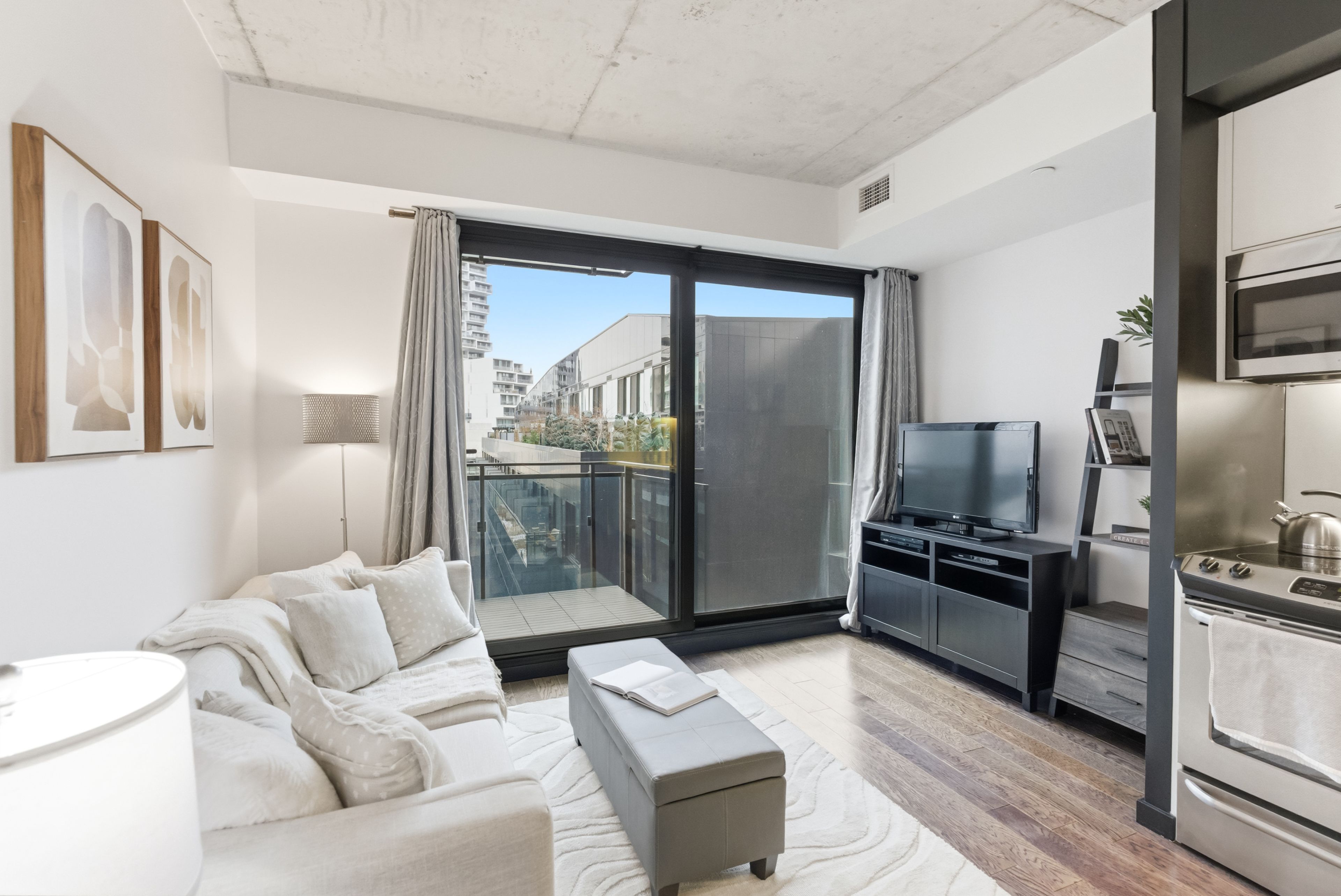 • Modern loft-style suite with plenty of natural light and a private balcony.
