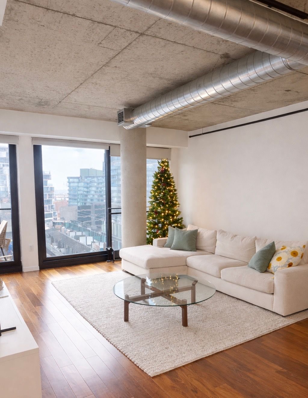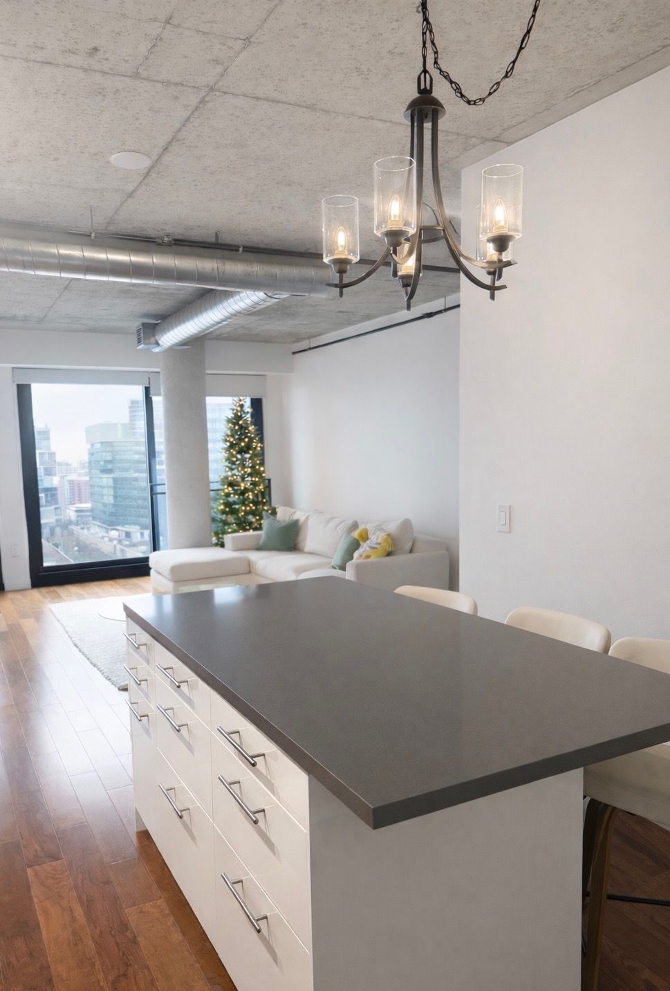 • Floor-to-ceiling windows offer natural light and great views of the skyline.