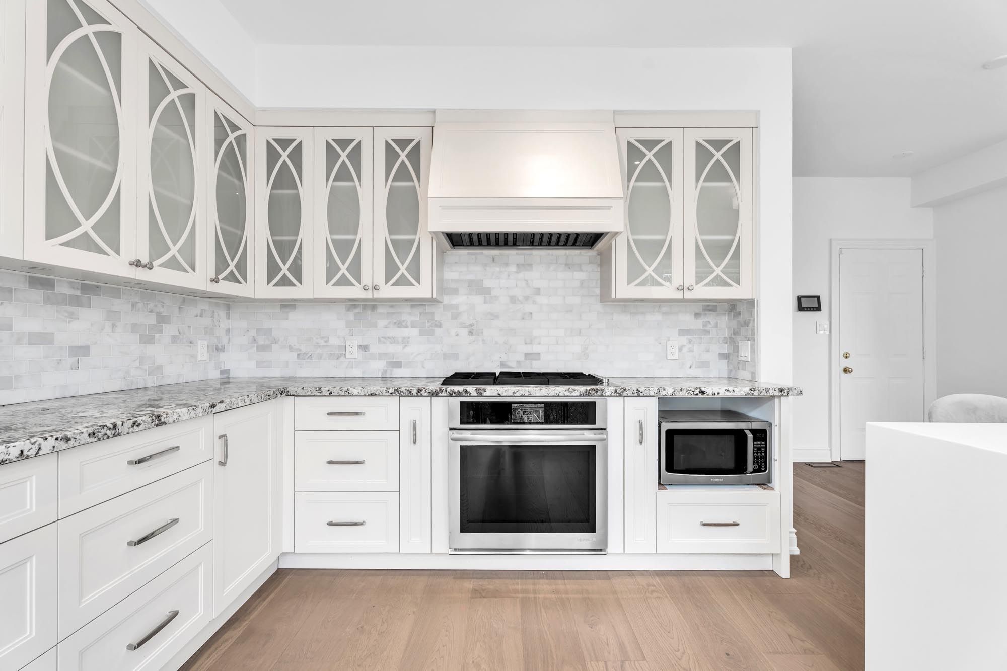 Exceptional ravine-backing detached residence in the prestigious oak ridges community, offering refined luxury, privacy, and timeless appeal. Extensively renovated in 2025, this sophisticated home showcases a reimagined open-concept layout with wide-plank hardwood flooring, smooth ceilings, bespoke entertainment centre, and curated designer finishes throughout the main and second levels. The main floor presents elegant, light-filled principal rooms with pot lights and a statement chef's kitchen featuring custom cabinetry, an oversized waterfall quartz island, and premium jenn-air and bosch appliances. Enjoy uninterrupted ravine views from the family room or step out to the glass-railed deck and stone patio for seamless indoor-outdoor living. The upper level offers four generous bedrooms and three spa-inspired bathrooms, anchored by a luxurious primary retreat with fireplace, custom walk-in closet, and a refined ensuite. The finished lower level provides expansive recreation spaces, a full bath, and a versatile multipurpose room ideal for executive office, guest suite, or additional living quarters. A truly rare offering delivering elevated design, natural serenity, and executive living in one of oak ridges' most exclusive enclaves.