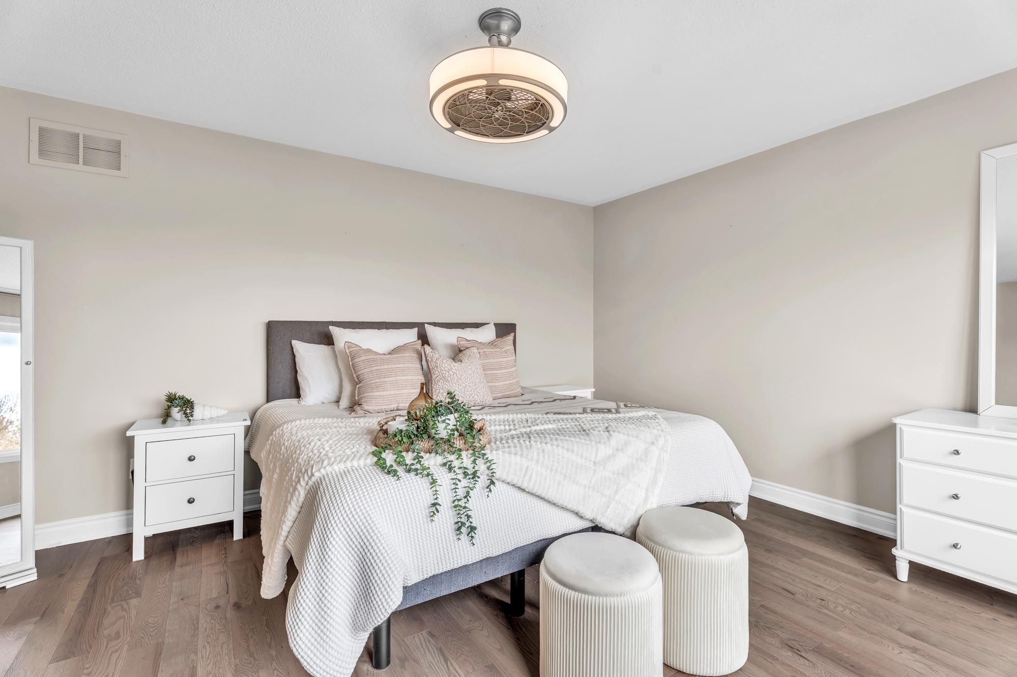 • Four spacious bedrooms and three stylish bathrooms for comfort.