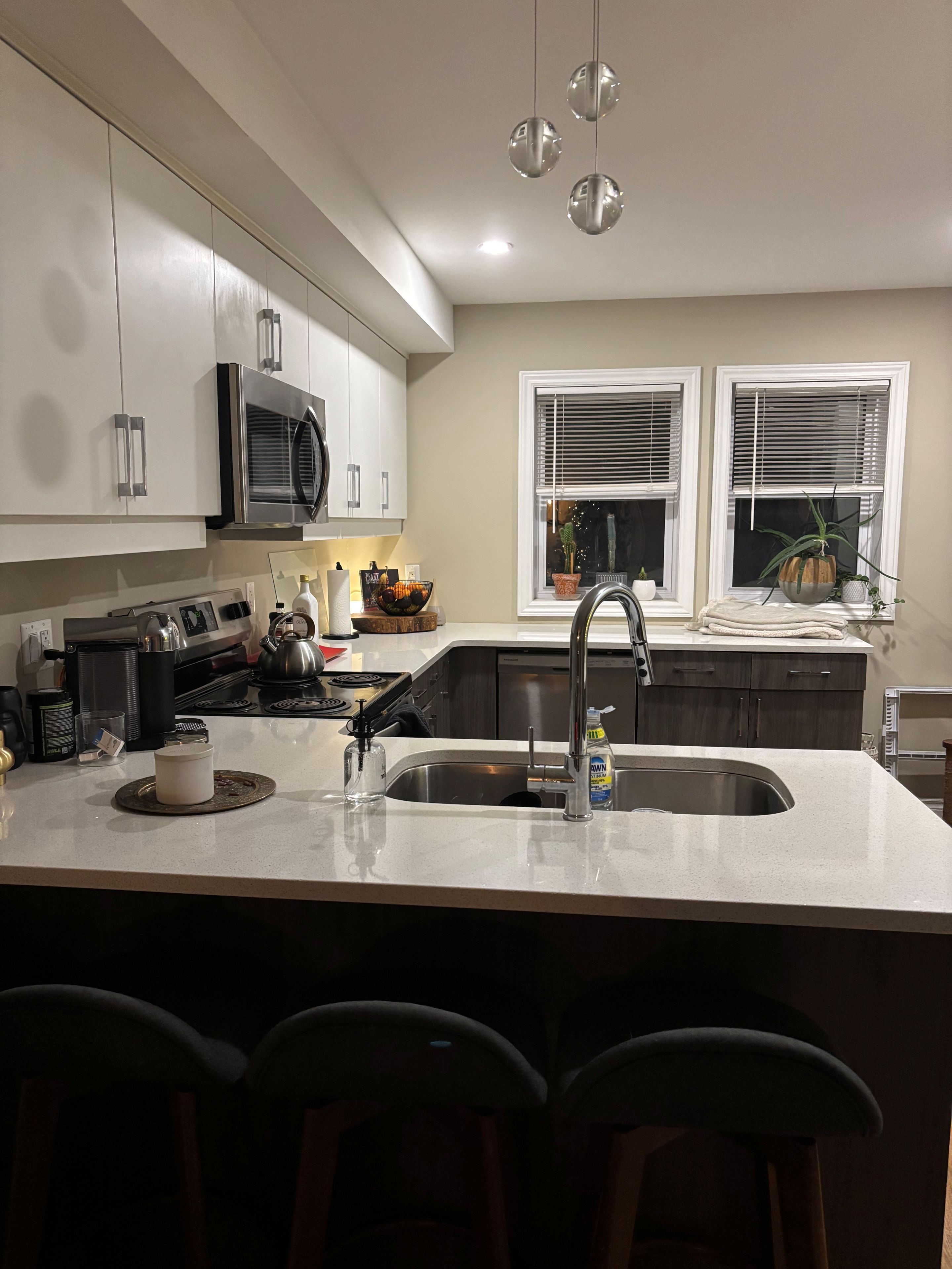 Immediately available for lease! This prime downtown location is walking distance to many amenities and the downtown core. This building was built in 2020, having the comfort and maintance free feeling that only a newer built home brings. This unit has 3 floors. The main floor consists of the kitchen, living and powder room. 2nd floor has 2 large bedrooms and a full bathroom while the basement is a large open rec room with laundry off to the side. 1 parking spot reserved. $2,200 + utilites, 12 month minimum lease, rental application + proof of income/credit check and references a must.