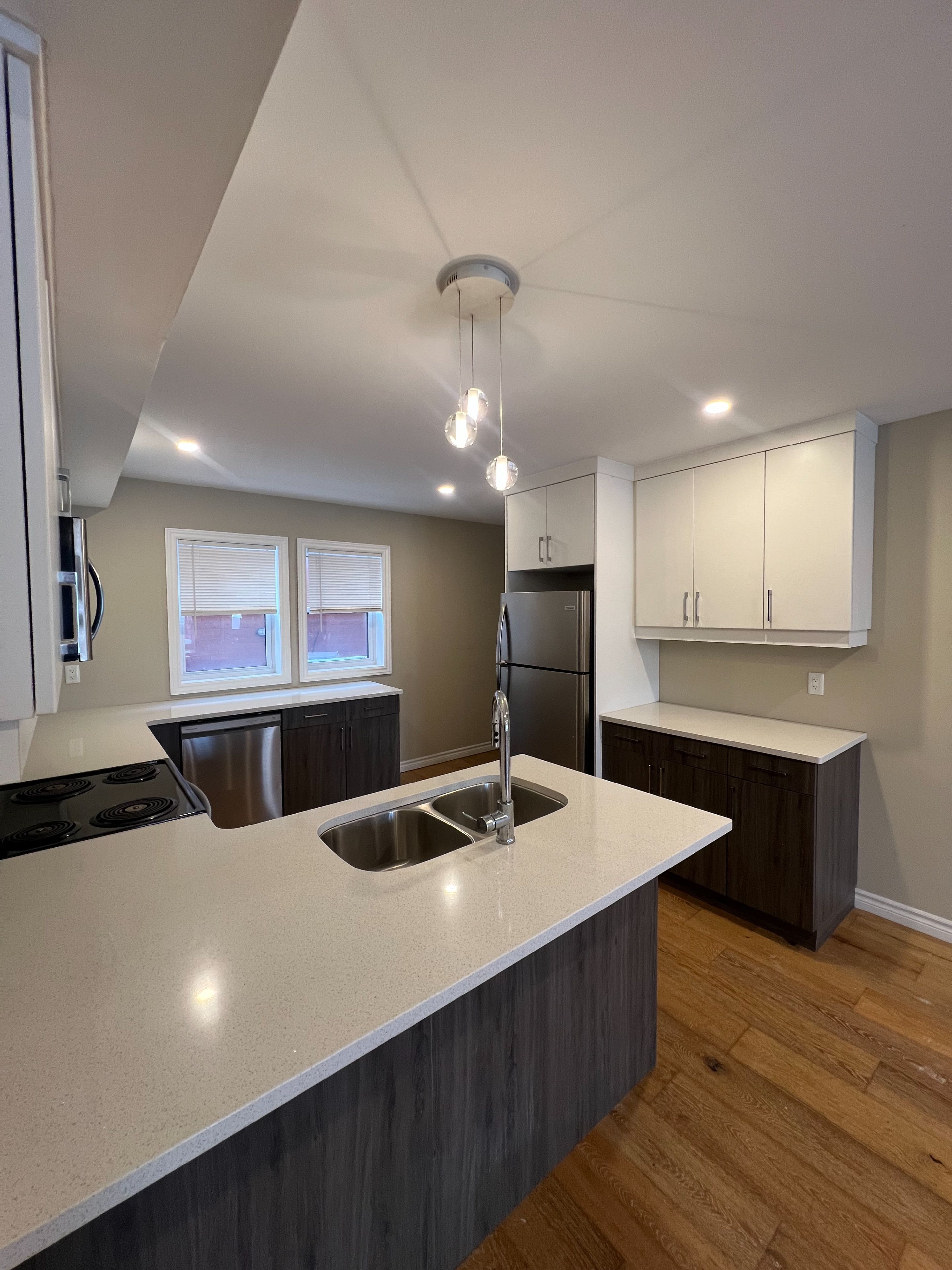 Get march rent free! Immediately available for lease! This prime downtown location is walking distance to many amenities and the downtown core. This building was built in 2020, having the comfort and maintance free feeling that only a newer built home brings. This unit has 3 floors. The main floor consists of the kitchen, living and powder room. 2nd floor has 2 large bedrooms and a full bathroom while the basement is a large open rec room with laundry off to the side. 1 parking spot reserved. $2,200 + utilites, 12 month minimum lease, rental application + proof of income/credit check and references a must.