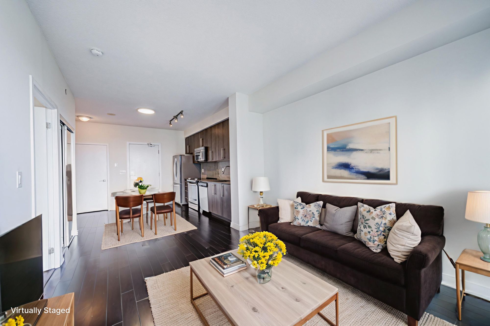 Immaculate high-floor 1+den with south exposure and stunning lake views in the heart of square one! One parking + one locker included * freshly painted with laminate throughout! Located in the vibrant square one district, this sun-filled unit offers unbeatable convenience, just steps from square one shopping mall, ymca, mississauga central library, t&t supermarket, and the go bus terminal. Direct transit to the university of toronto mississauga (utm)! Spacious living/dining area with unobstructed west views open concept kitchen with stainless steel appliances & breakfast bar generous primary bedroom + oversized den spacious enough to be used as a second bedroom high-floor south exposure with panoramic city & lake views